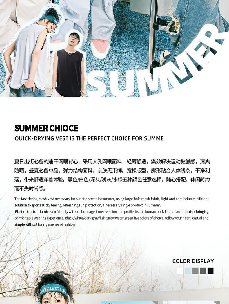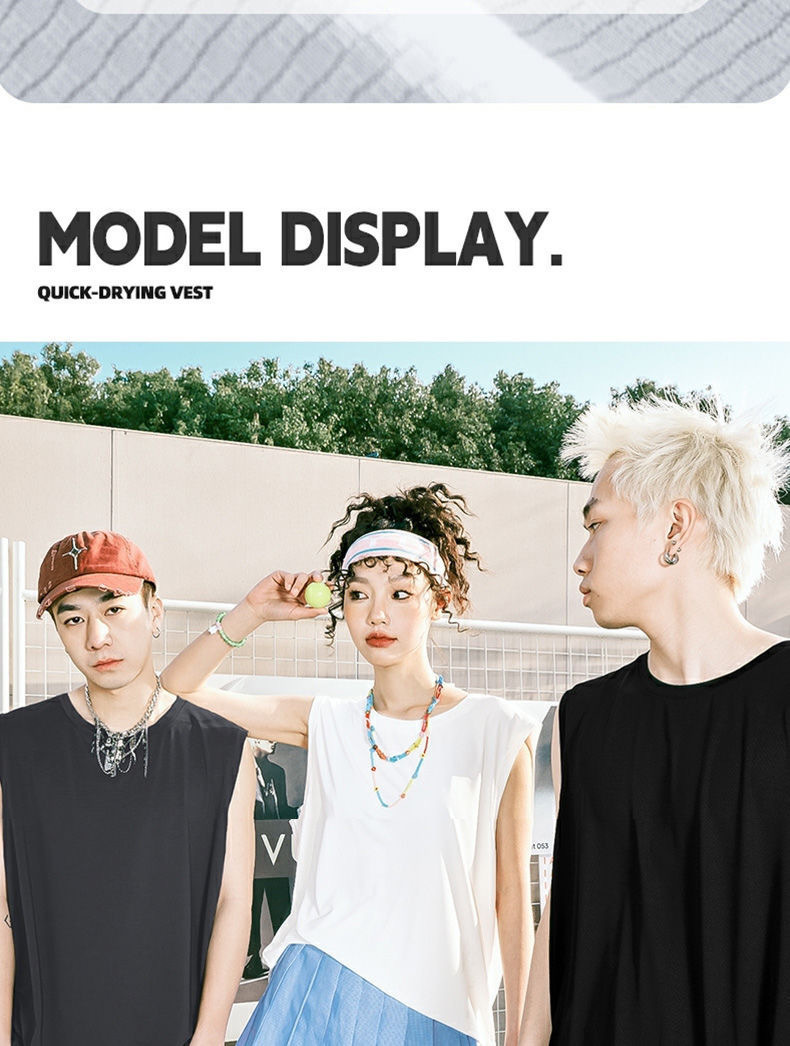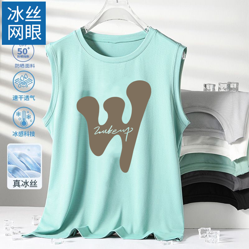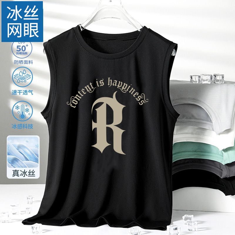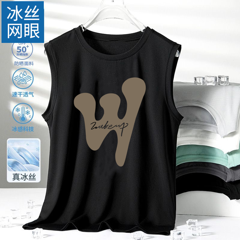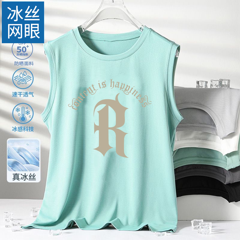 남성용 아이스 실크 여름 속건 반팔 한국 스타일 편안한 스포츠 캐주얼 조끼 여름 루즈핏 통기성 트렌디 민소매스토어 가기