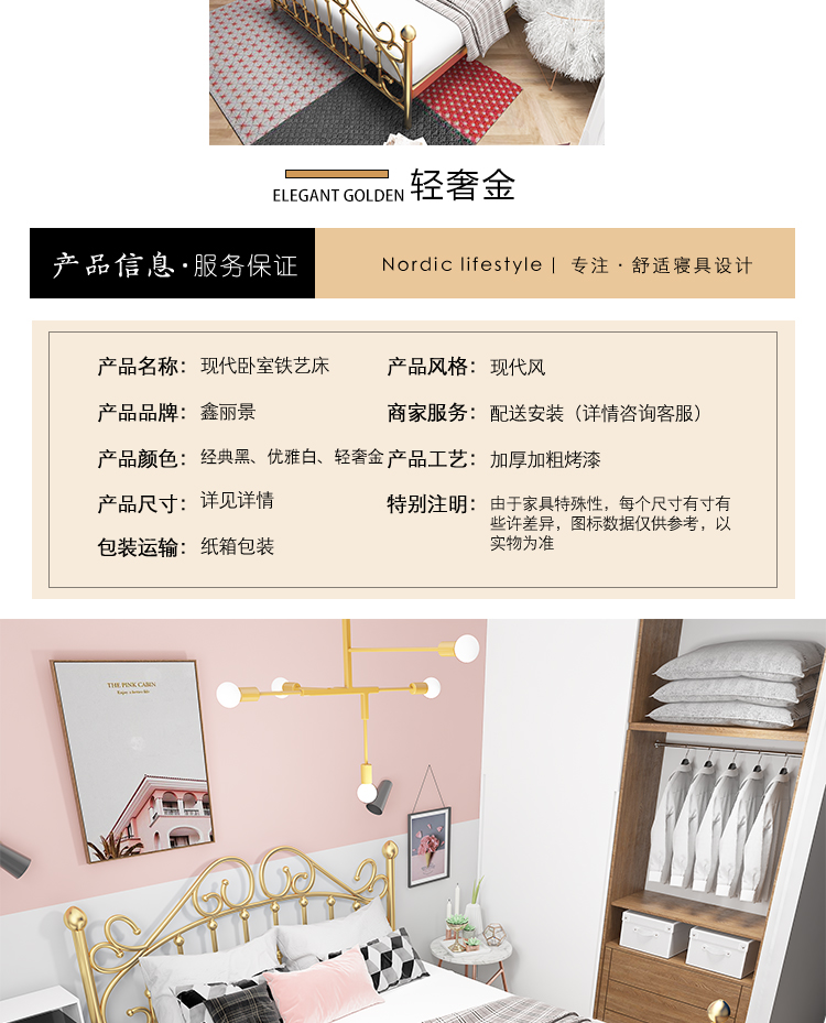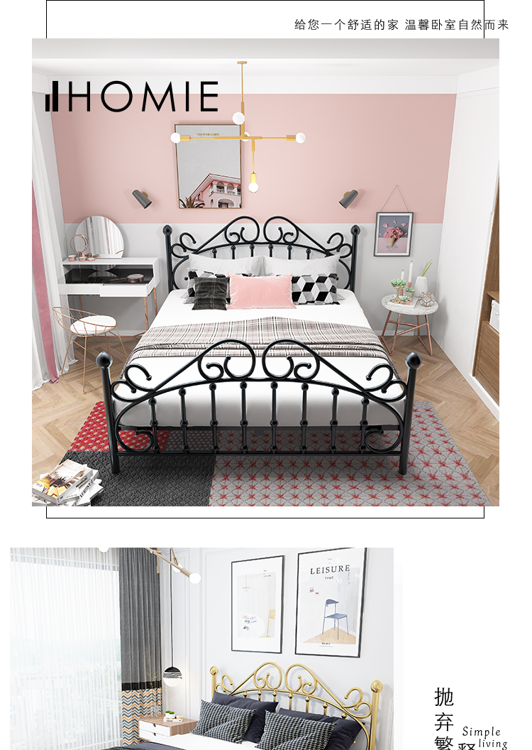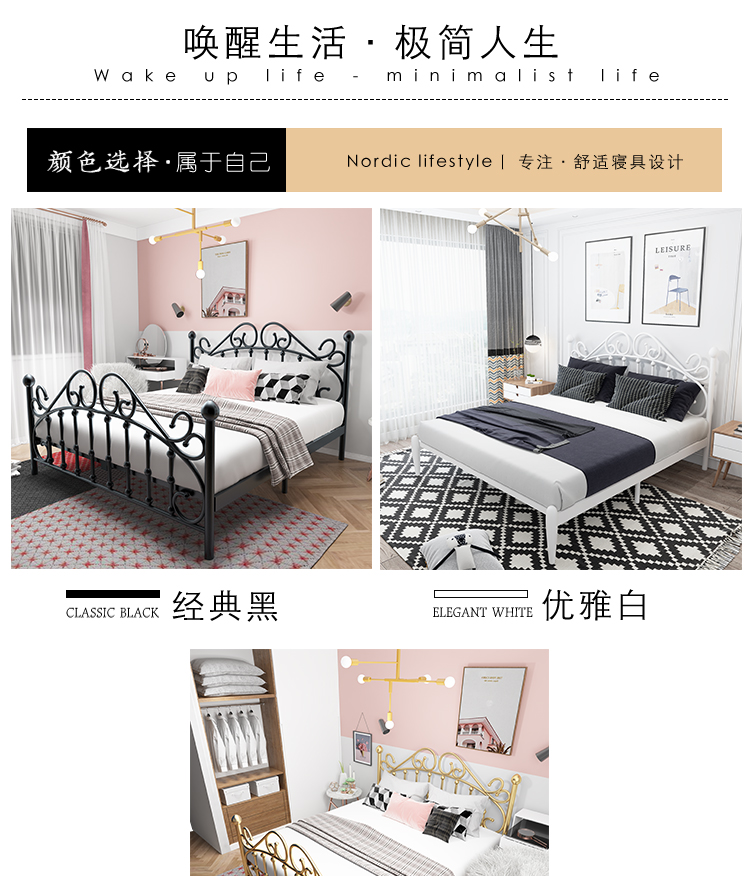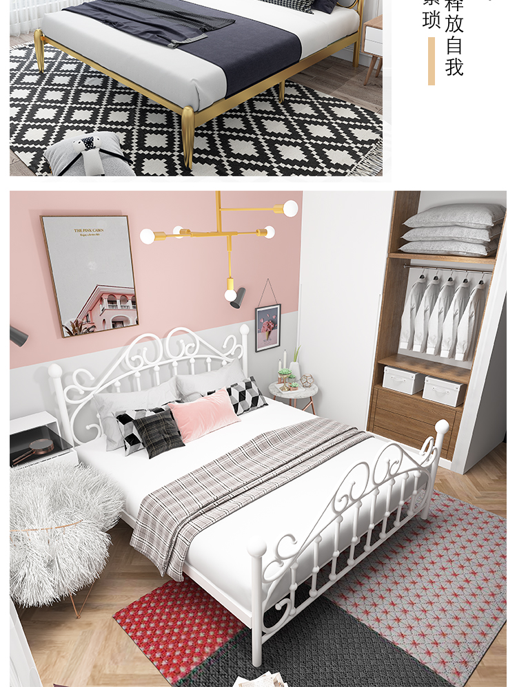 현대적인 미니멀리스트 철제 침대 1.5m 더블 1.8 어린이 철제 침대 인터넷 연예인 공주 철제 프레임 북유럽 싱글 1.2m스토어 가기