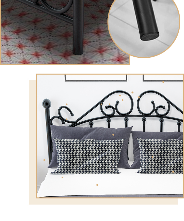 • 무광택 검정색 높은 침대 끝 부분이 굵고 두꺼워졌습니다.