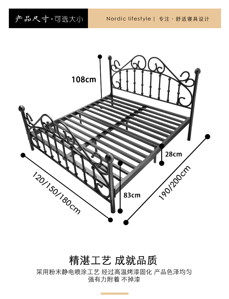 현대적인 미니멀리스트 철제 침대 1.5m 더블 1.8 어린이 철제 침대 인터넷 연예인 공주 철제 프레임 북유럽 싱글 1.2m