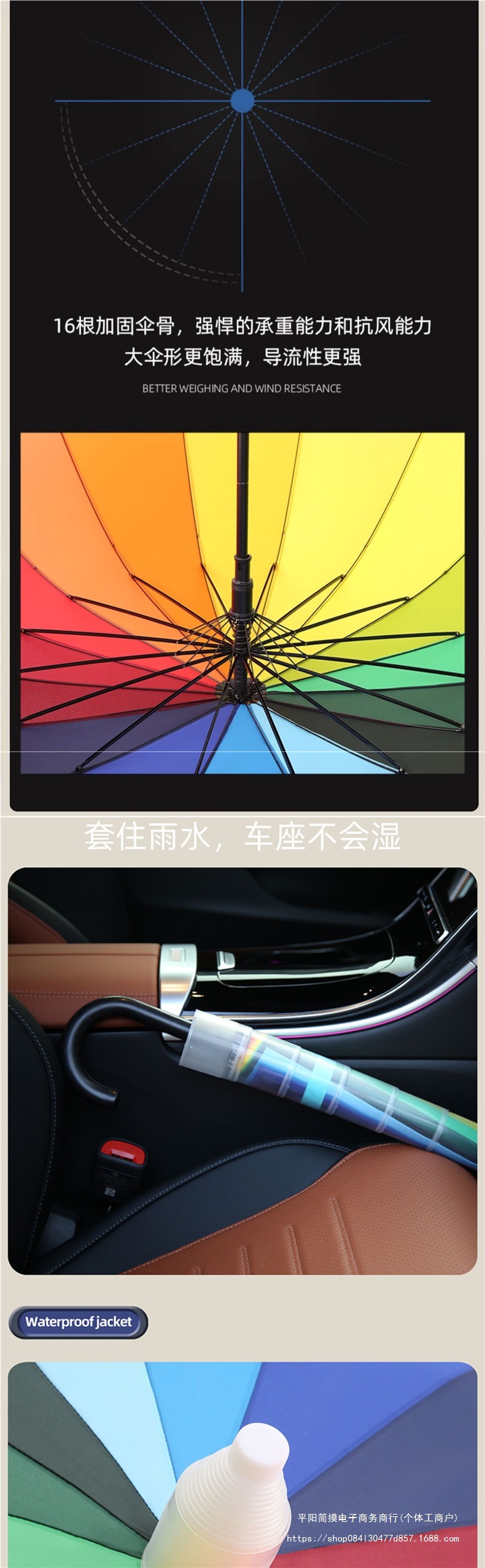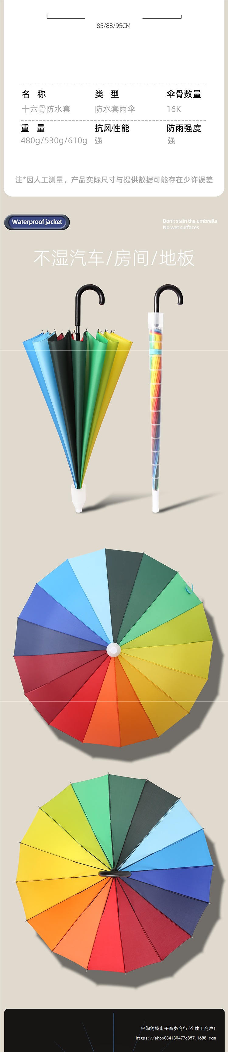 방수 커버가있는 어린이 무지개 우산 소년 곡선 손잡이 초등학생 16 뼈 긴 손잡이 우산 소녀 학교 직선 손잡이 우산스토어 가기