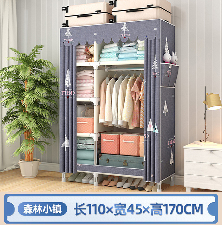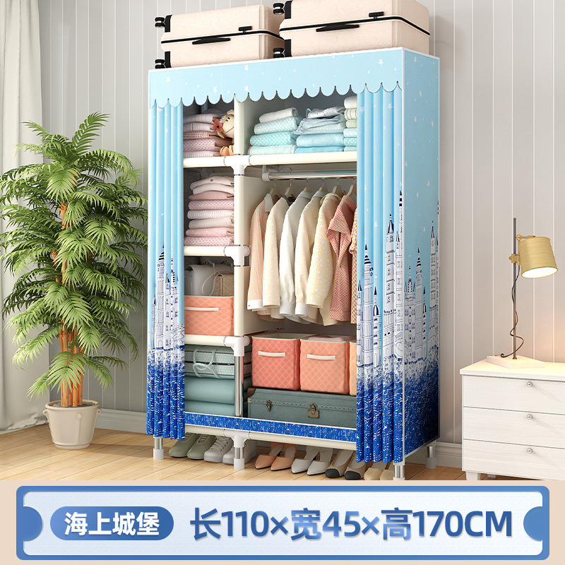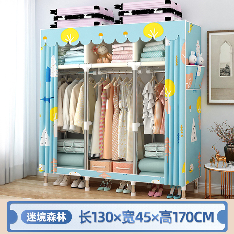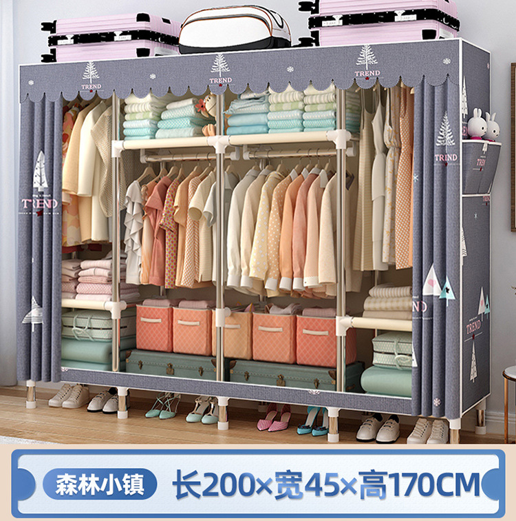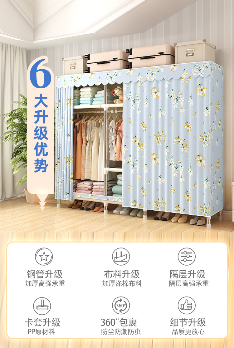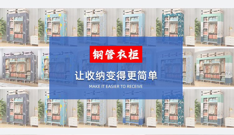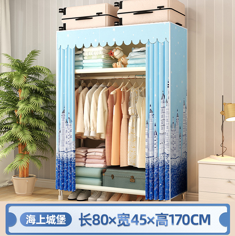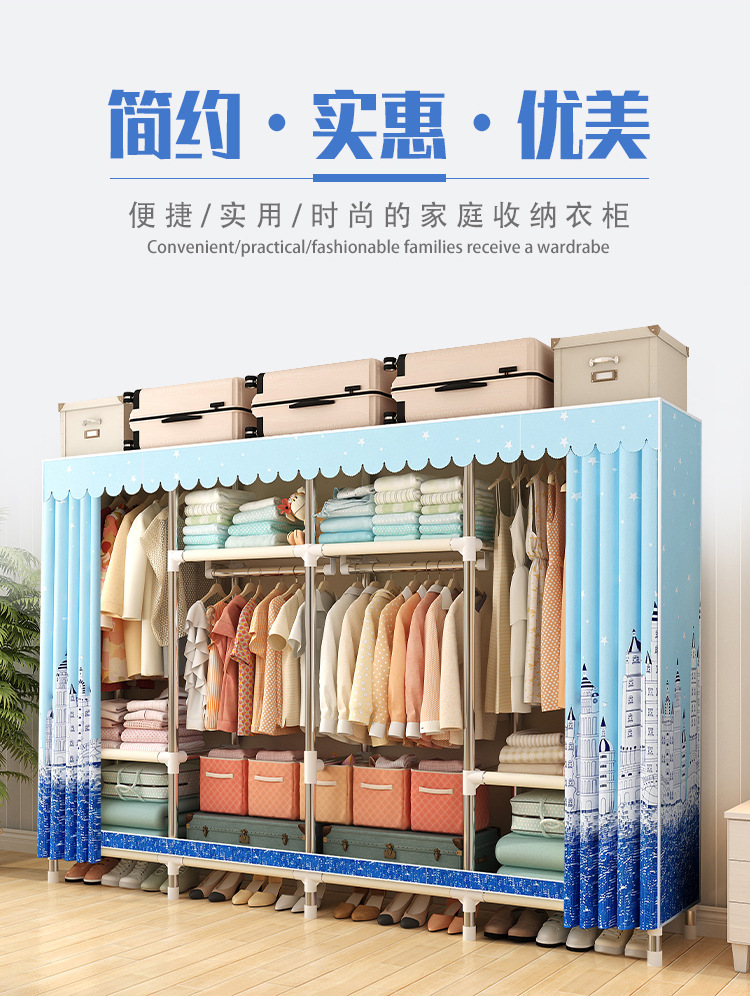 Zaoyijia 간단한 옷장 두꺼운 강철 파이프 폴리에스터 천 옷장 간단하고 경제적인 조립식 수납 옷장스토어 가기