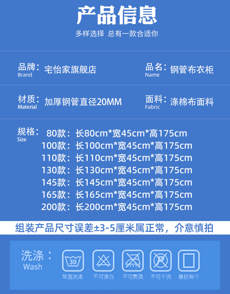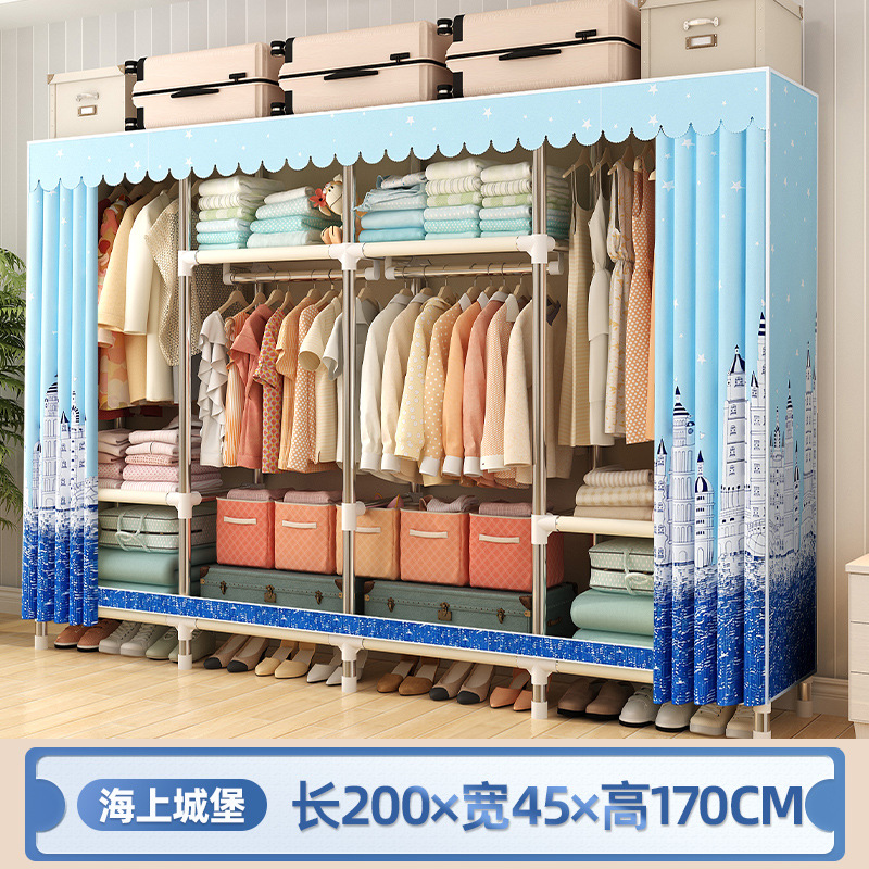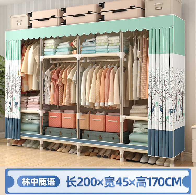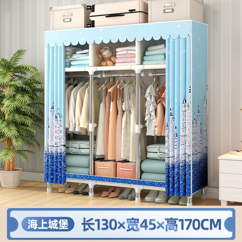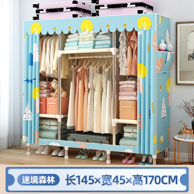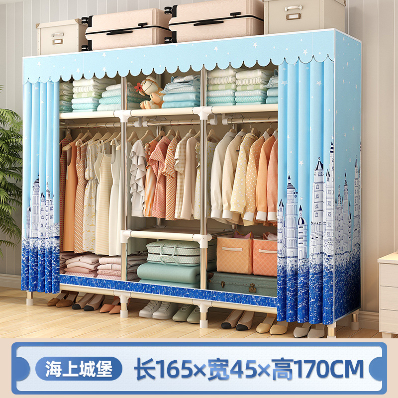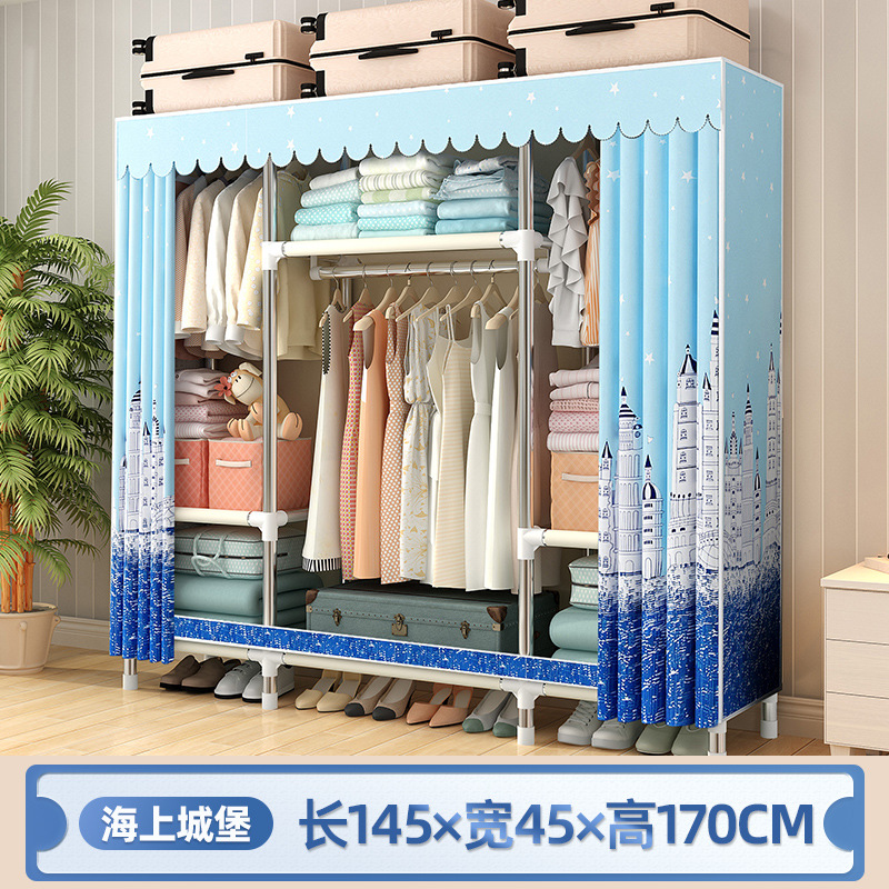 Zaoyijia 간단한 옷장 두꺼운 강철 파이프 폴리에스터 천 옷장 간단하고 경제적인 조립식 수납 옷장스토어 가기