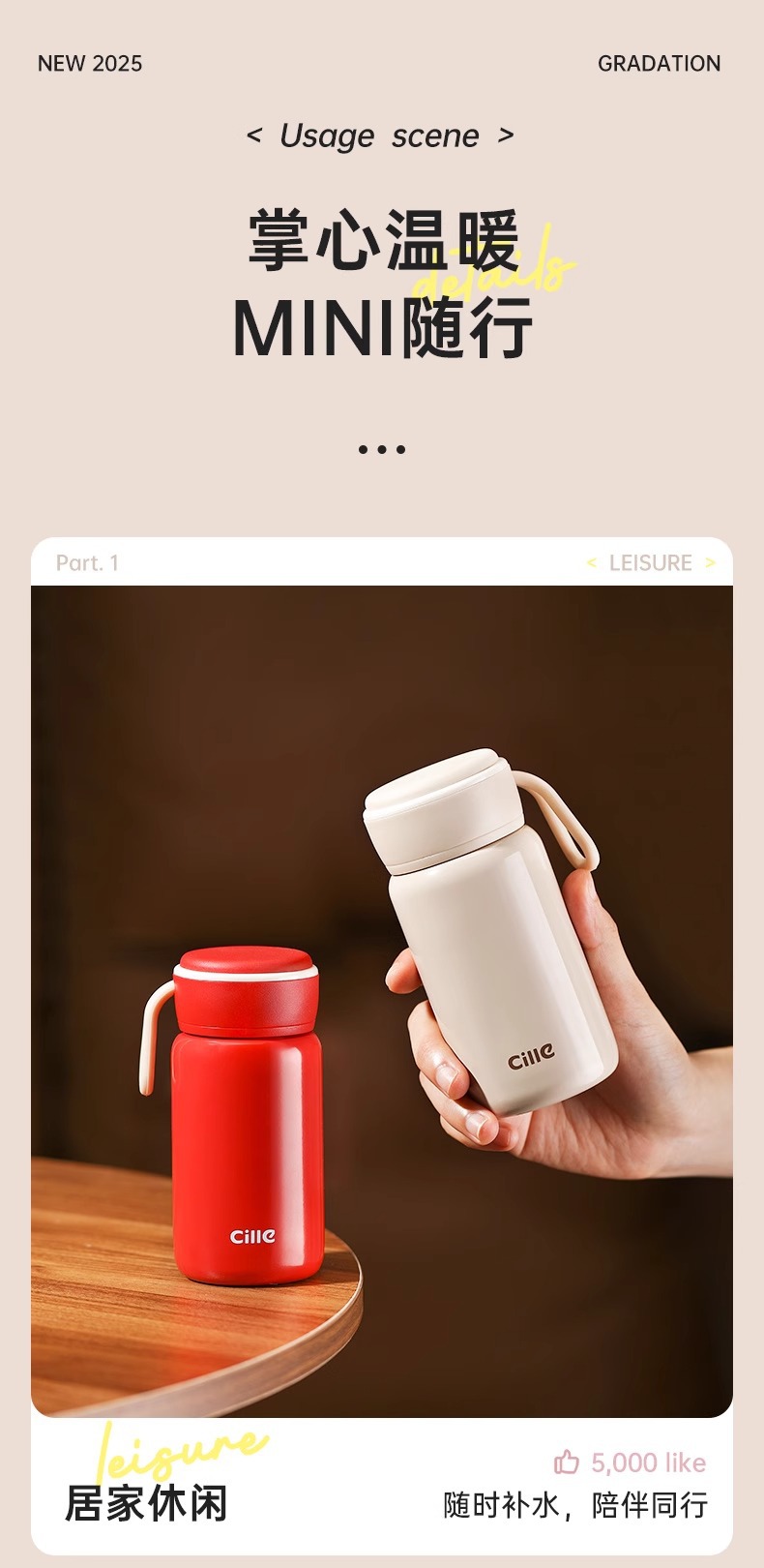 Xile 보온병 컵 휴대용 미니 귀여운 고가치 스테인레스 스틸 남성과 여성 학생 워터 컵 세련된 소형 립스틱 컵스토어 가기
