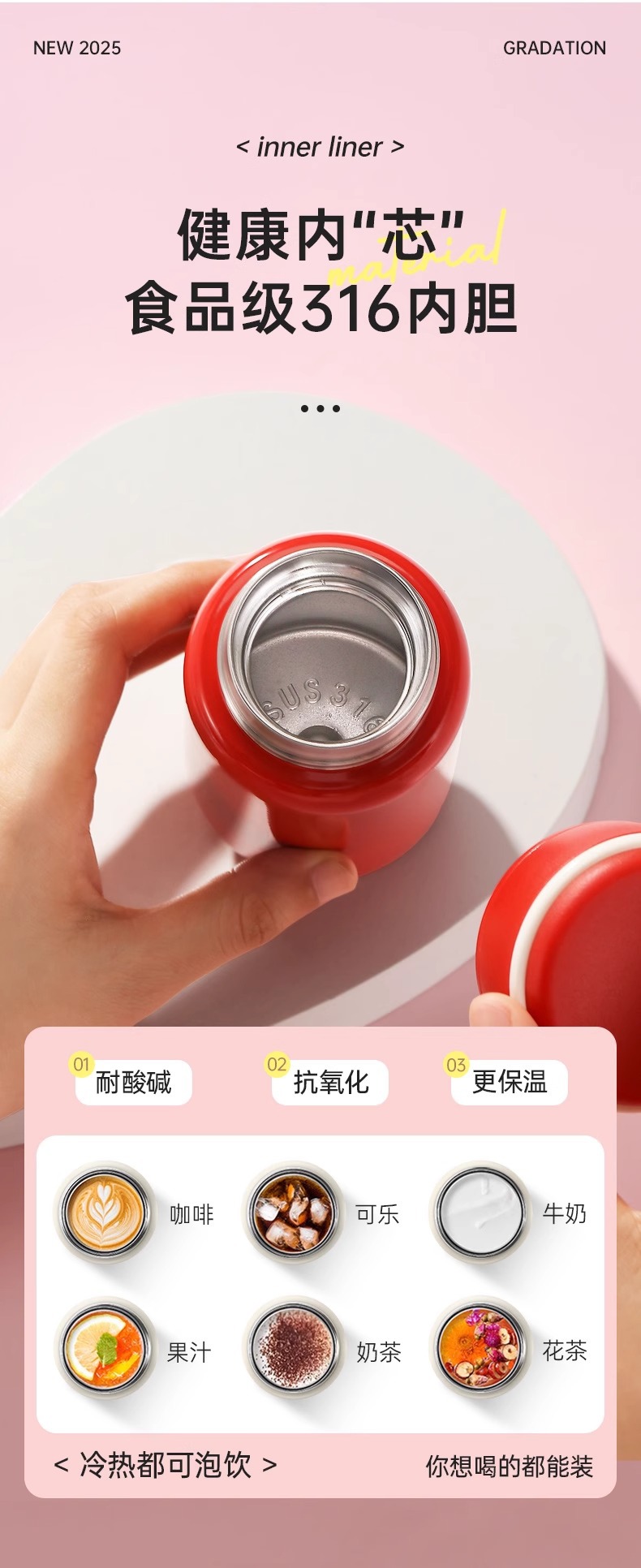 Xile 보온병 컵 휴대용 미니 귀여운 고가치 스테인레스 스틸 남성과 여성 학생 워터 컵 세련된 소형 립스틱 컵