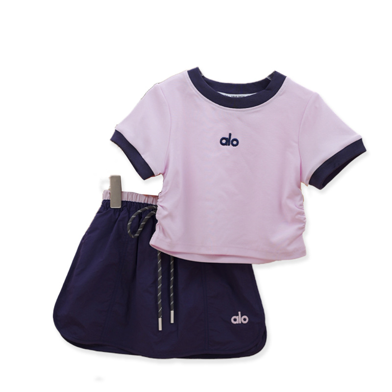 여자 여름 얇은 양복 한국 스타일 베이비 순면 반팔 스포츠 짧은 치마 바지 대비 색상 티셔츠 투피스 아동복