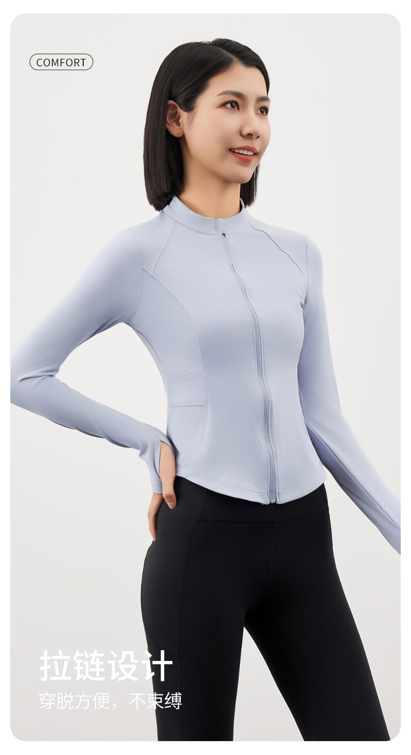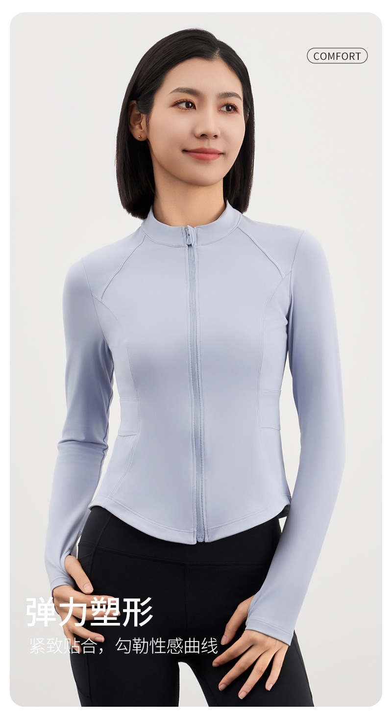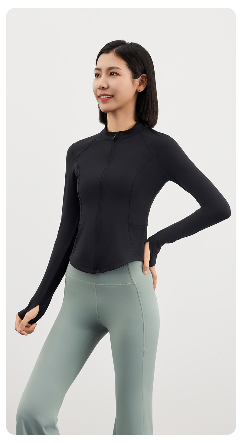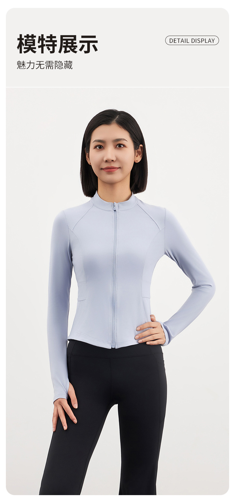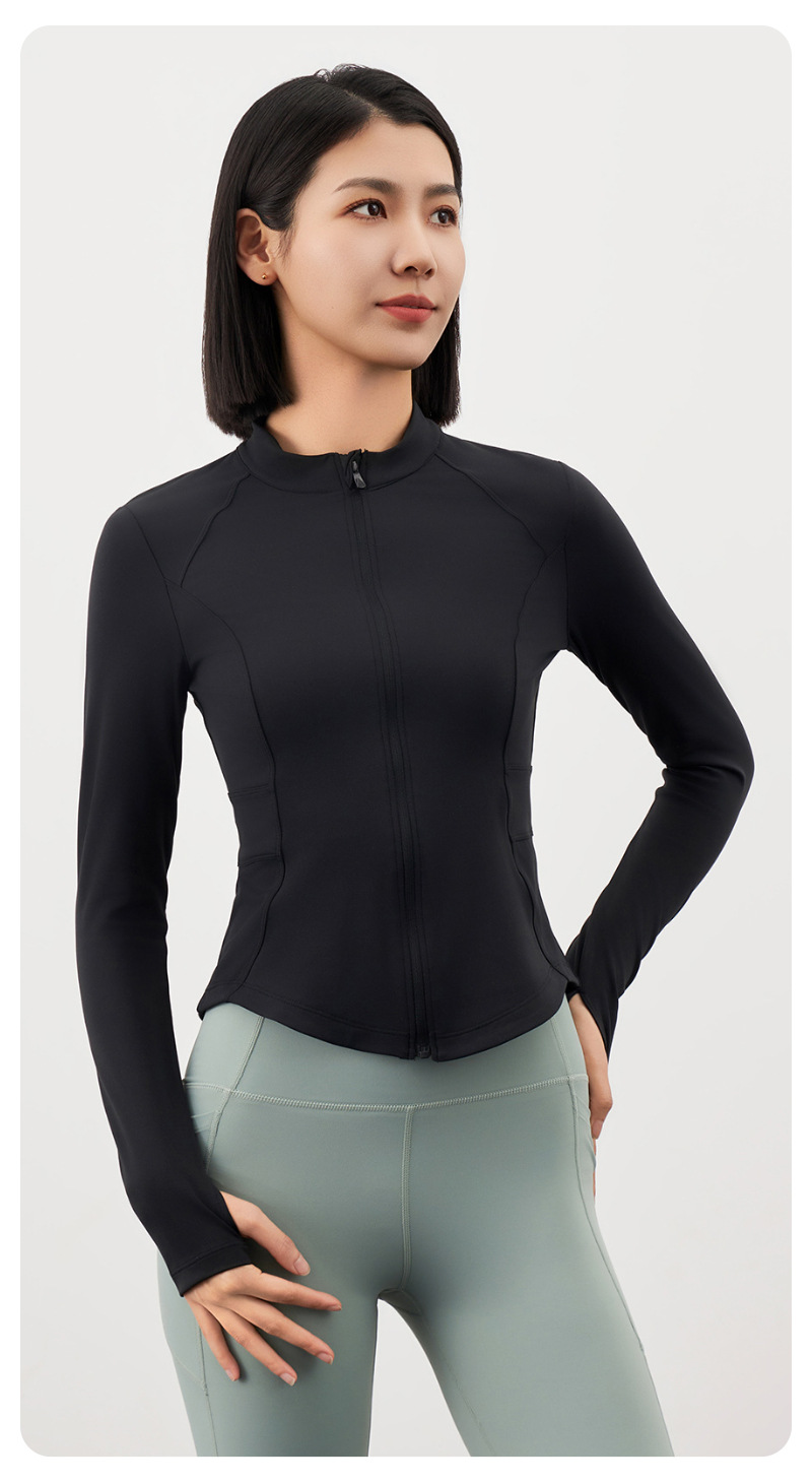 여성을위한 요가 의류 봄과 여름 새로운 야외 꽉 달리기 긴팔 피트니스 재킷 훈련 스포츠 탑 스탠드 칼라 재킷