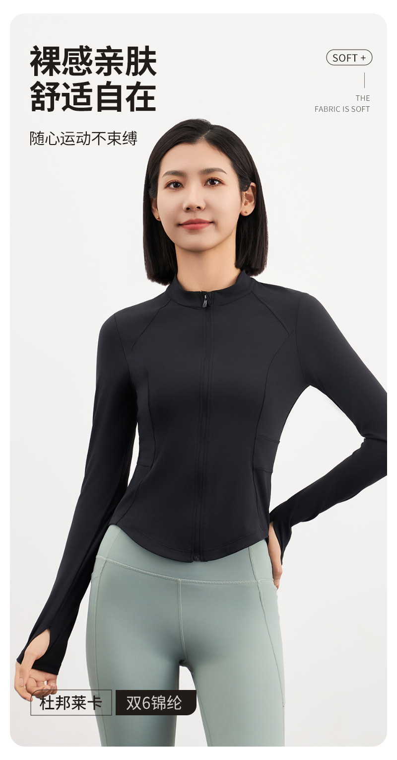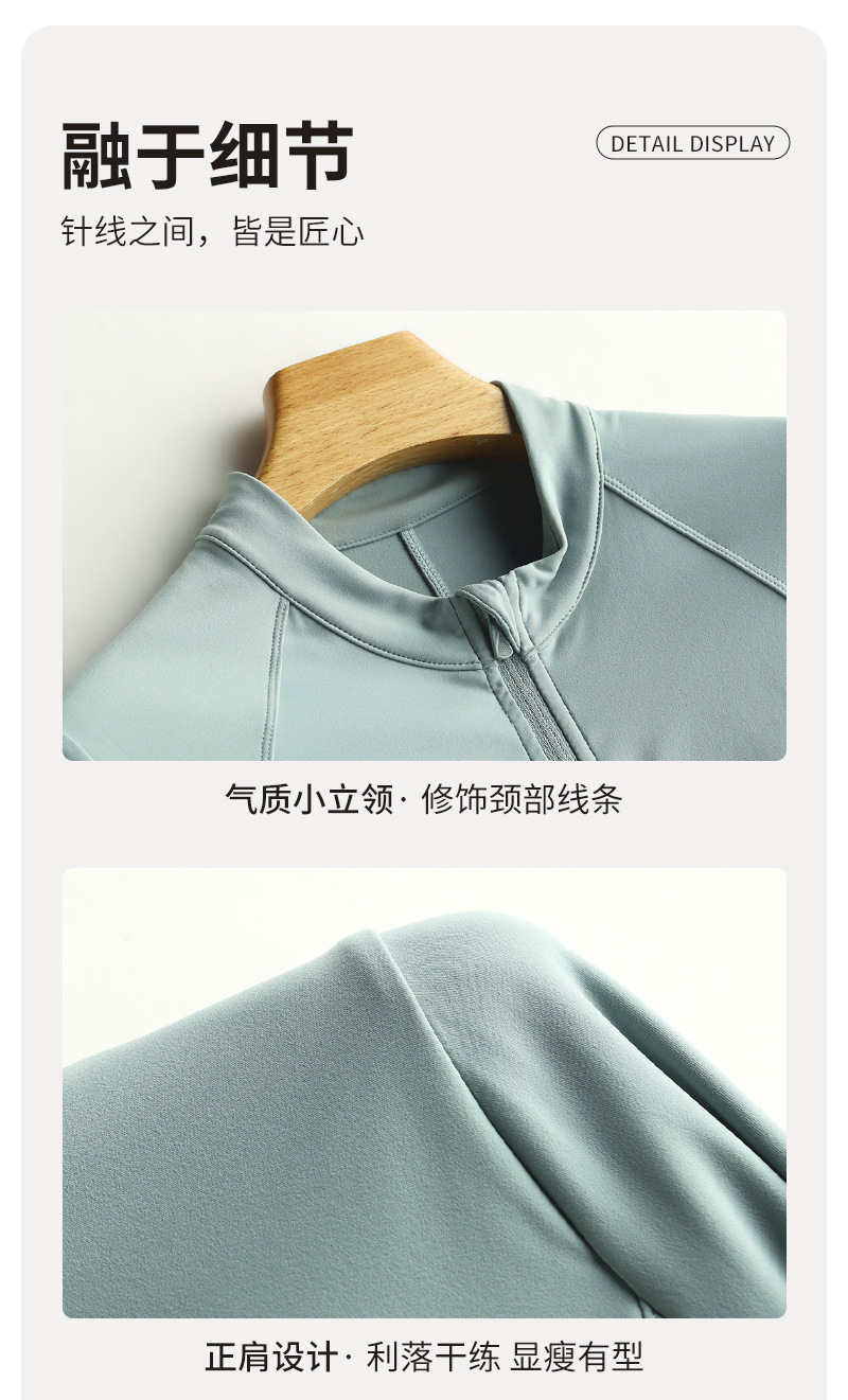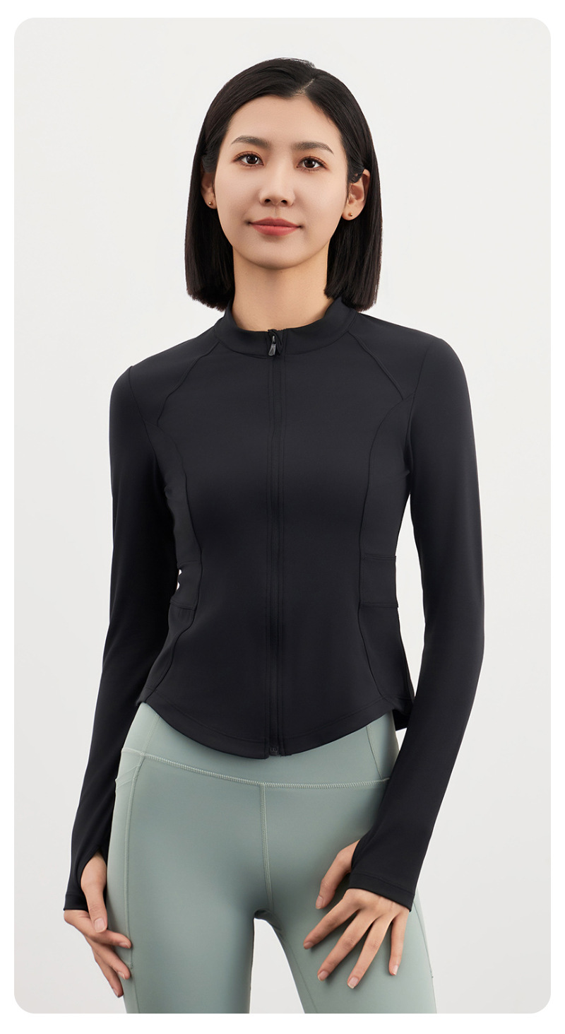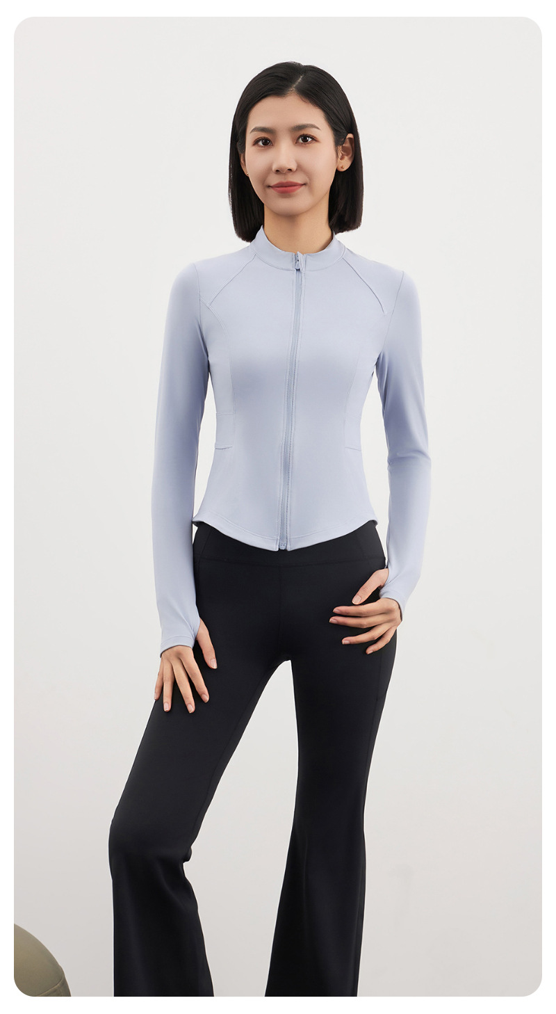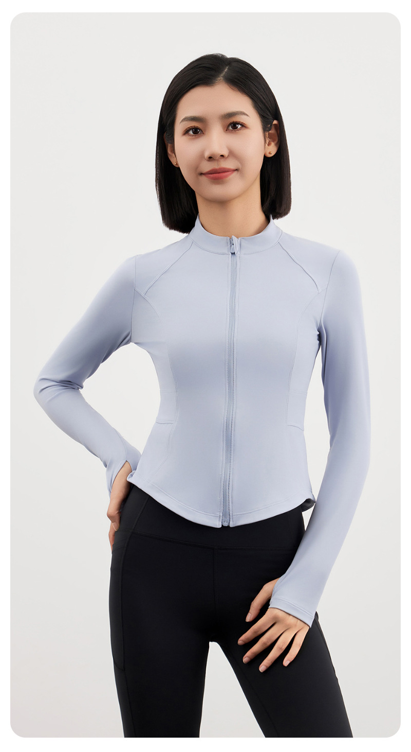 여성을위한 요가 의류 봄과 여름 새로운 야외 꽉 달리기 긴팔 피트니스 재킷 훈련 스포츠 탑 스탠드 칼라 재킷