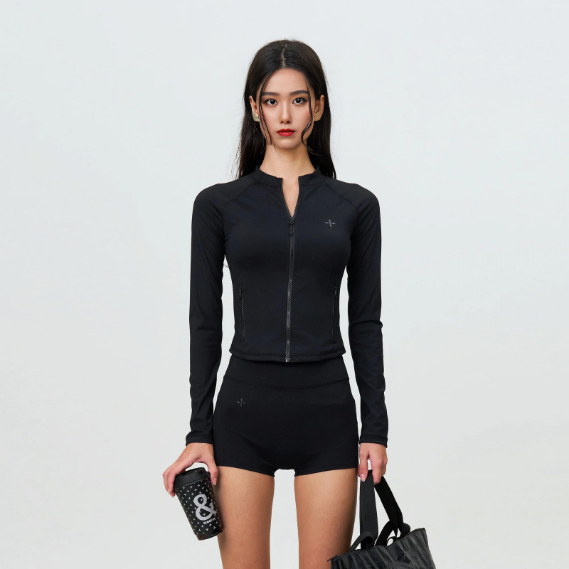 SMFK Wave Future Mind Body Shaping Jacket 여성용 블랙 긴팔 지퍼 재킷스토어 가기