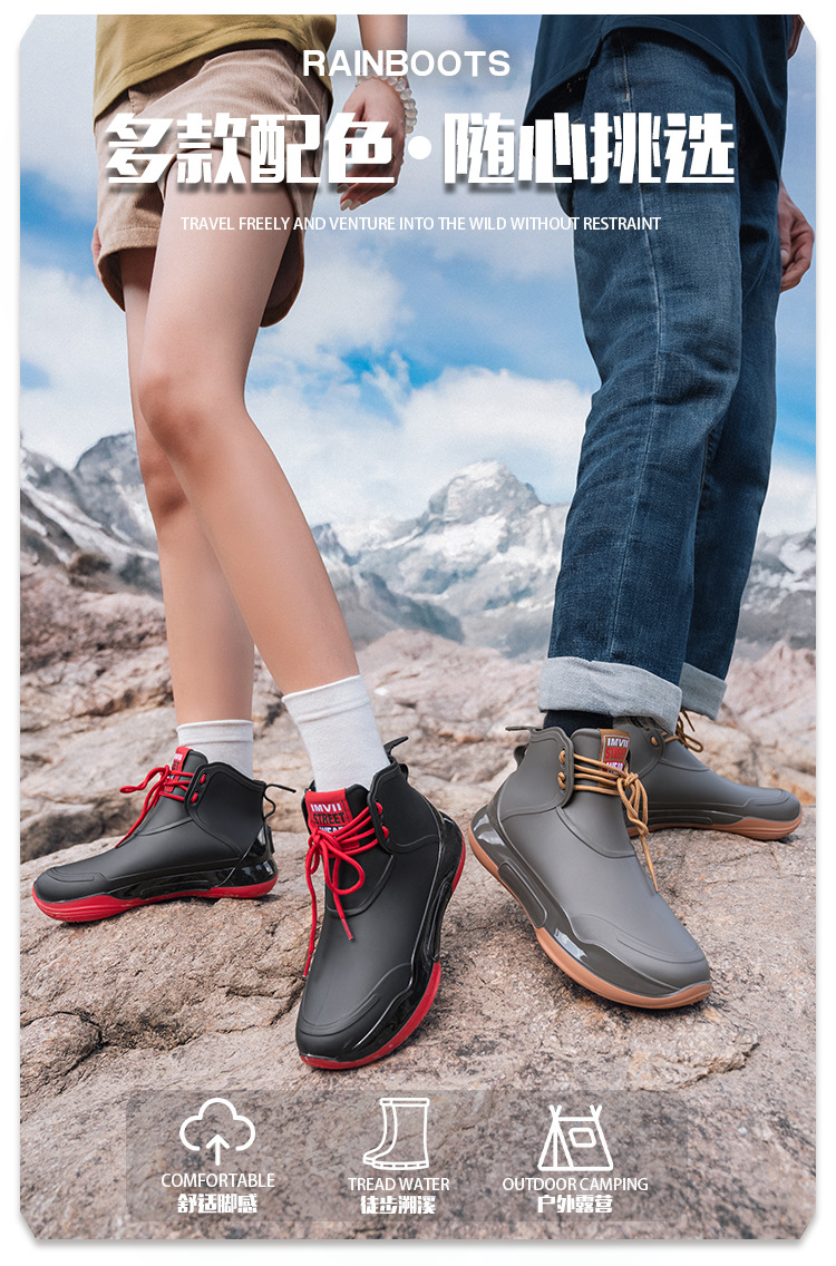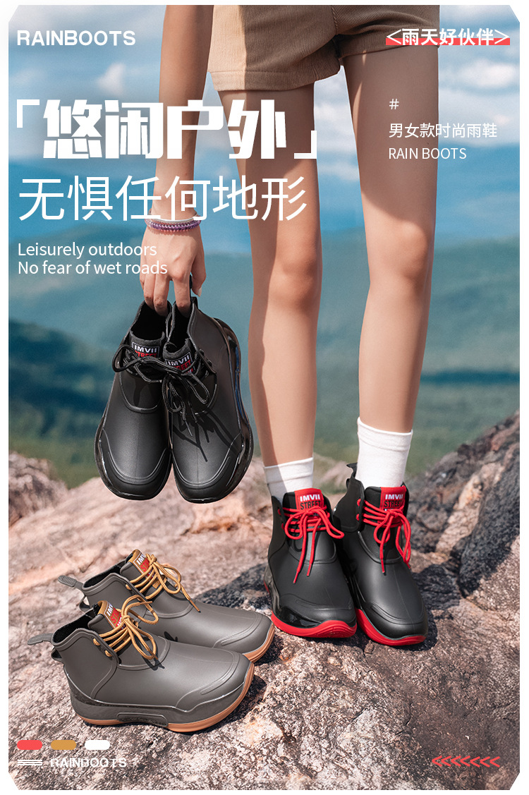 비바람에 강한 새로운 장화, 방수 및 미끄럼 방지, 야외용 심플하고 패셔너블하며 다재다능한 남성용 및 여성용 장화, 스포츠 스트랩 트렌디 워터 슈즈