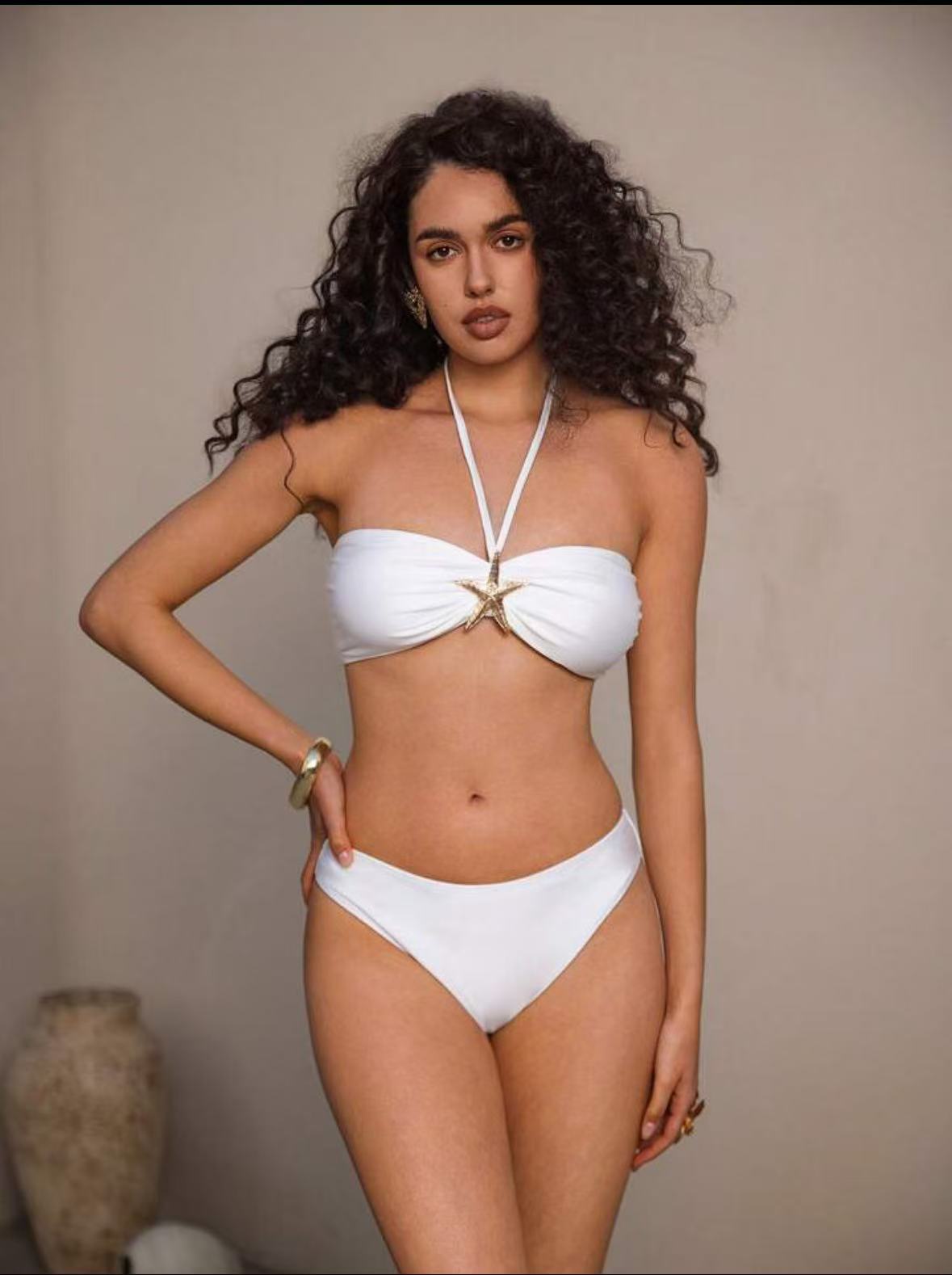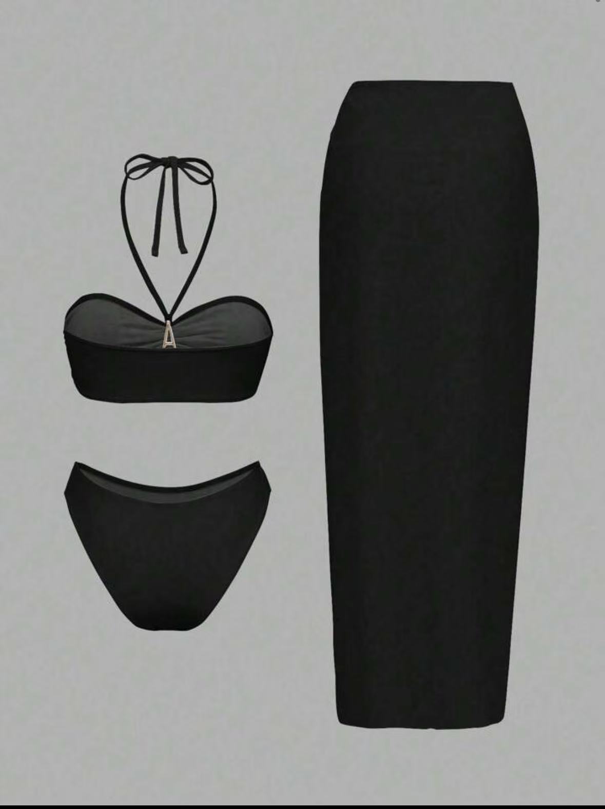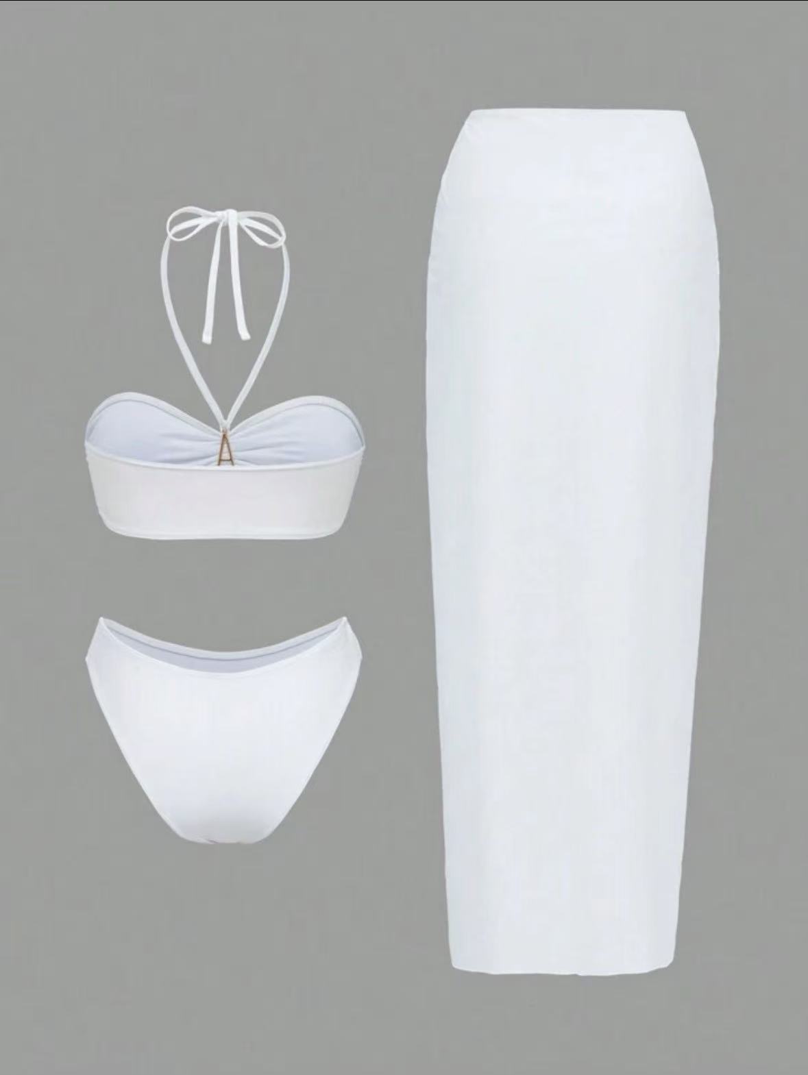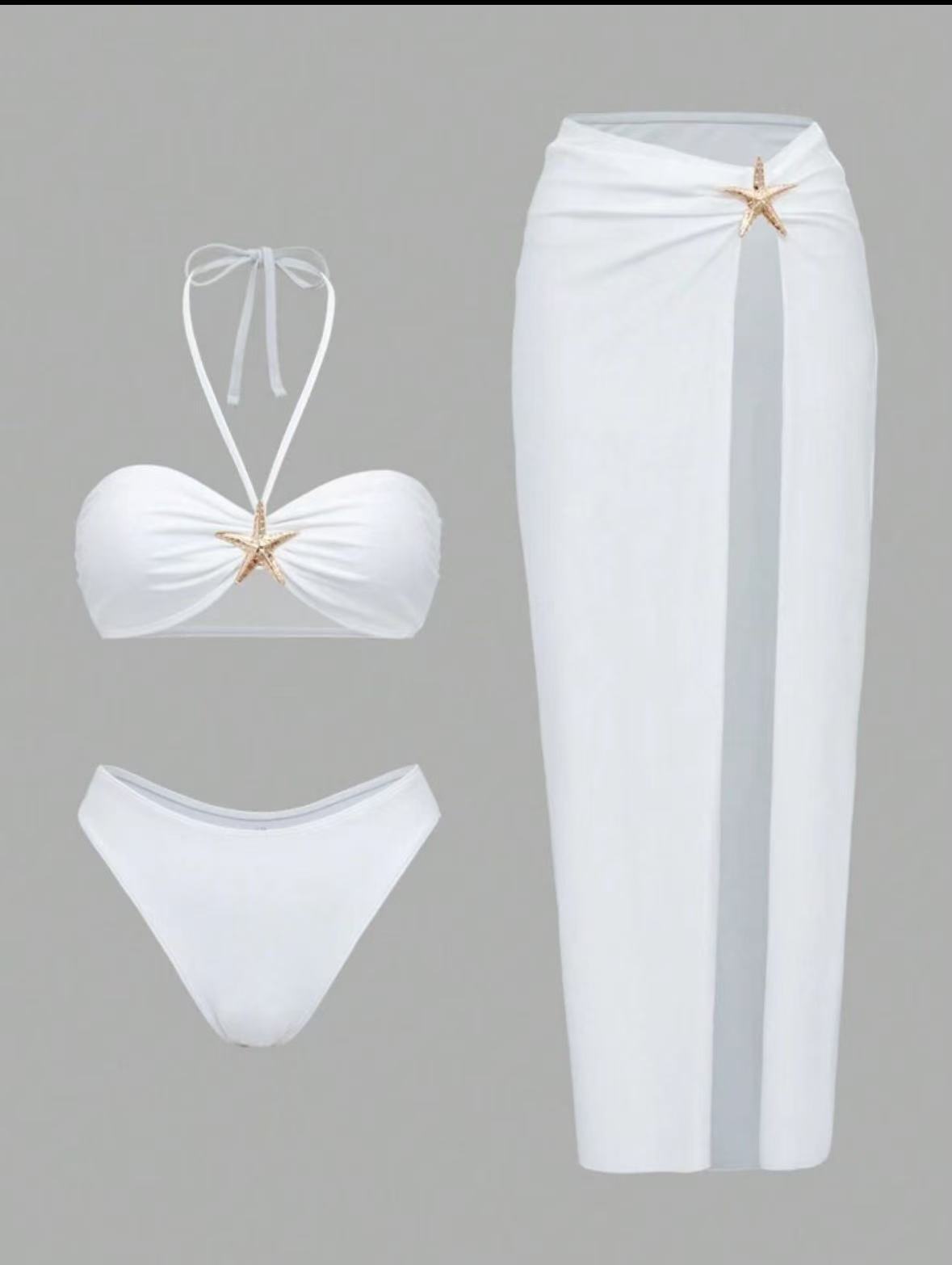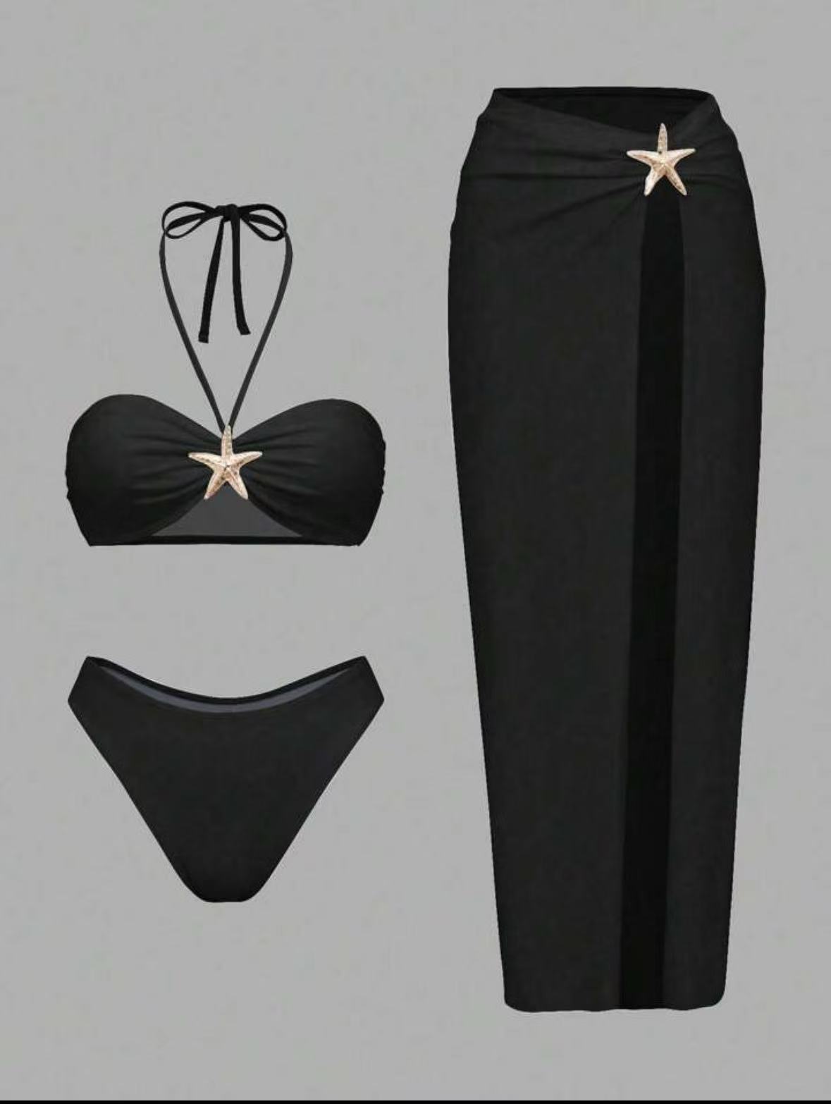 2025 유럽 및 미국 현지 수영복, 홀터넥 불가사리 롱 스커트 비키니 3피스 수영복, 비키니 백리스 스포츠 스타일스토어 가기