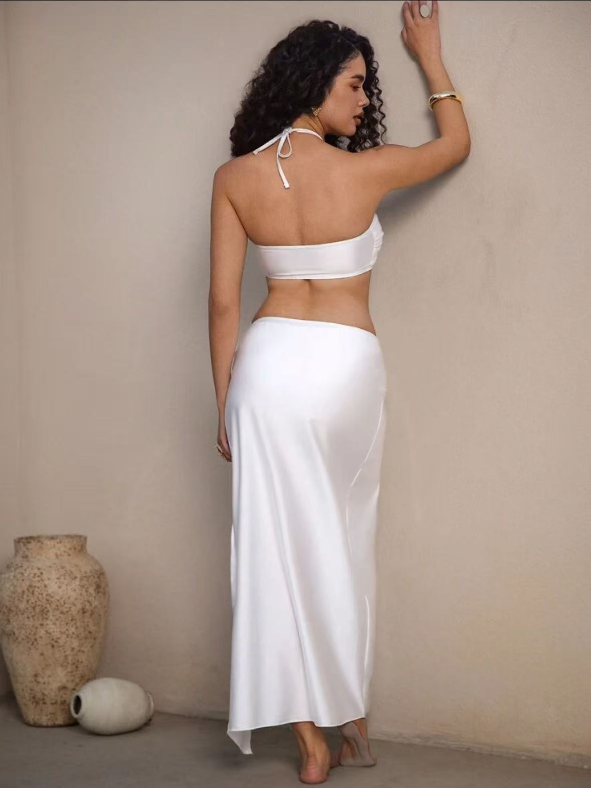 2025 유럽 및 미국 현지 수영복, 홀터넥 불가사리 롱 스커트 비키니 3피스 수영복, 비키니 백리스 스포츠 스타일