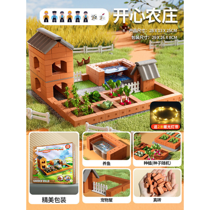 어린이 수제 오두막 실제 벽돌 미니 벽돌공이 집을 짓고 벽을 쌓는 장난감 빌라 빌딩 블록 조립 남성 금속