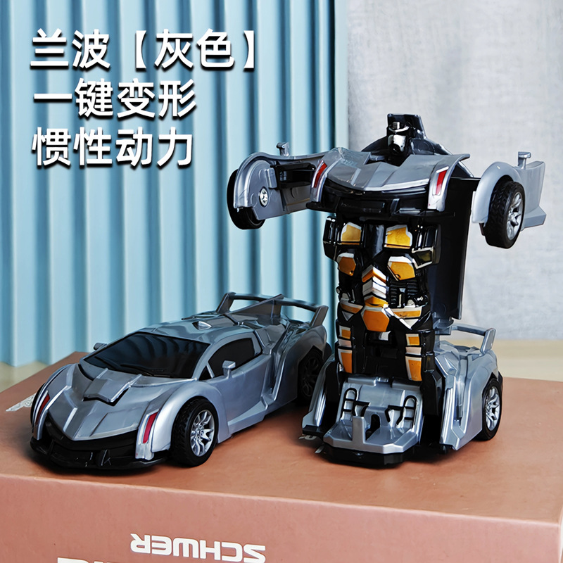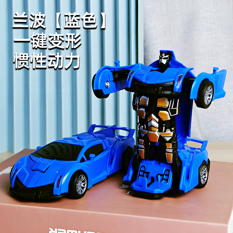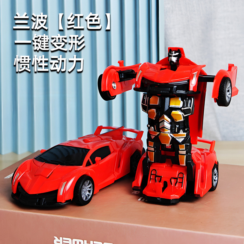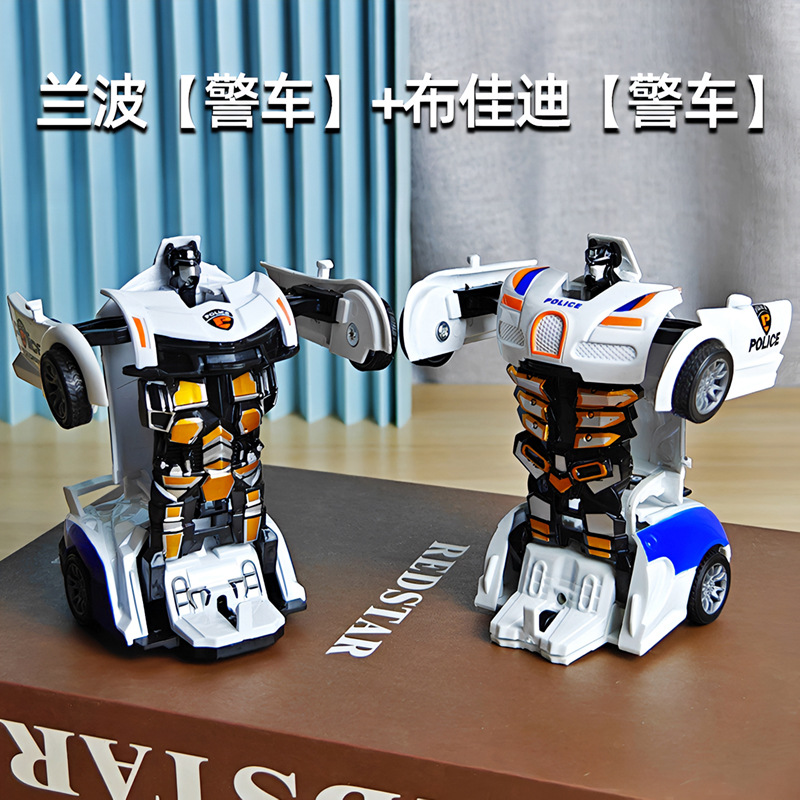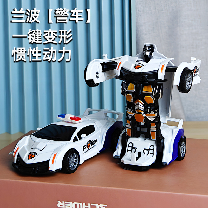 어린이 장난감 자동차 소년의 원 클릭 변형 장난감 자동차 충돌 자동차 로봇 관성 충격 경찰차 경주