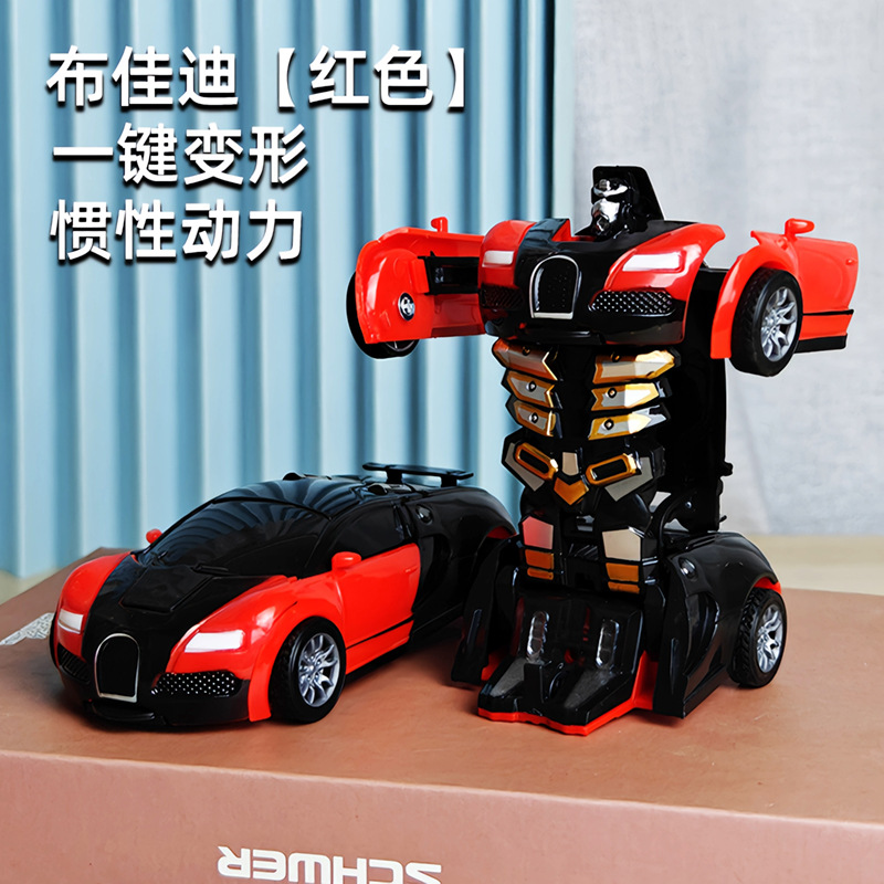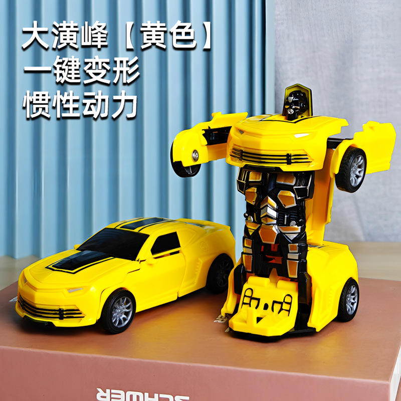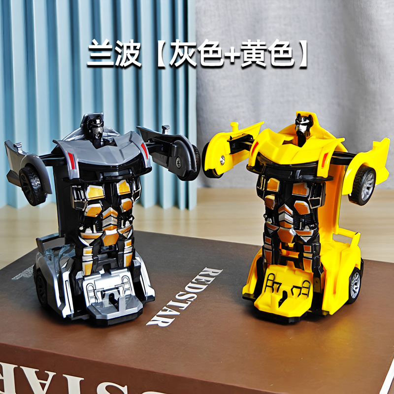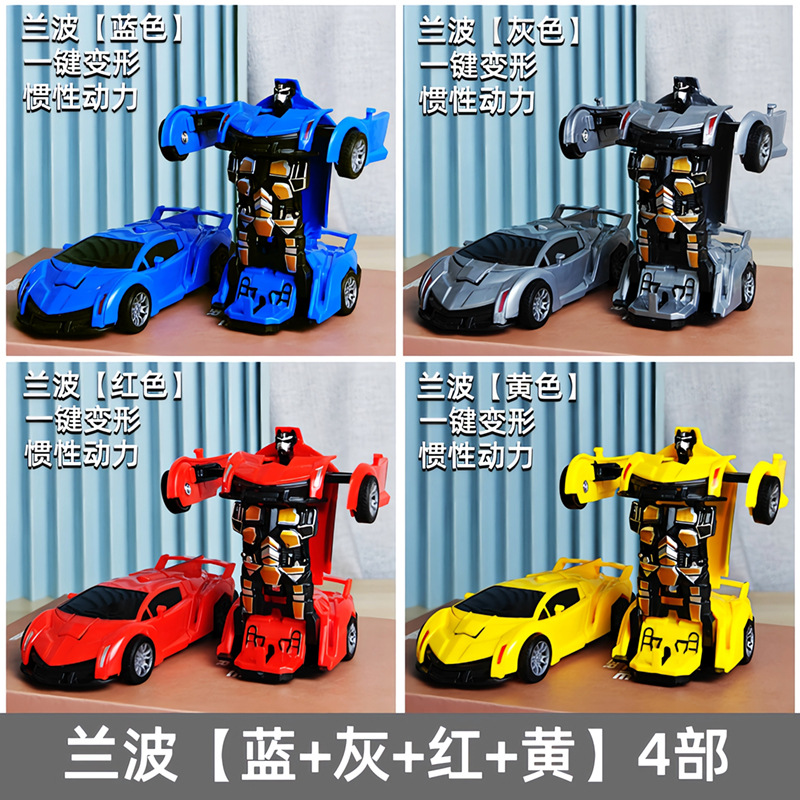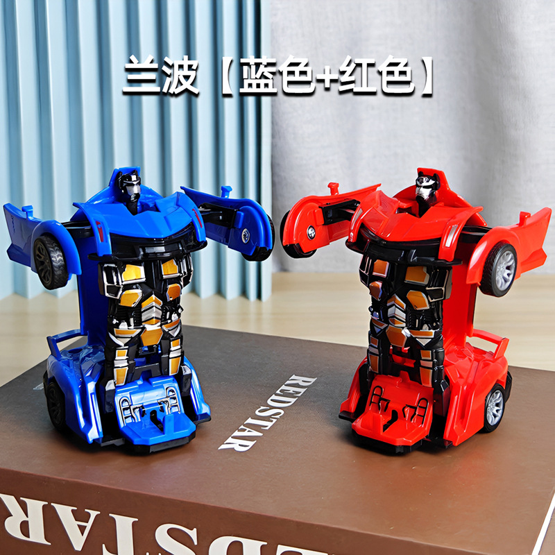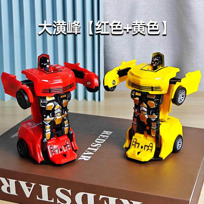 어린이 장난감 자동차 소년의 원 클릭 변형 장난감 자동차 충돌 자동차 로봇 관성 충격 경찰차 경주