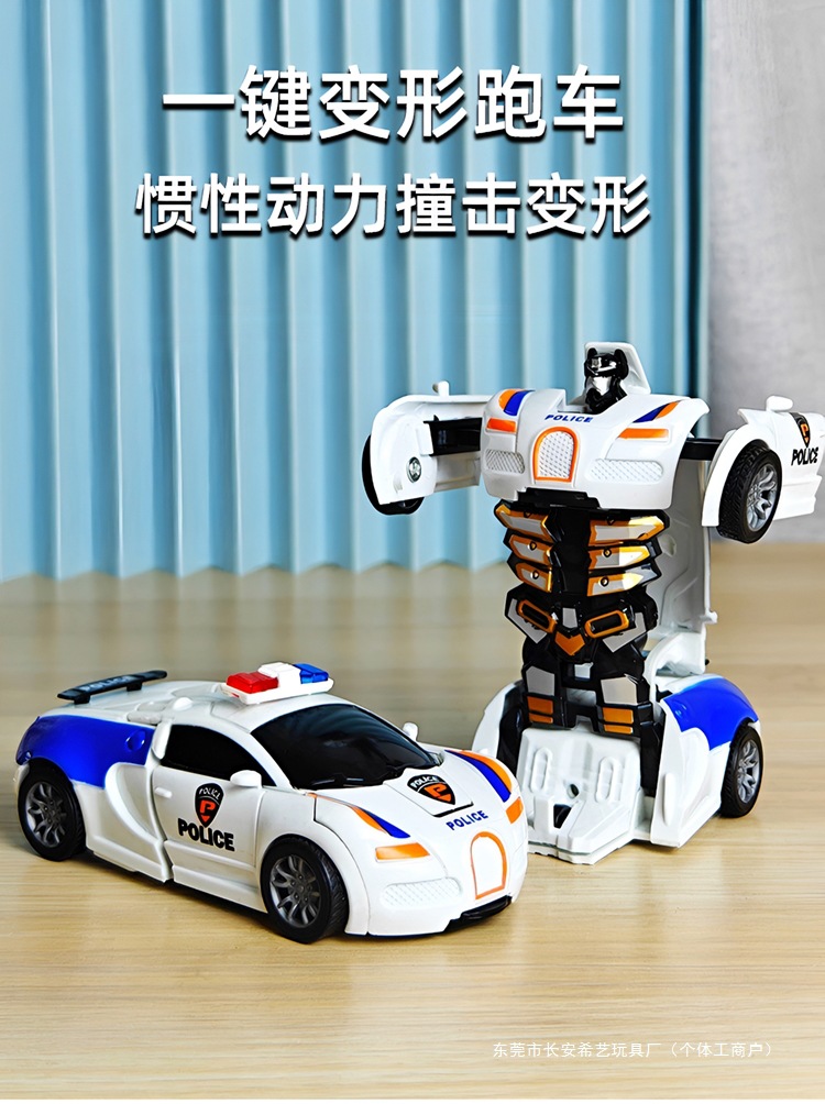 어린이 장난감 자동차 소년의 원 클릭 변형 장난감 자동차 충돌 자동차 로봇 관성 충격 경찰차 경주스토어 가기