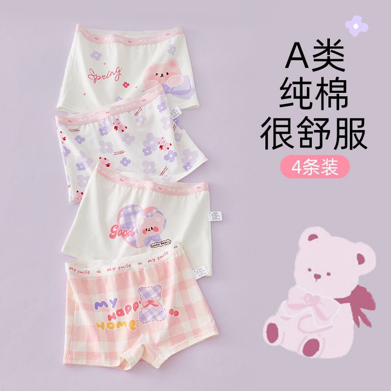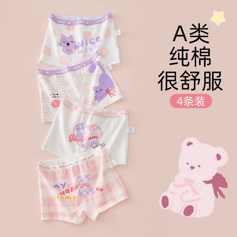 7A 항균 여아 속옷, 어린이 순면 사각 여아 사각팬티, 엉덩이가 꽉 끼지 않는 아기 면 사각팬티스토어 가기