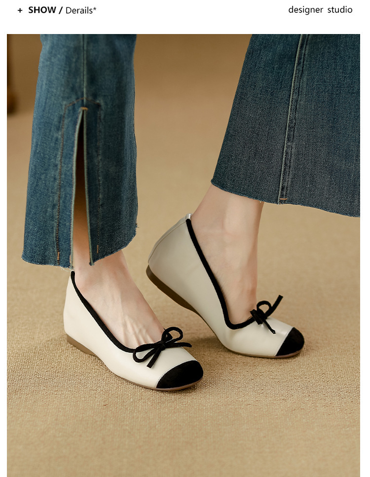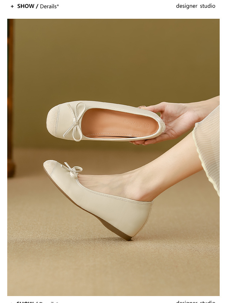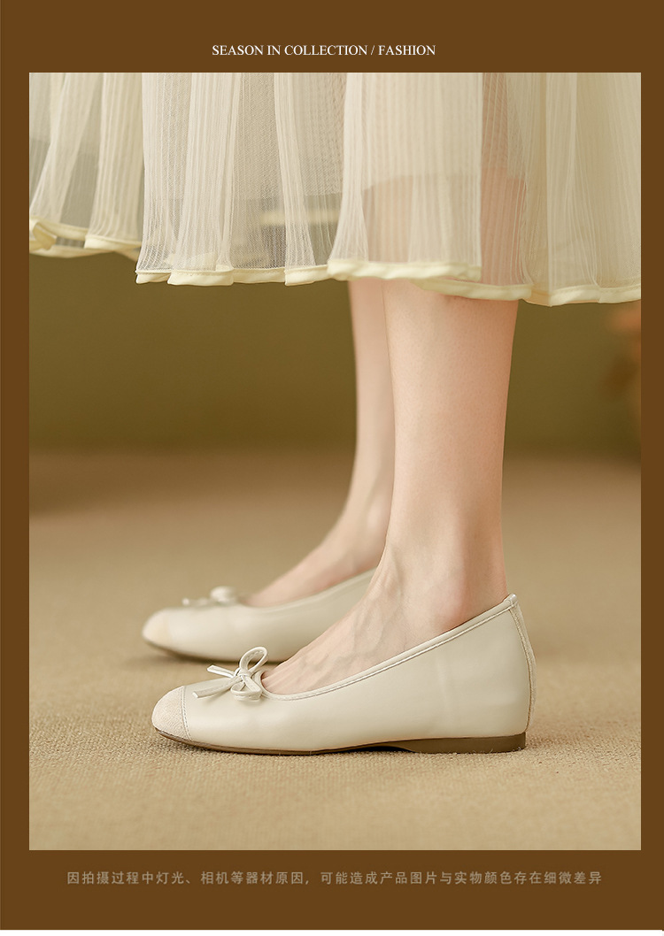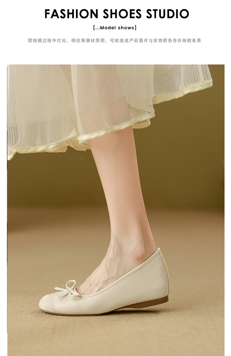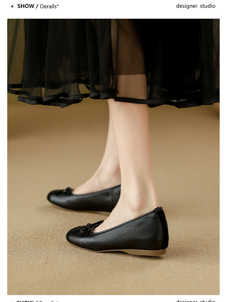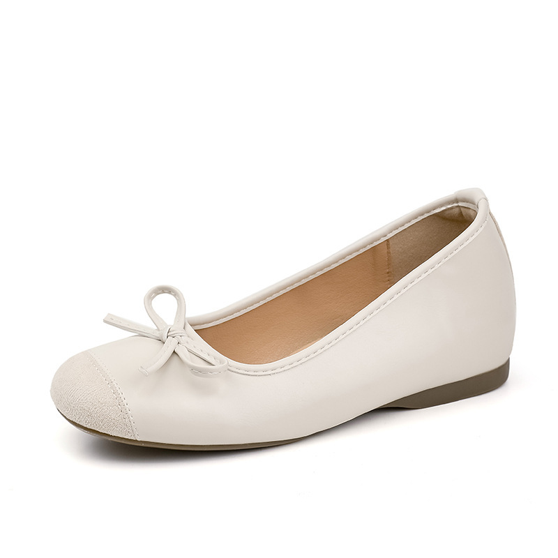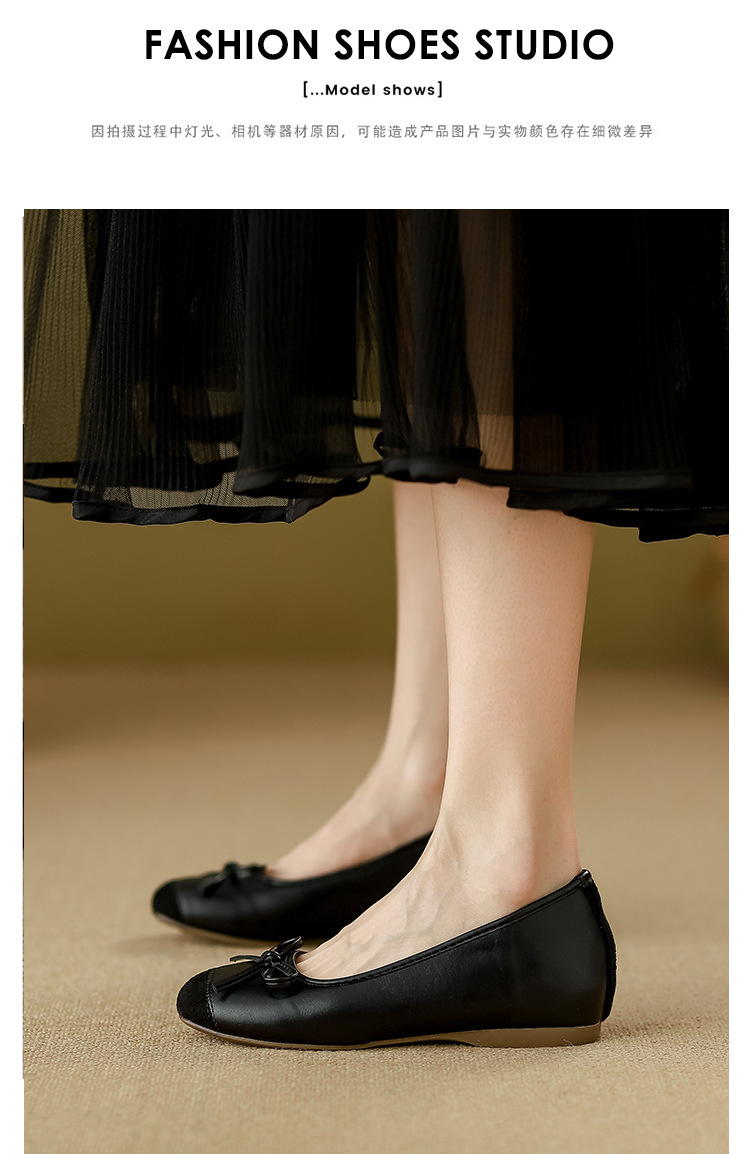 내부 높이가 증가하는 천연가죽~프렌치 소프트 가죽 스몰 프래그런스 스타일 여성용 두꺼운 굽 싱글 슈즈, 리본 할머니 슈즈, 플랫 발레 슈즈스토어 가기