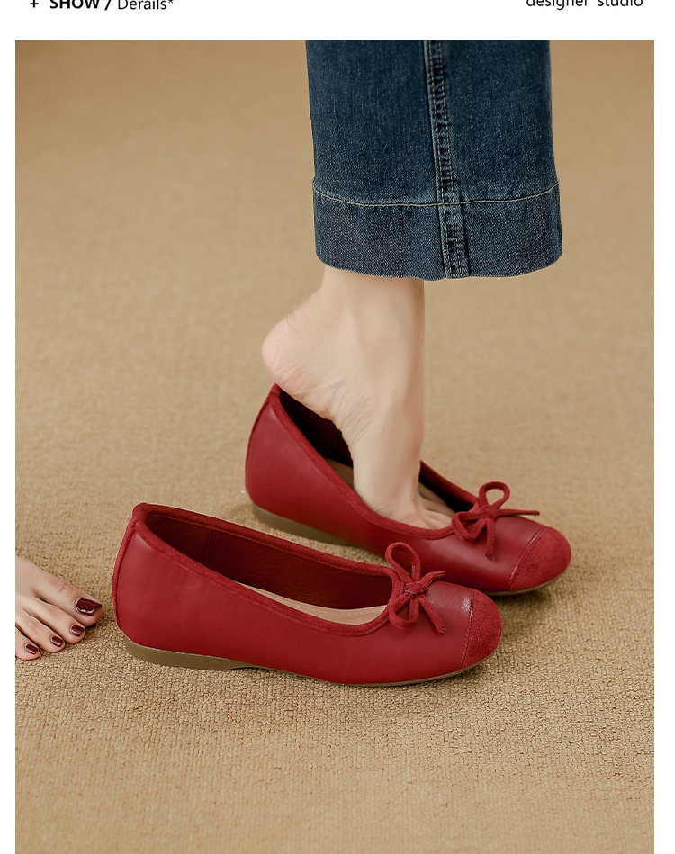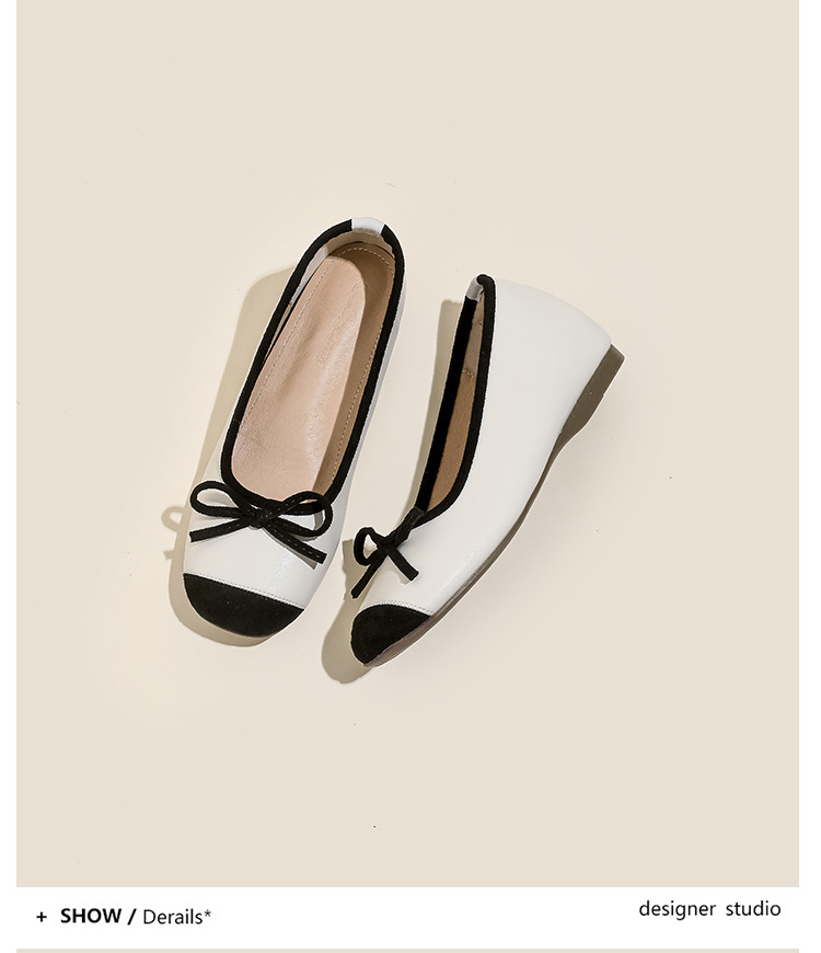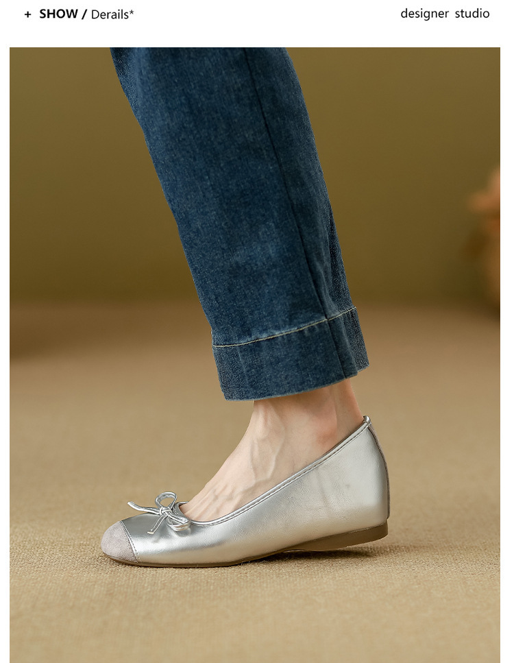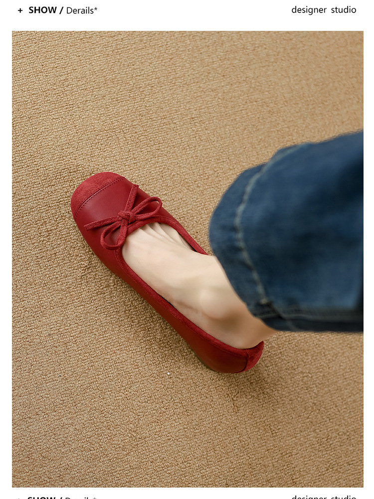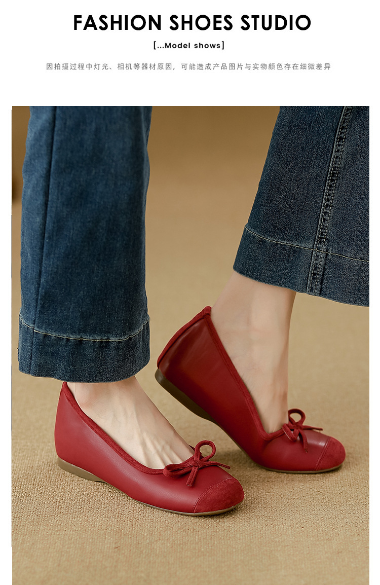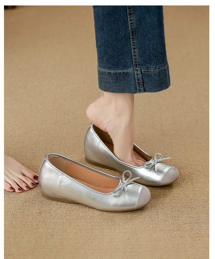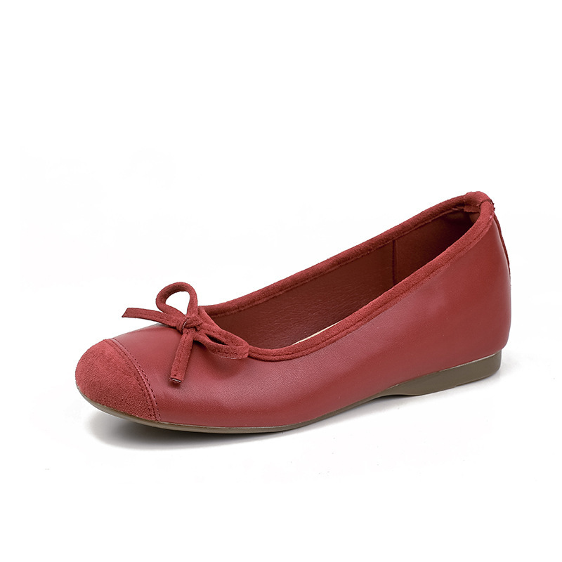 내부 높이가 증가하는 천연가죽~프렌치 소프트 가죽 스몰 프래그런스 스타일 여성용 두꺼운 굽 싱글 슈즈, 리본 할머니 슈즈, 플랫 발레 슈즈스토어 가기