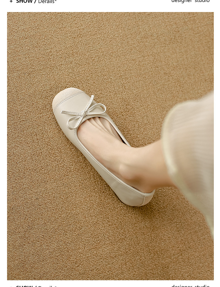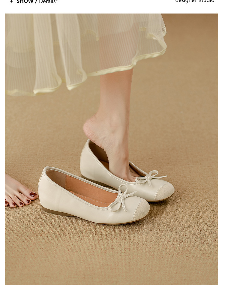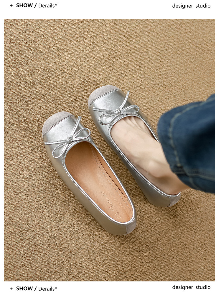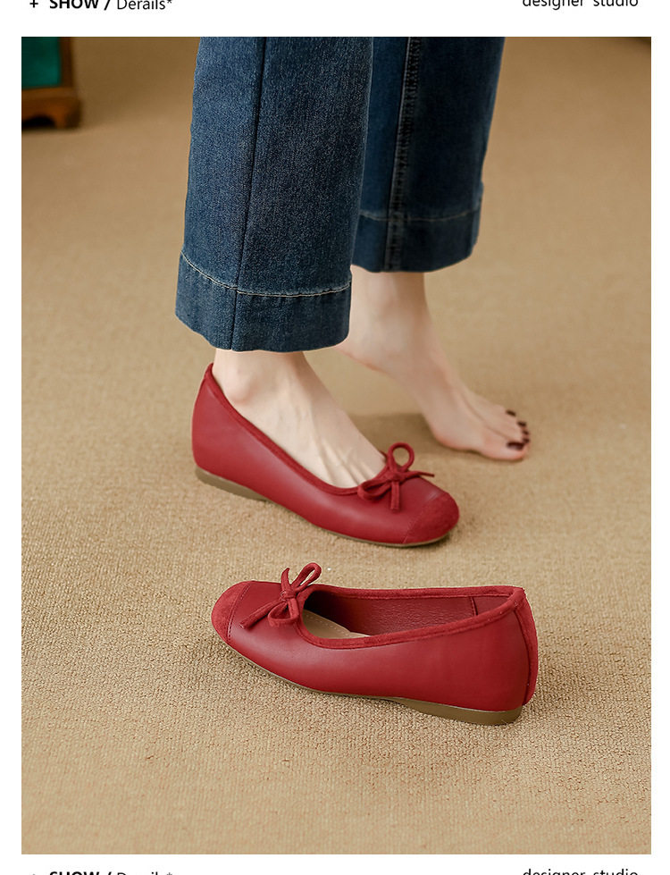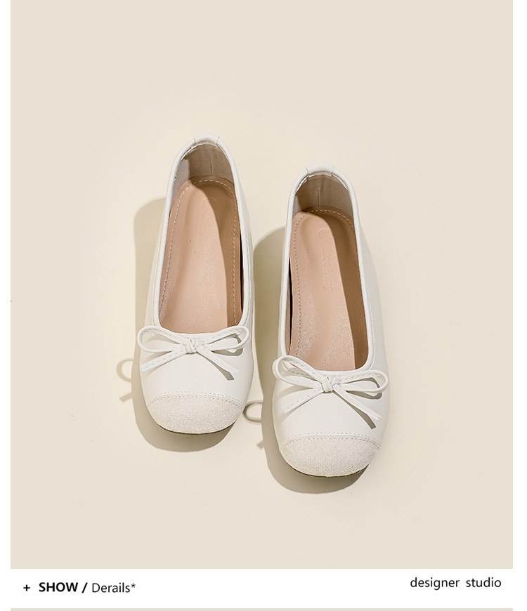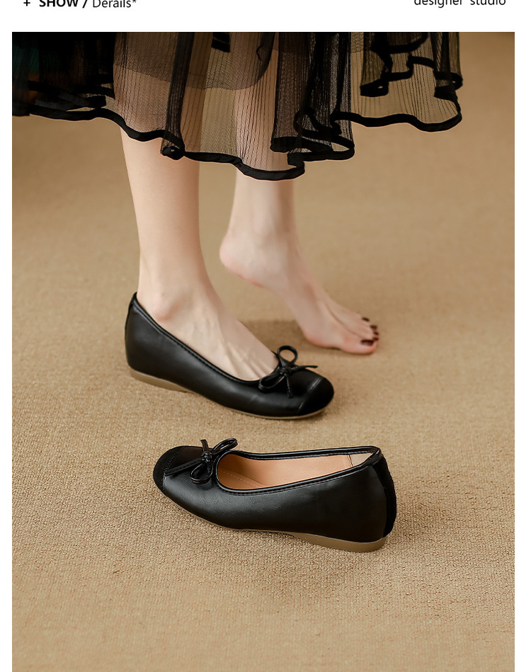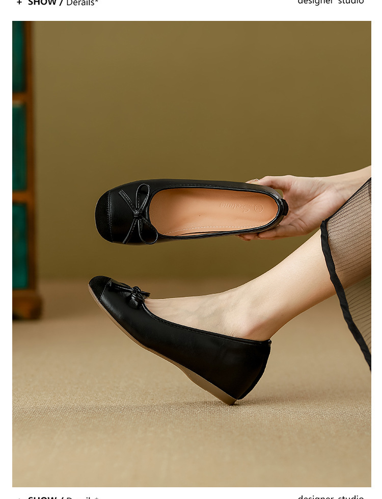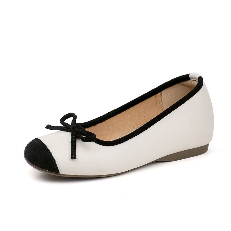 내부 높이가 증가하는 천연가죽~프렌치 소프트 가죽 스몰 프래그런스 스타일 여성용 두꺼운 굽 싱글 슈즈, 리본 할머니 슈즈, 플랫 발레 슈즈스토어 가기