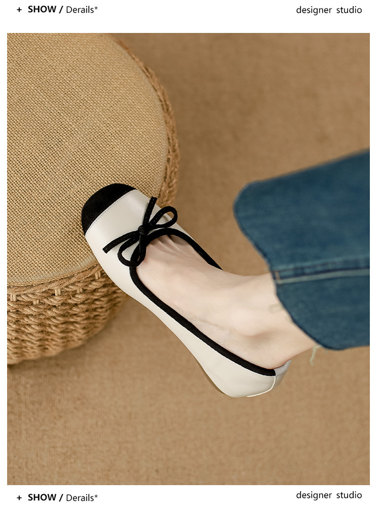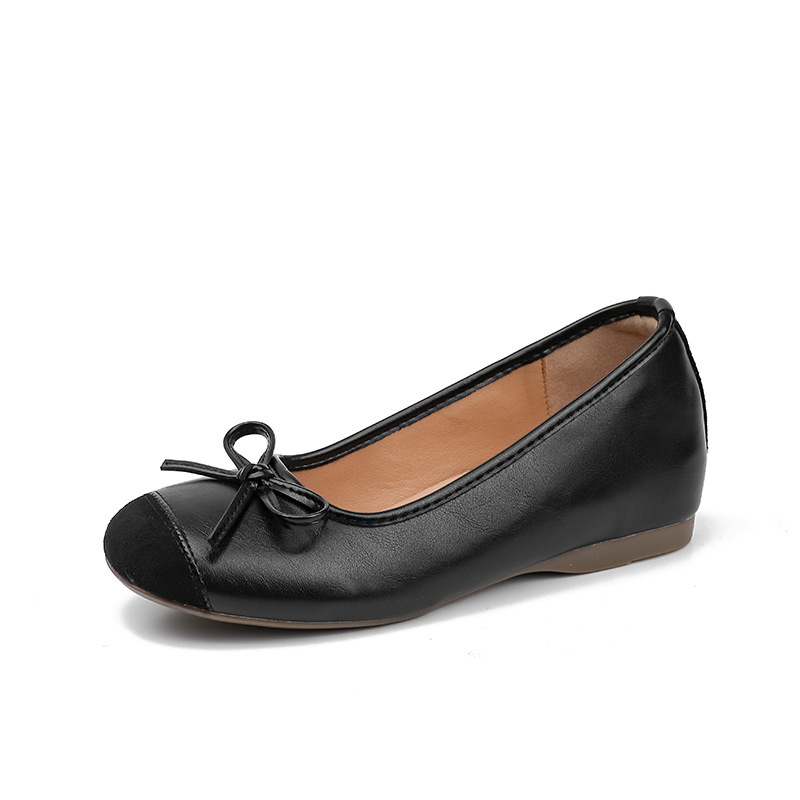 내부 높이가 증가하는 천연가죽~프렌치 소프트 가죽 스몰 프래그런스 스타일 여성용 두꺼운 굽 싱글 슈즈, 리본 할머니 슈즈, 플랫 발레 슈즈