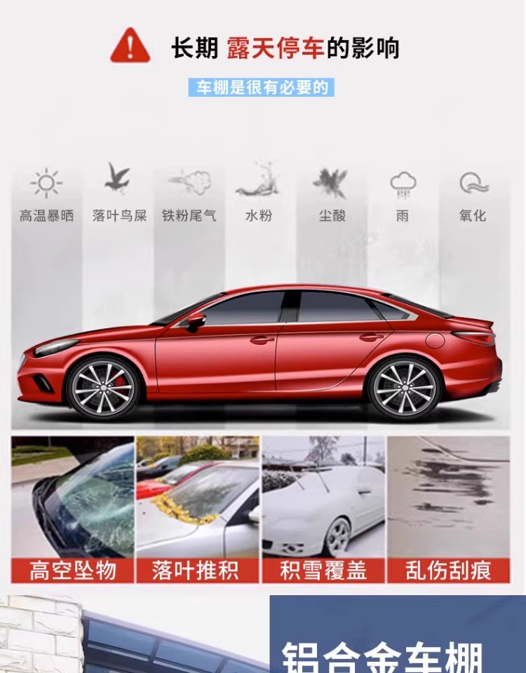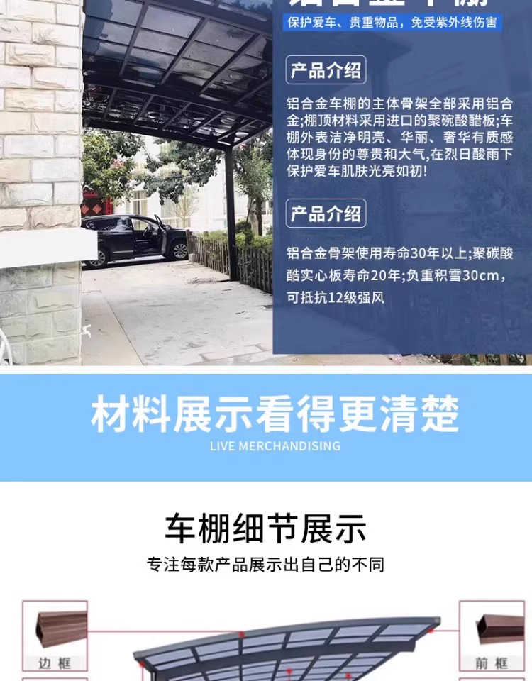 알루미늄 합금 차고, 주차 차고, 가정용 실외 자동차 차양, 비닐하우스, 내구성 보드, 방수 및 자외선 차단 차고