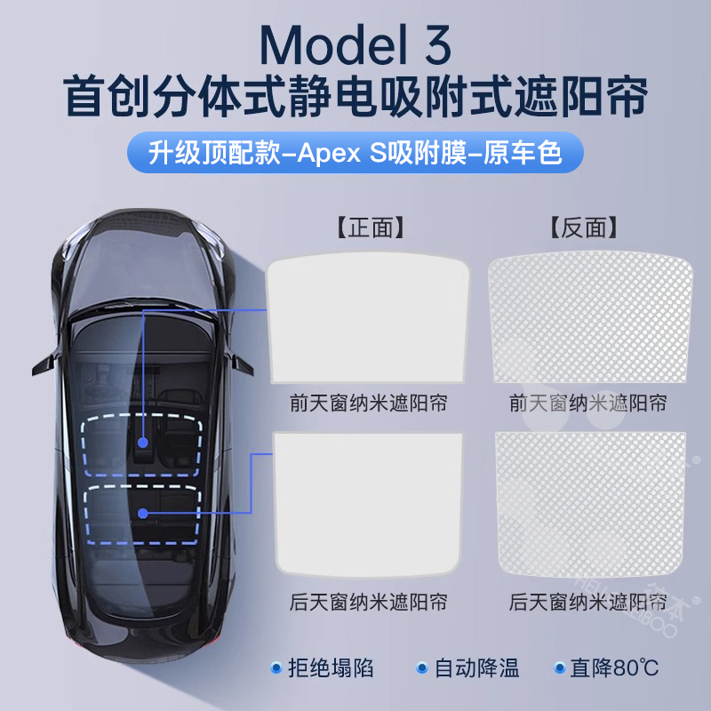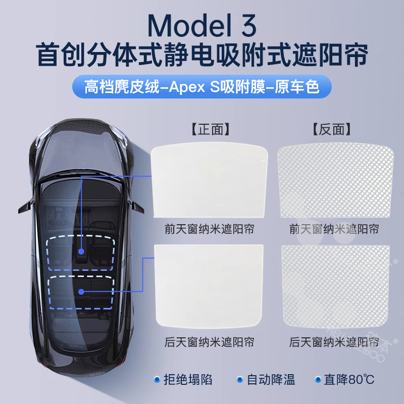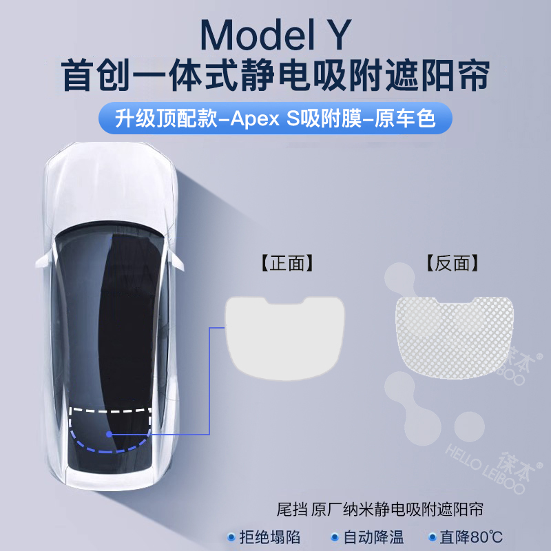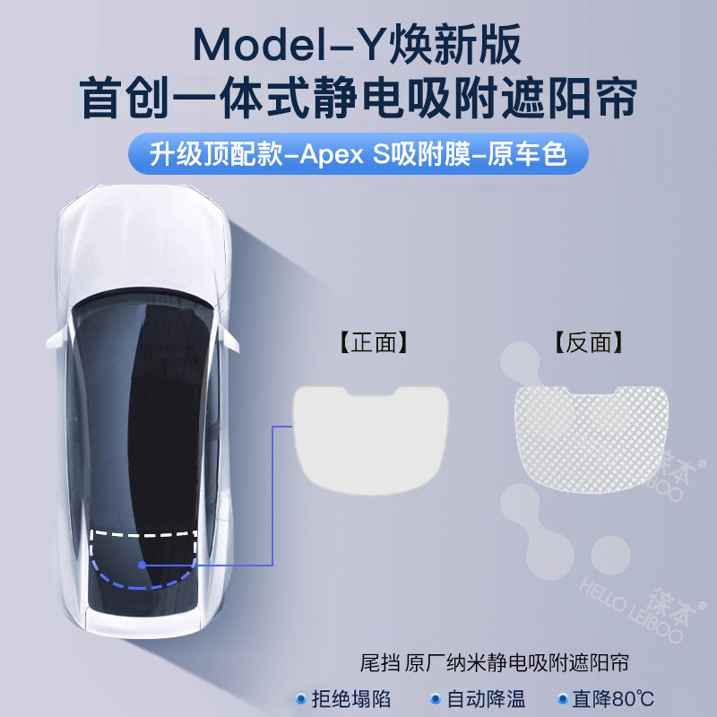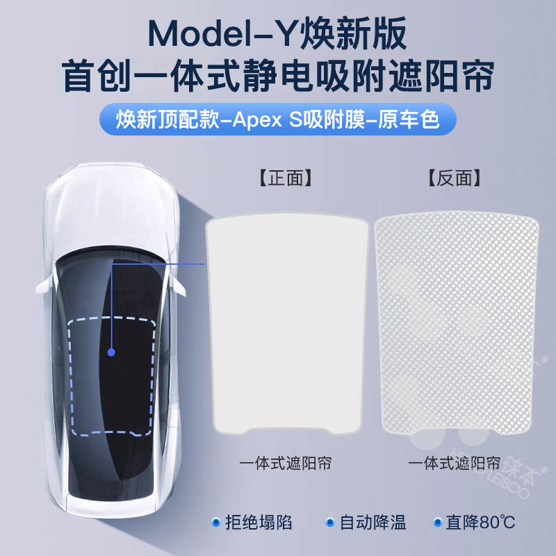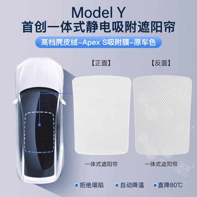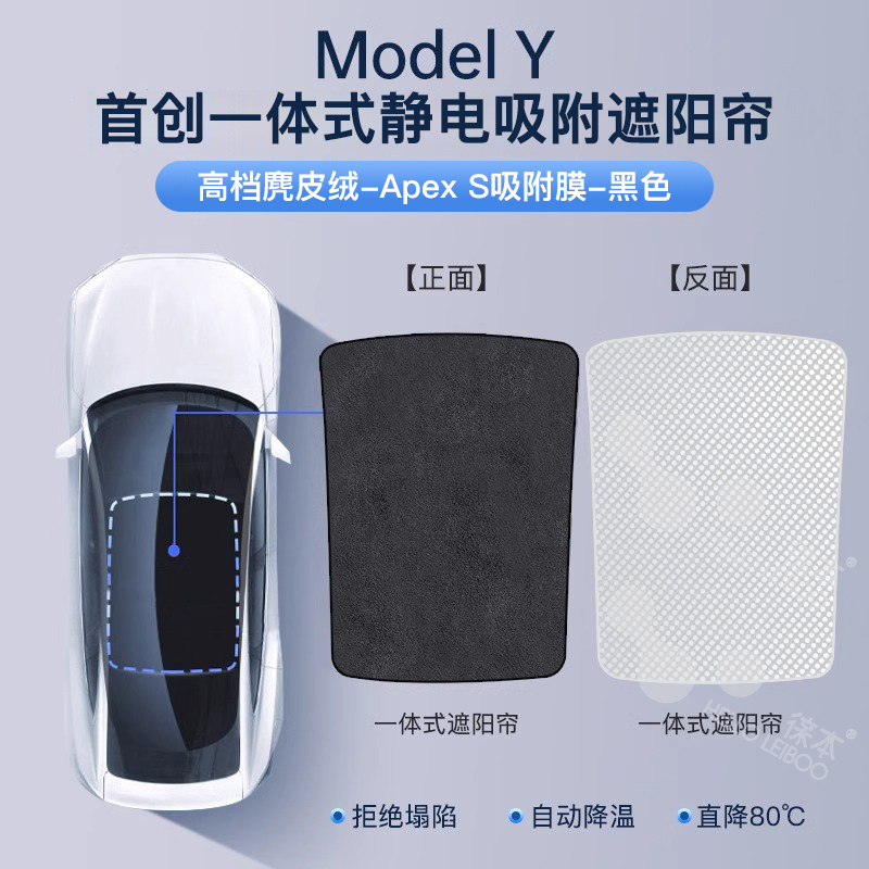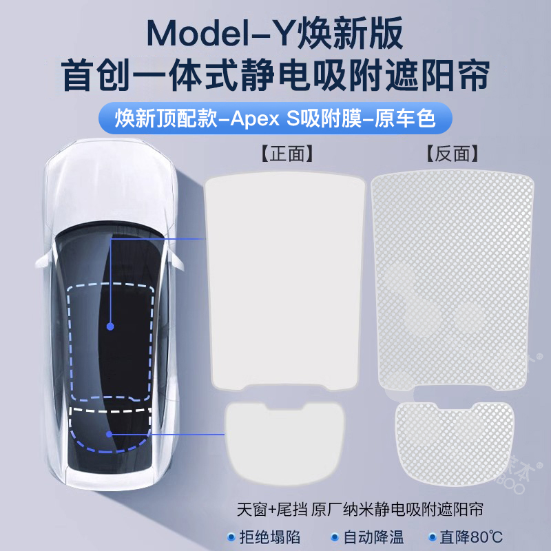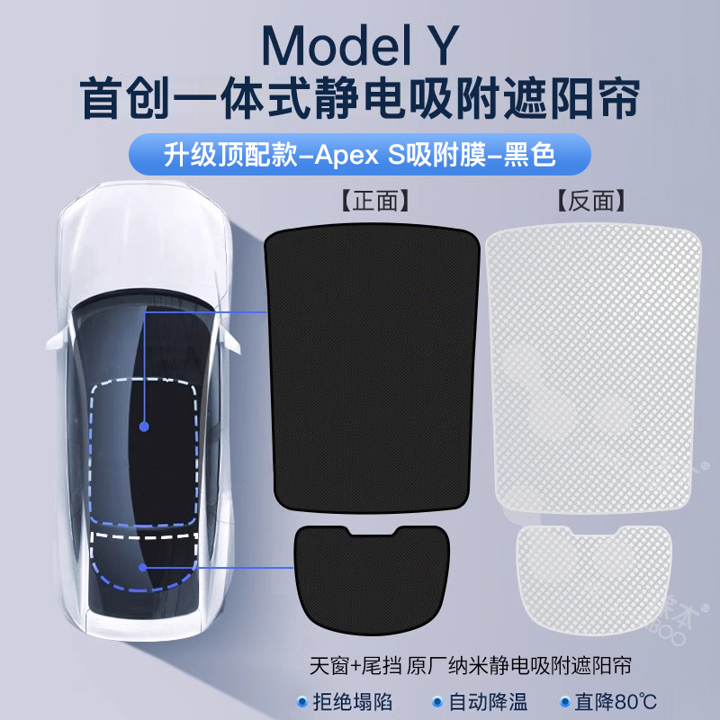 • 스웨이드 [정전기 흡착] 올인원 선루프 + 테일게이트 선쉐이드가 포함된 25개 모델 Y 리뉴얼 버전 - 오리지널 카 컬러