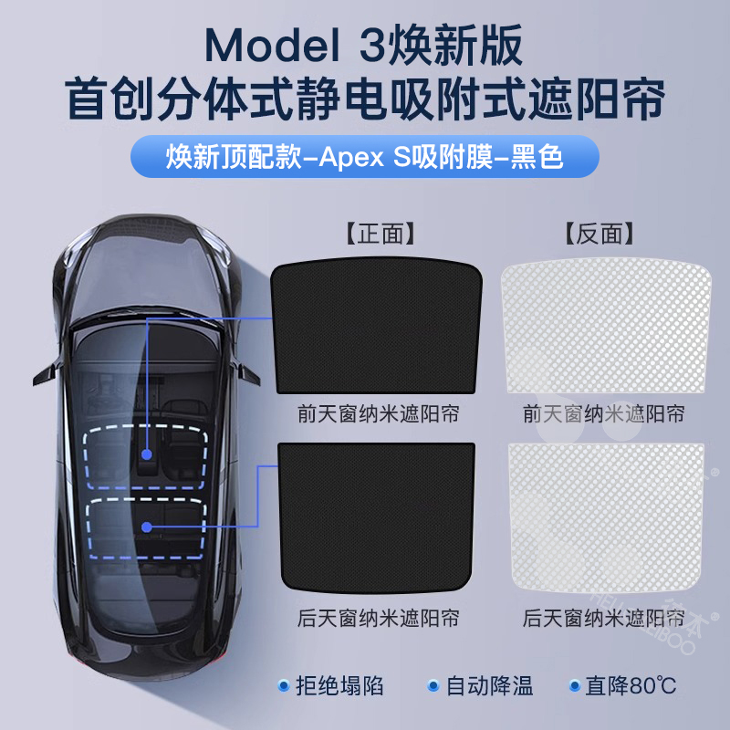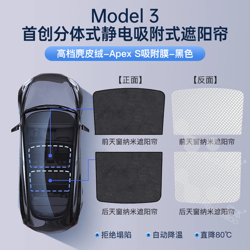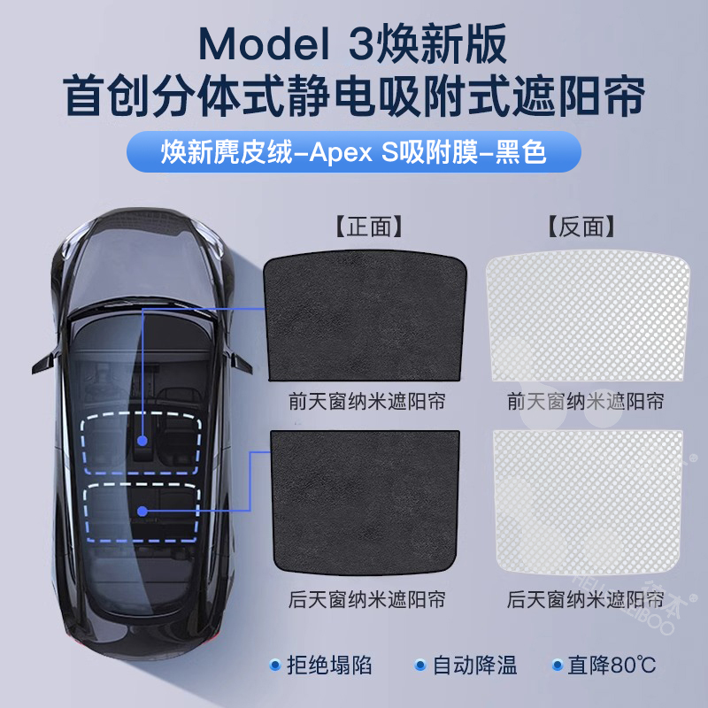 • 스웨이드 [정전기 흡착] 모델 3 선루프 선쉐이드 리뉴얼 버전 - 블랙
