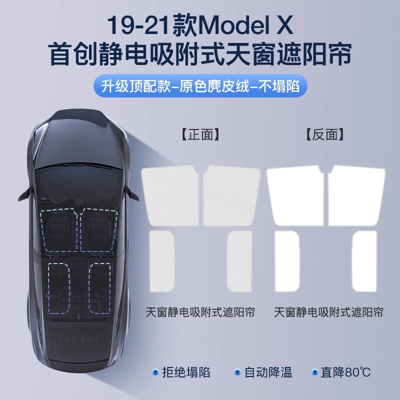 • 스웨이드 [정전기 흡착] 19-21 모델 X 선루프 선쉐이드 - 오리지널 카 컬러