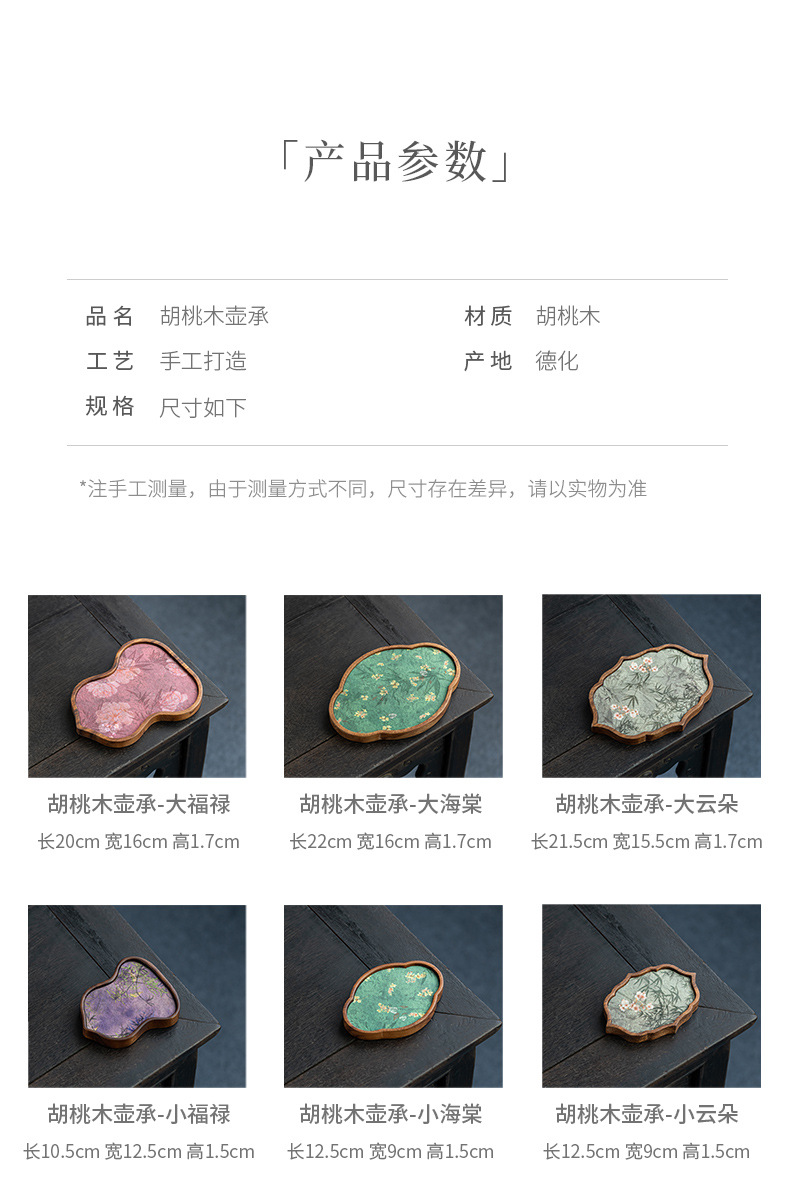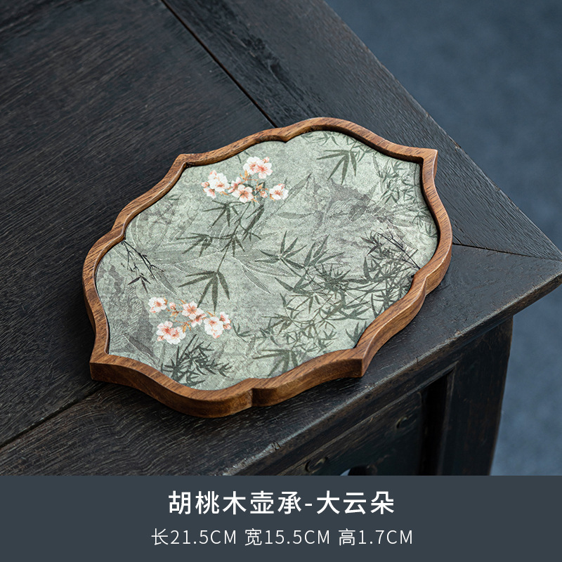 Fulu Yunduo 호두 주전자, 원목 건조 차 트레이, 고급 베고니아 차 테이블, 차 매트, 방수 소형 차 트레이