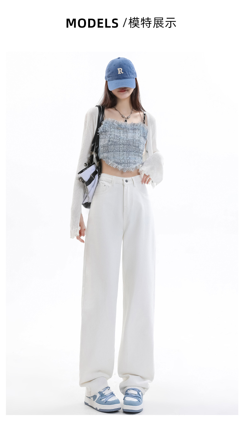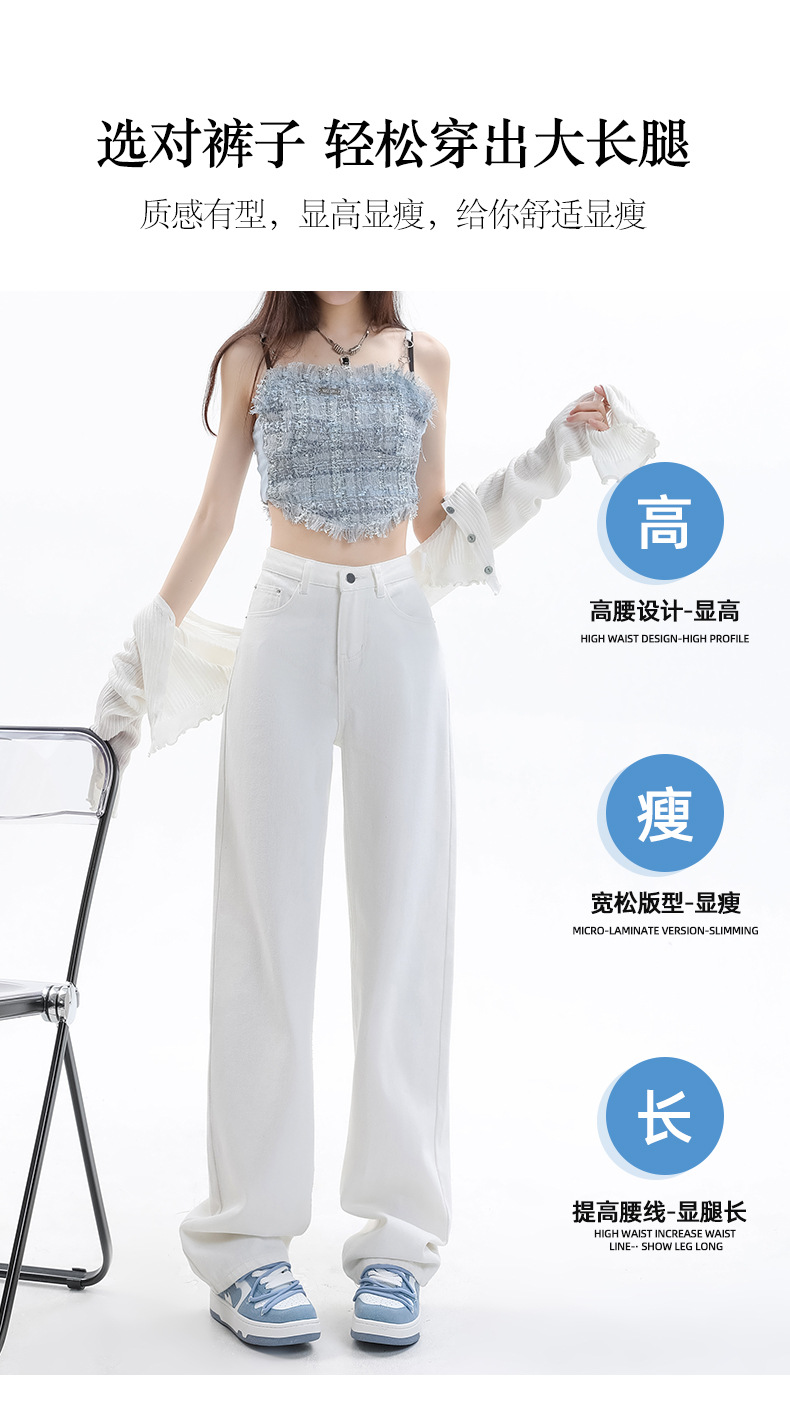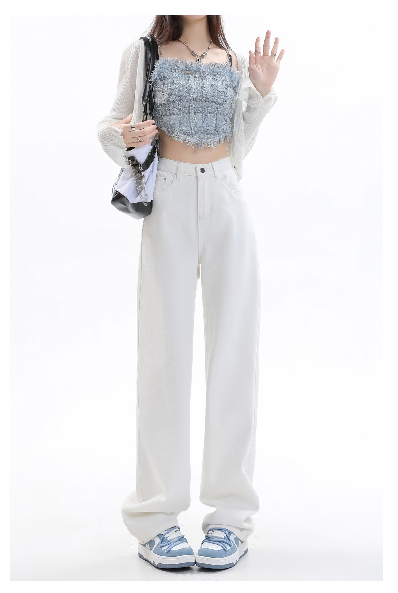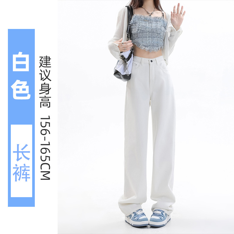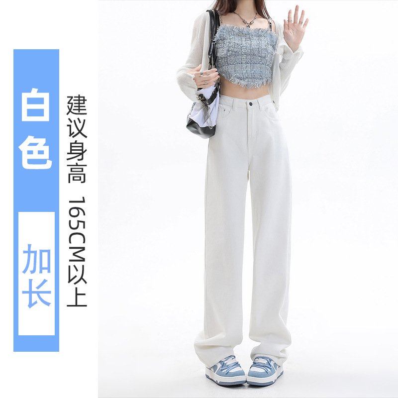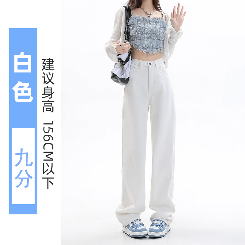 화이트 슬림핏 와이드 레그 청바지 여성용 2026년 가을 신상품 키 작은 분들을 위한 하이웨이스트 루즈핏 슬리밍 스트레이트 팬츠스토어 가기