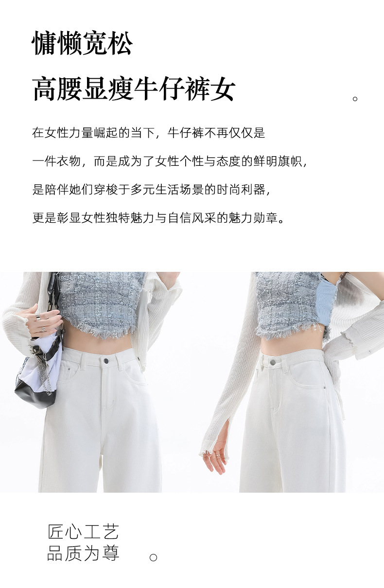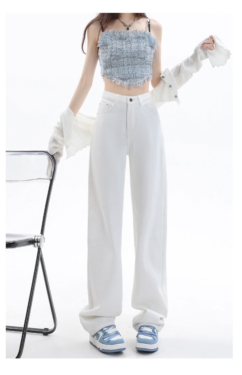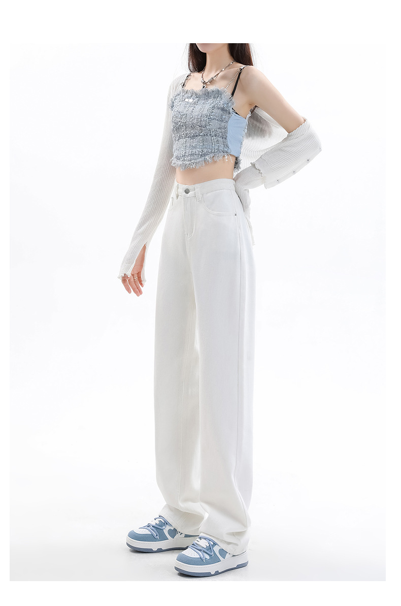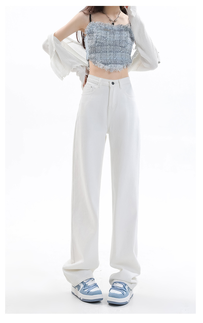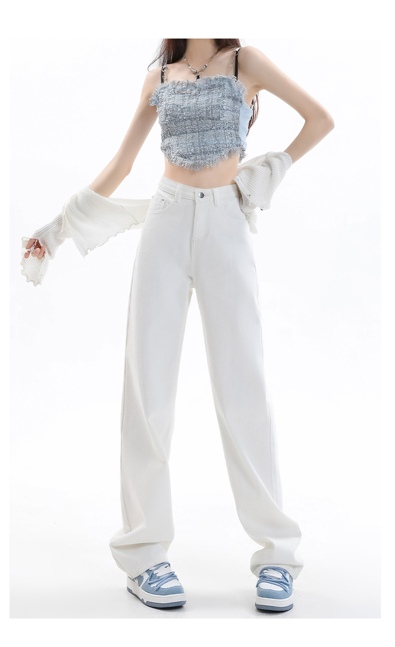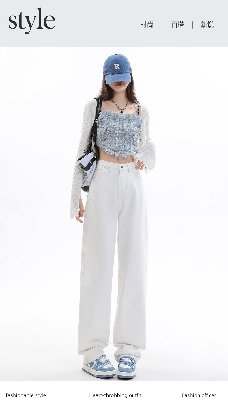 화이트 슬림핏 와이드 레그 청바지 여성용 2026년 가을 신상품 키 작은 분들을 위한 하이웨이스트 루즈핏 슬리밍 스트레이트 팬츠스토어 가기