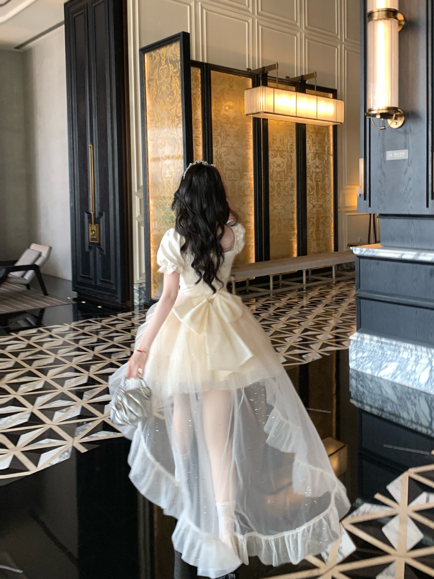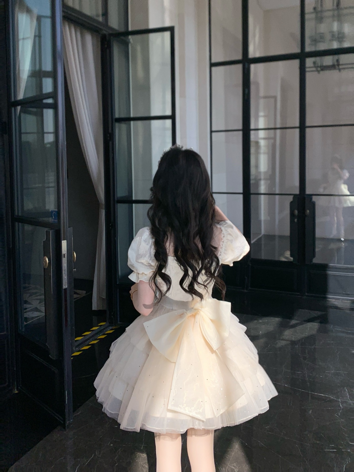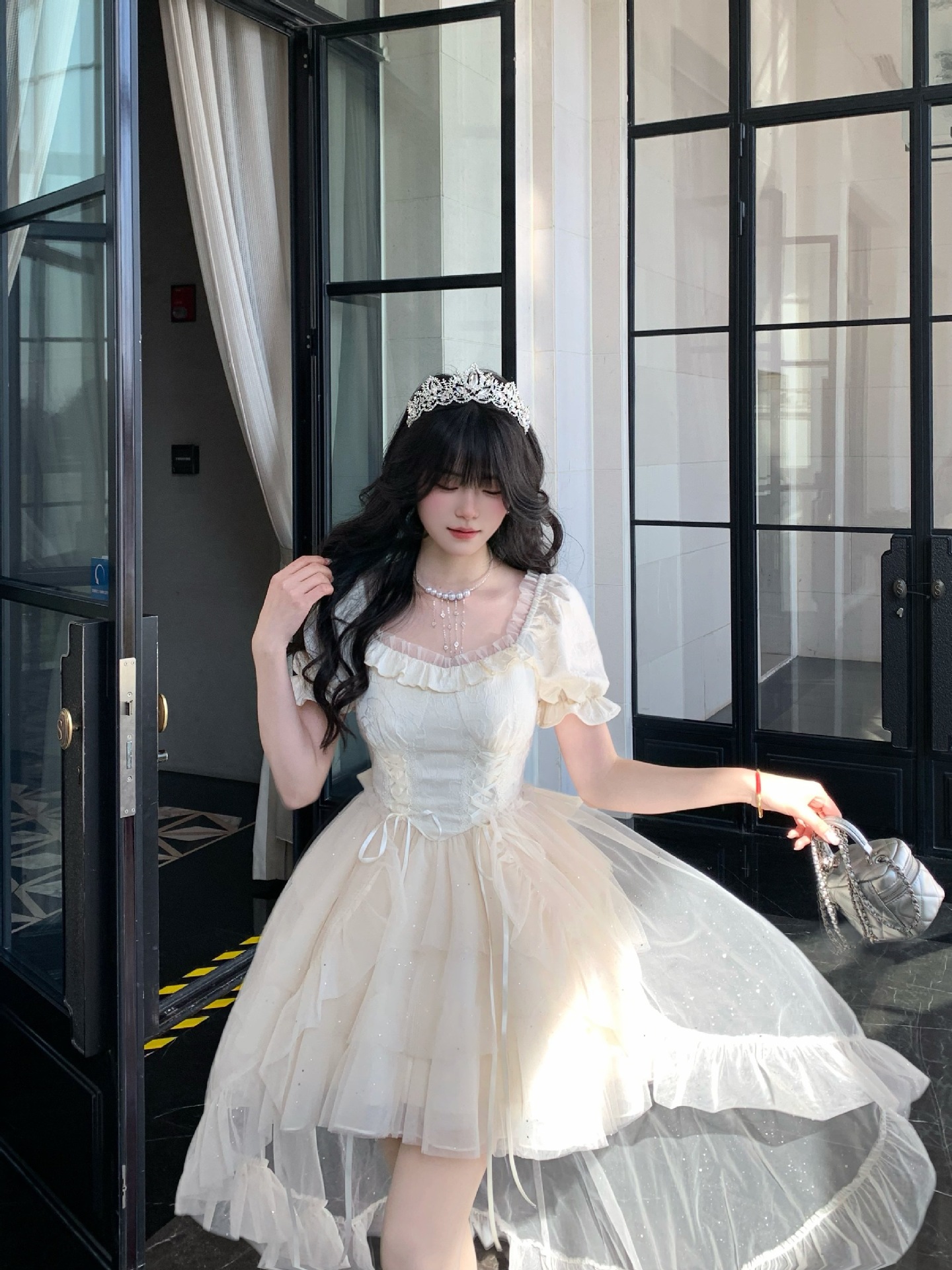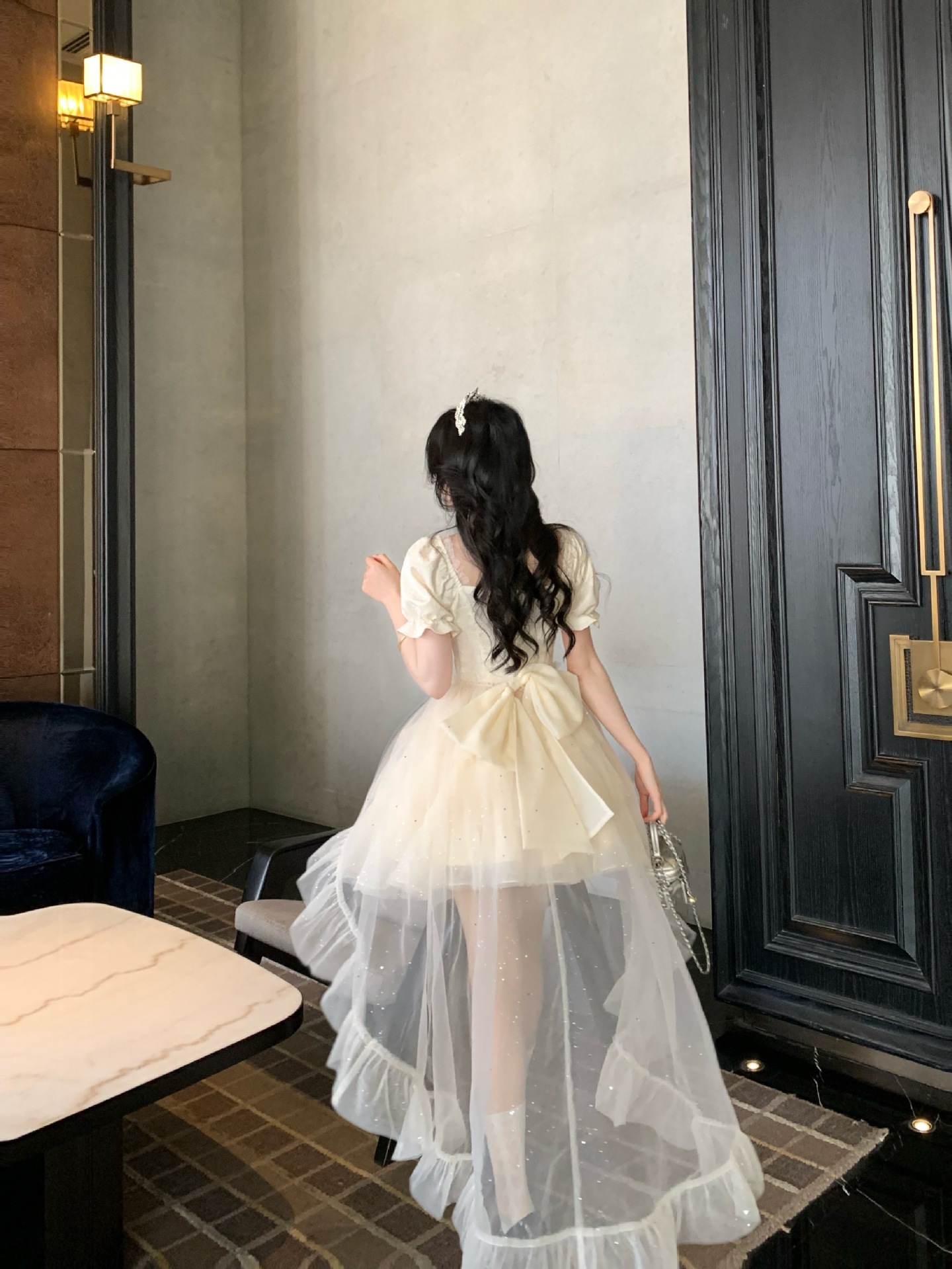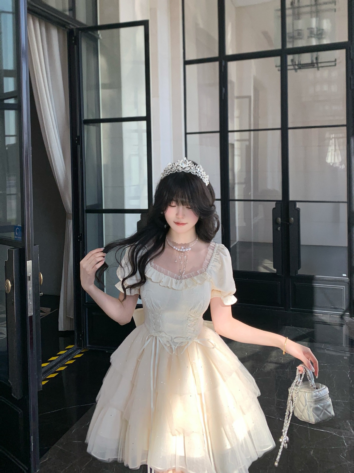 블로벨란 반쪽 하트 대형 리본 공주 드레스 자카드 퍼프 스팽글 트레인 드레스 생일 드레스 트렌디스토어 가기