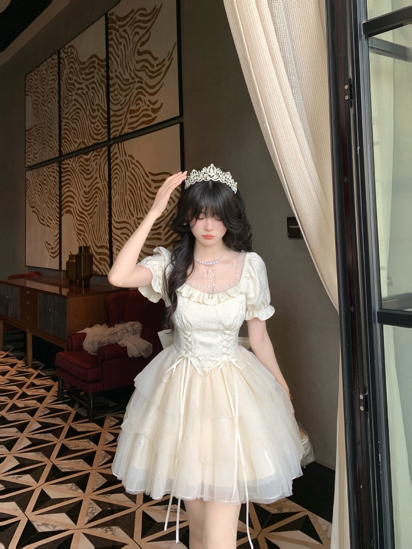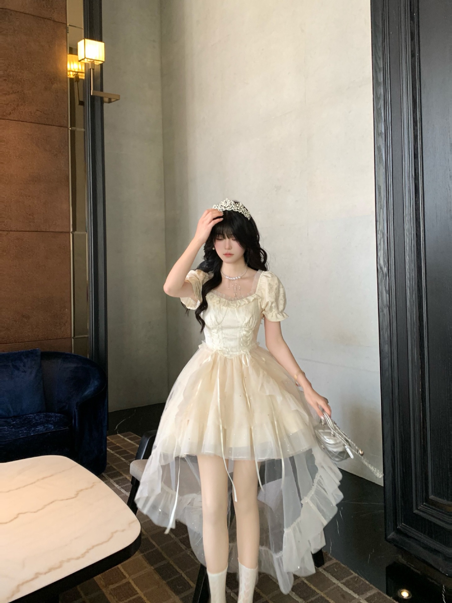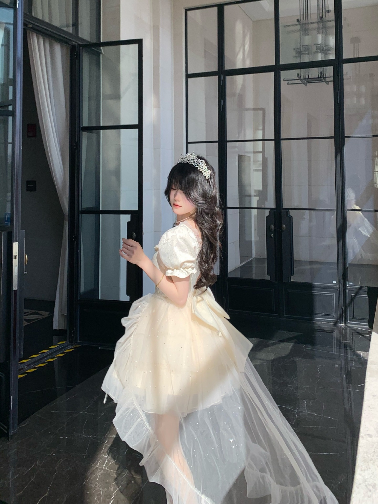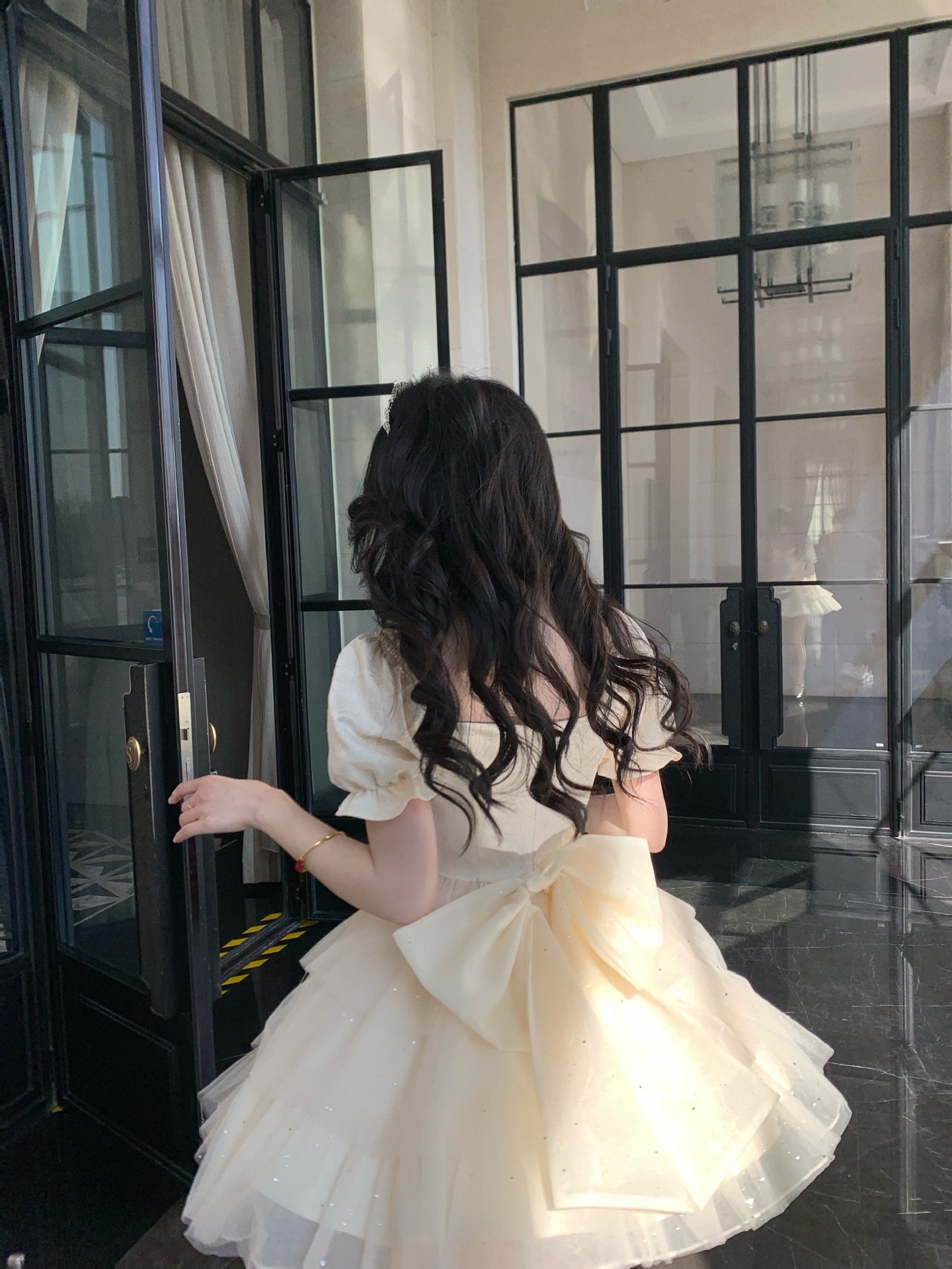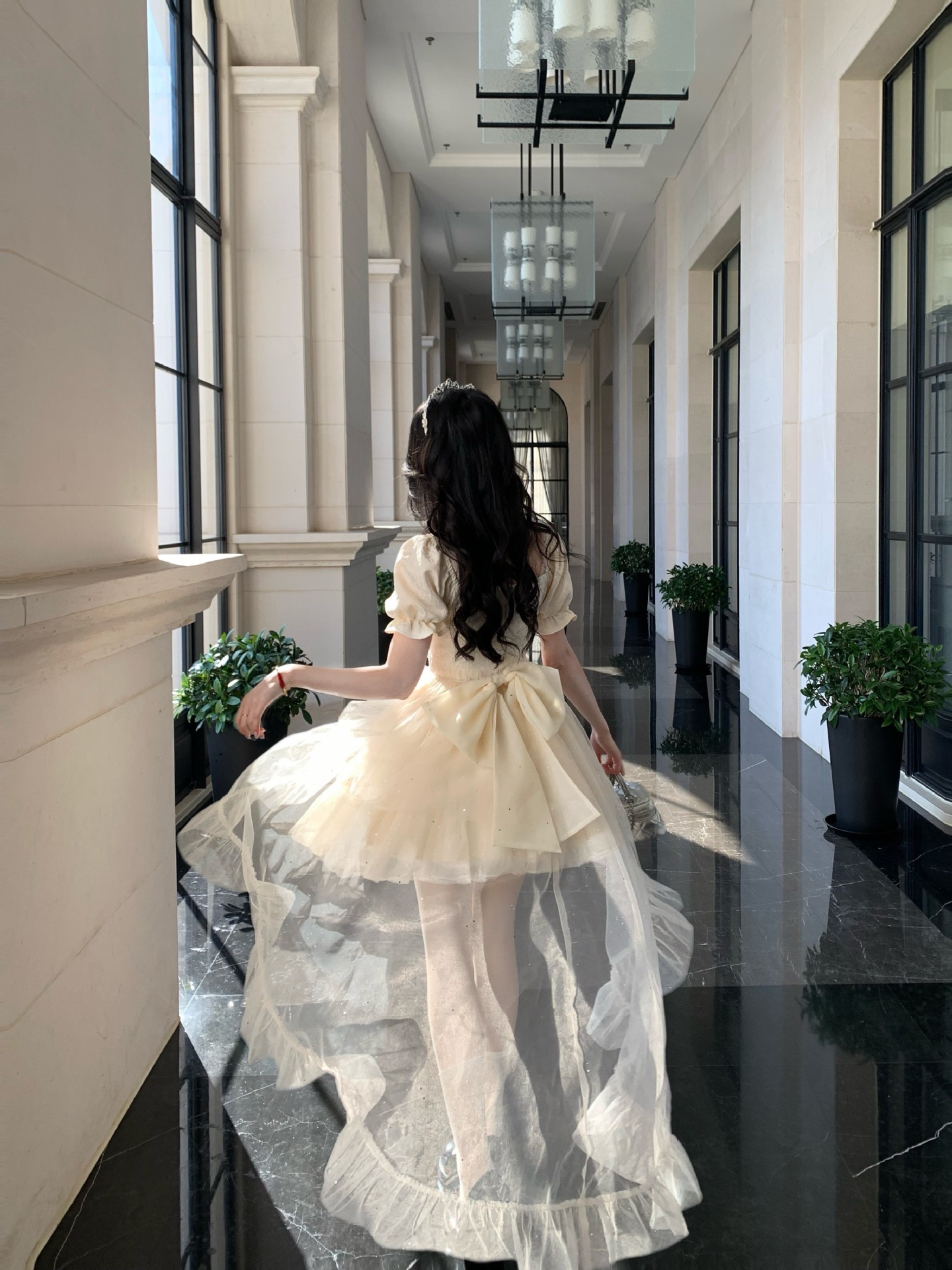 블로벨란 반쪽 하트 대형 리본 공주 드레스 자카드 퍼프 스팽글 트레인 드레스 생일 드레스 트렌디스토어 가기