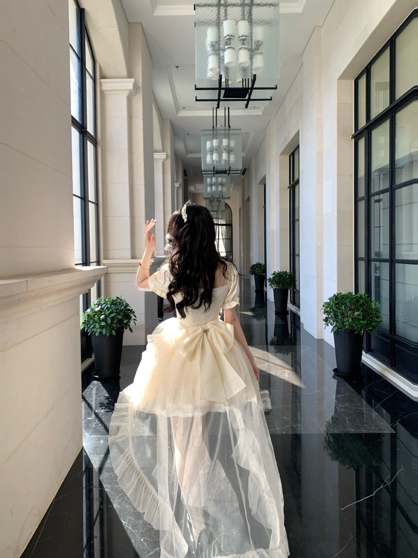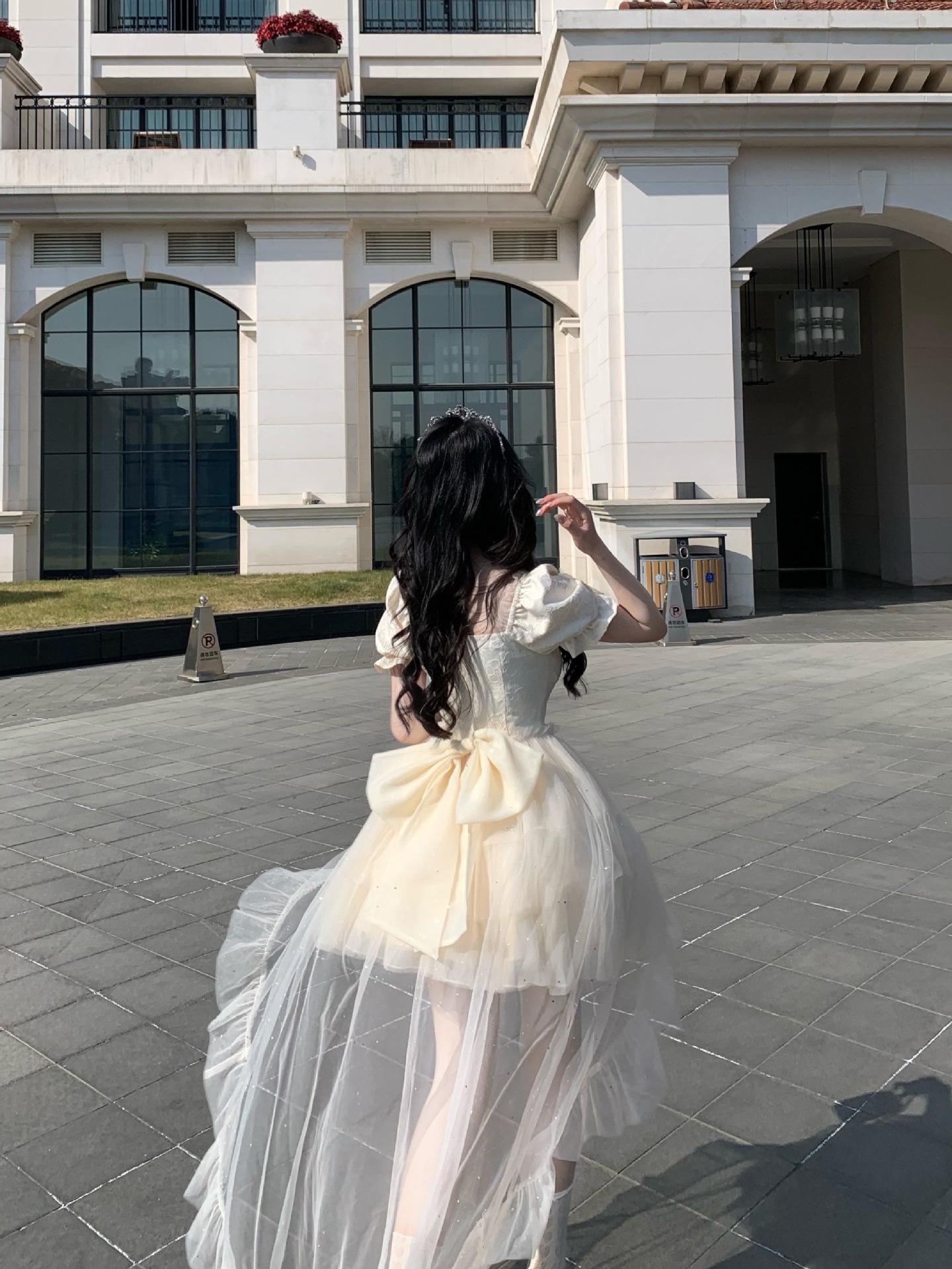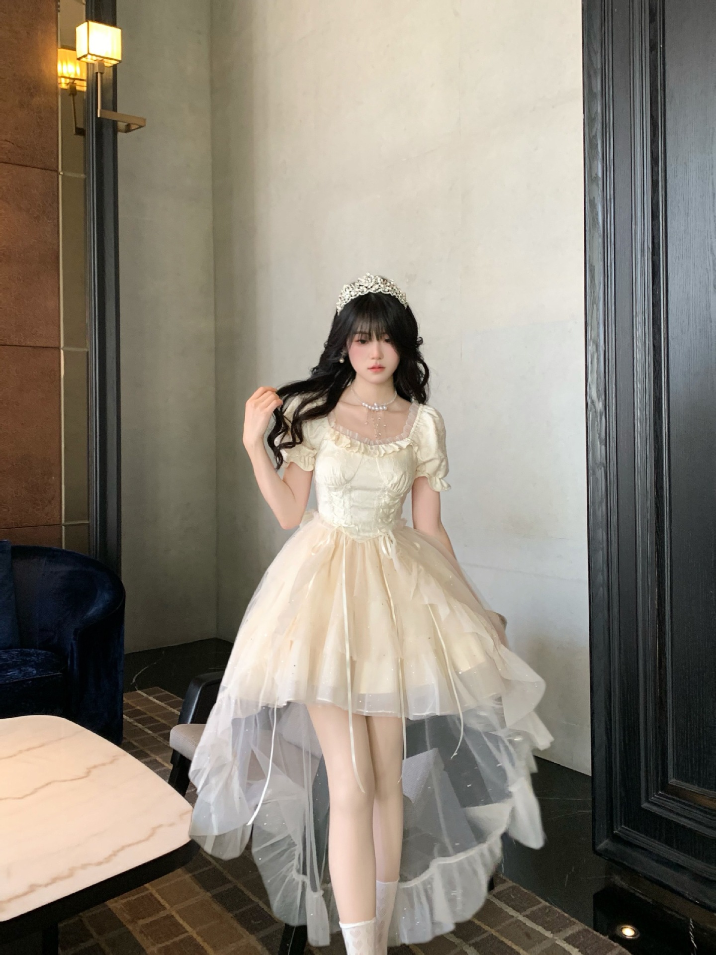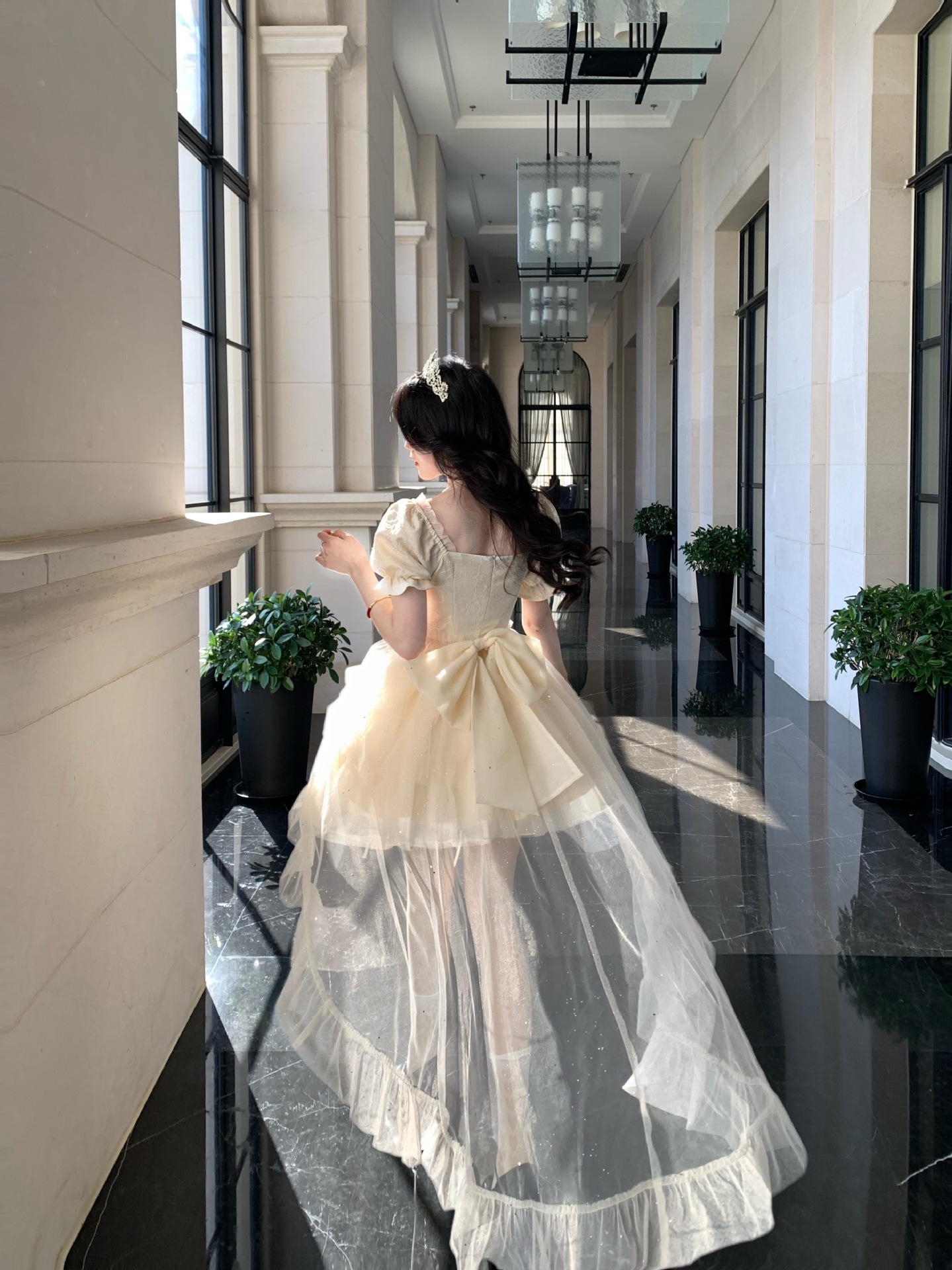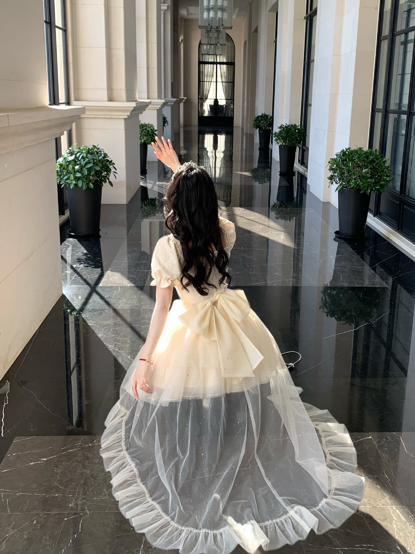블로벨란 반쪽 하트 대형 리본 공주 드레스 자카드 퍼프 스팽글 트레인 드레스 생일 드레스 트렌디스토어 가기