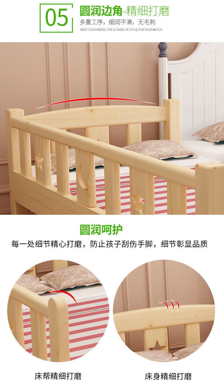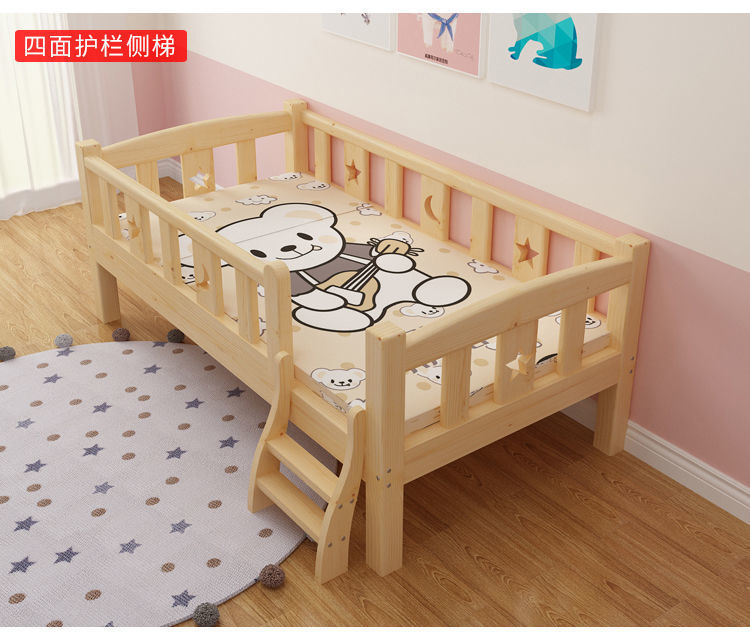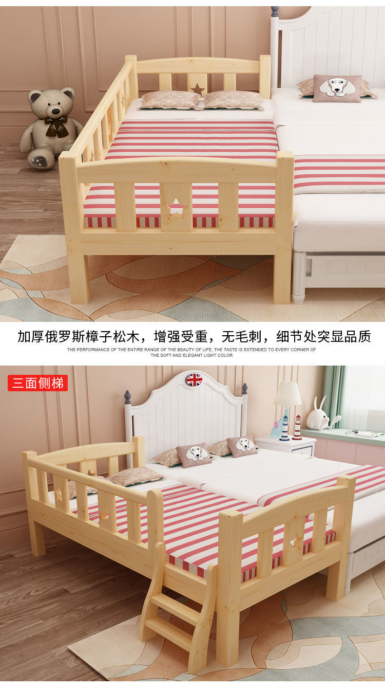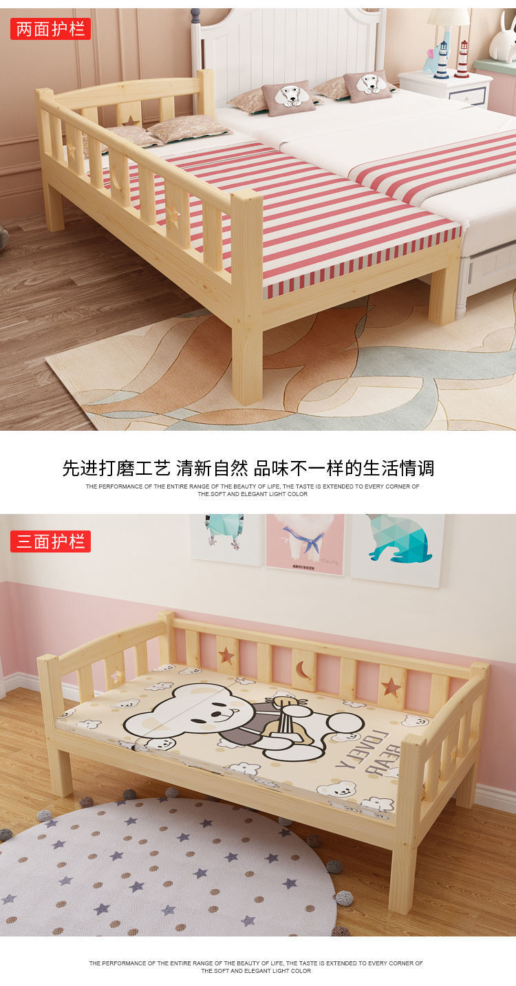 가로 가드 레일이있는 단단한 나무 아기 접합 침대 소년과 소녀를위한 싱글 침대 옆 침대 어린이 접합 대형 침대는 국경을 초월 할 수 있습니다스토어 가기