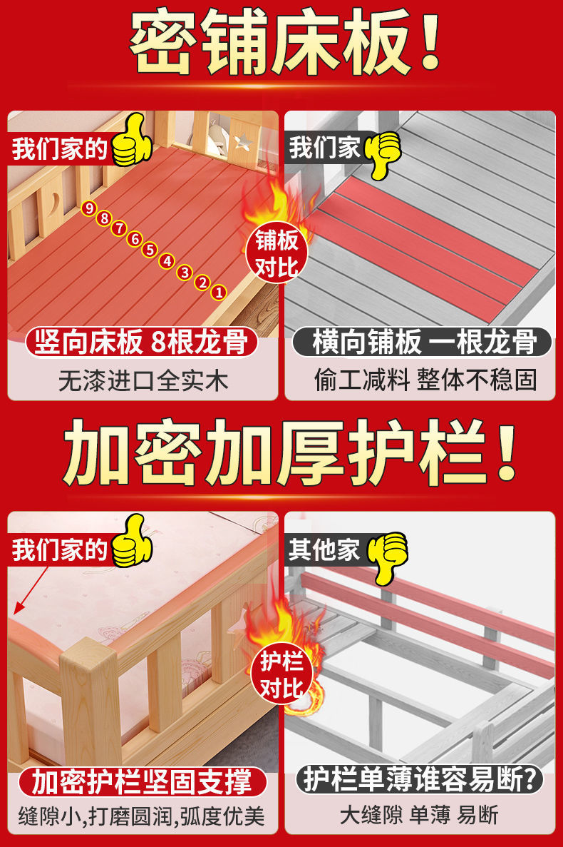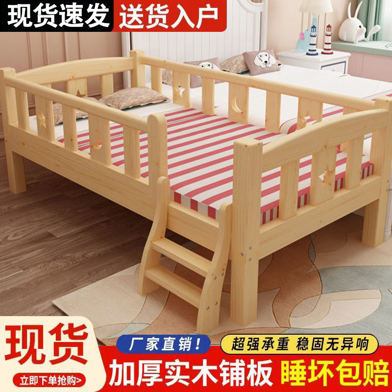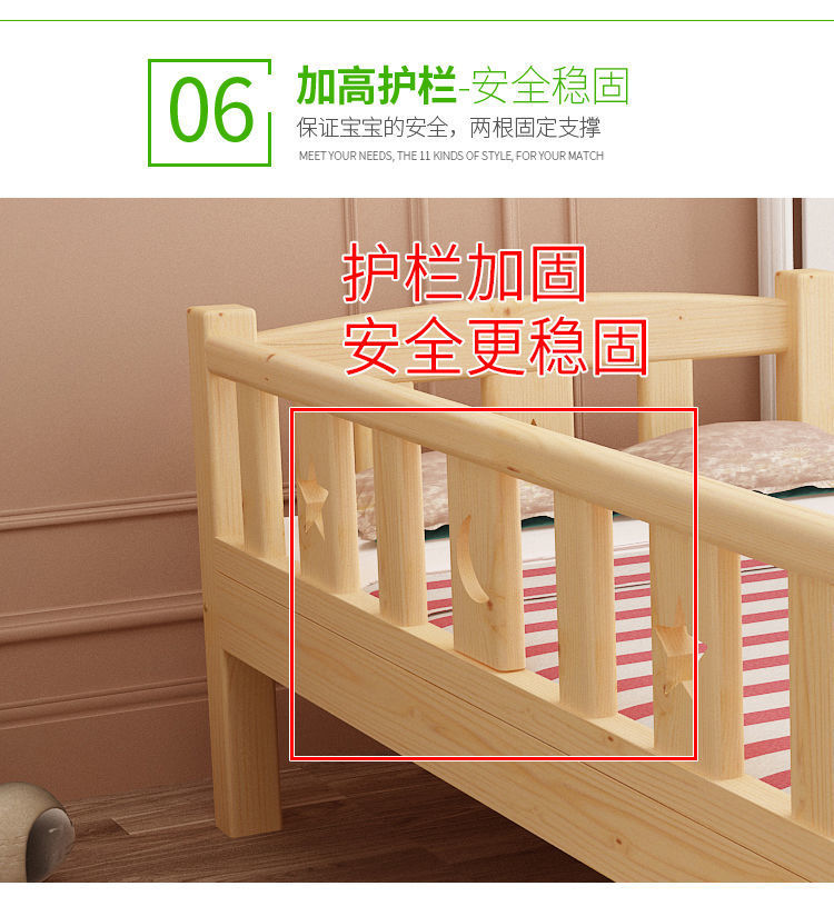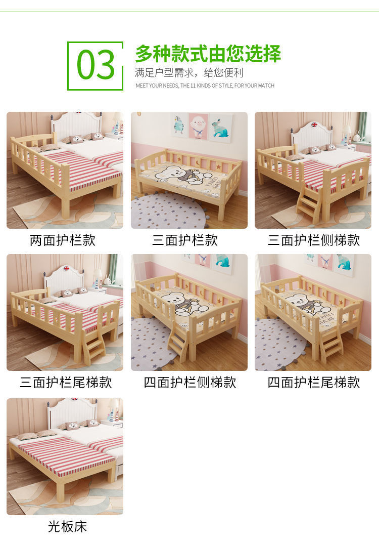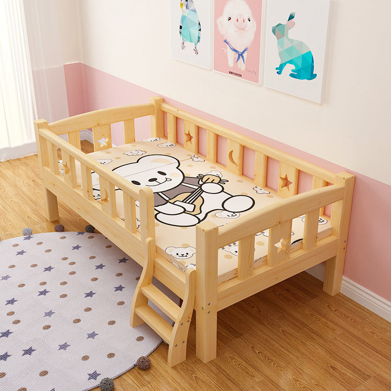 가로 가드 레일이있는 단단한 나무 아기 접합 침대 소년과 소녀를위한 싱글 침대 옆 침대 어린이 접합 대형 침대는 국경을 초월 할 수 있습니다스토어 가기