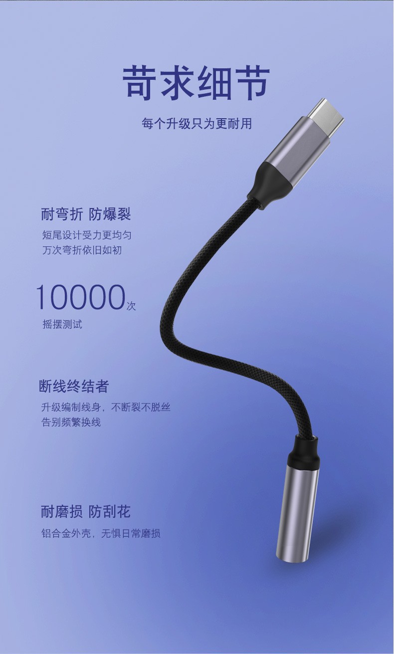 Apple에 적합한 맞춤형 유형-c ~ 3.5mm 헤드폰 오디오 케이블 어댑터 디지털 디코딩 휴대폰 어댑터 케이블스토어 가기