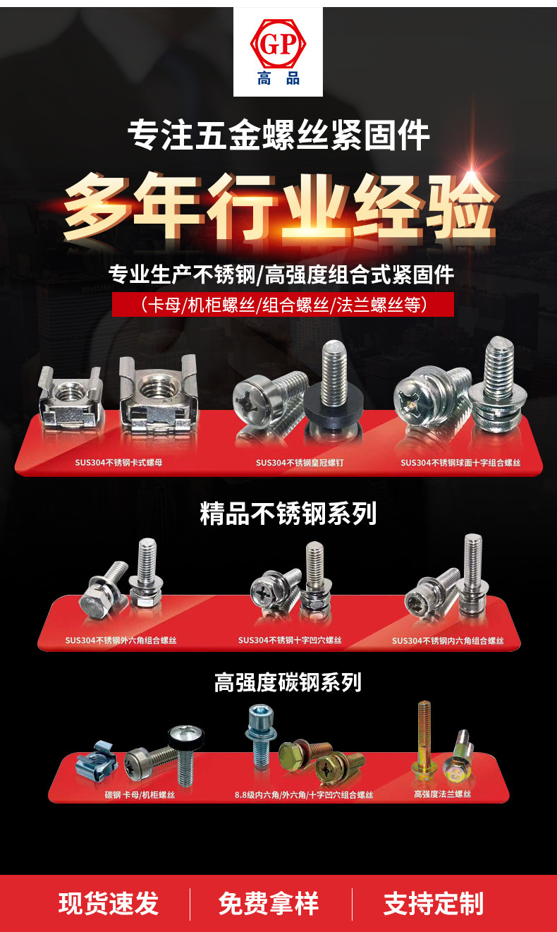 304 스테인리스 스틸 캐비닛 나사 부품, 접시형 나사, 카드형 너트, 검정색 플라스틱 링 세트 M616-M620스토어 가기