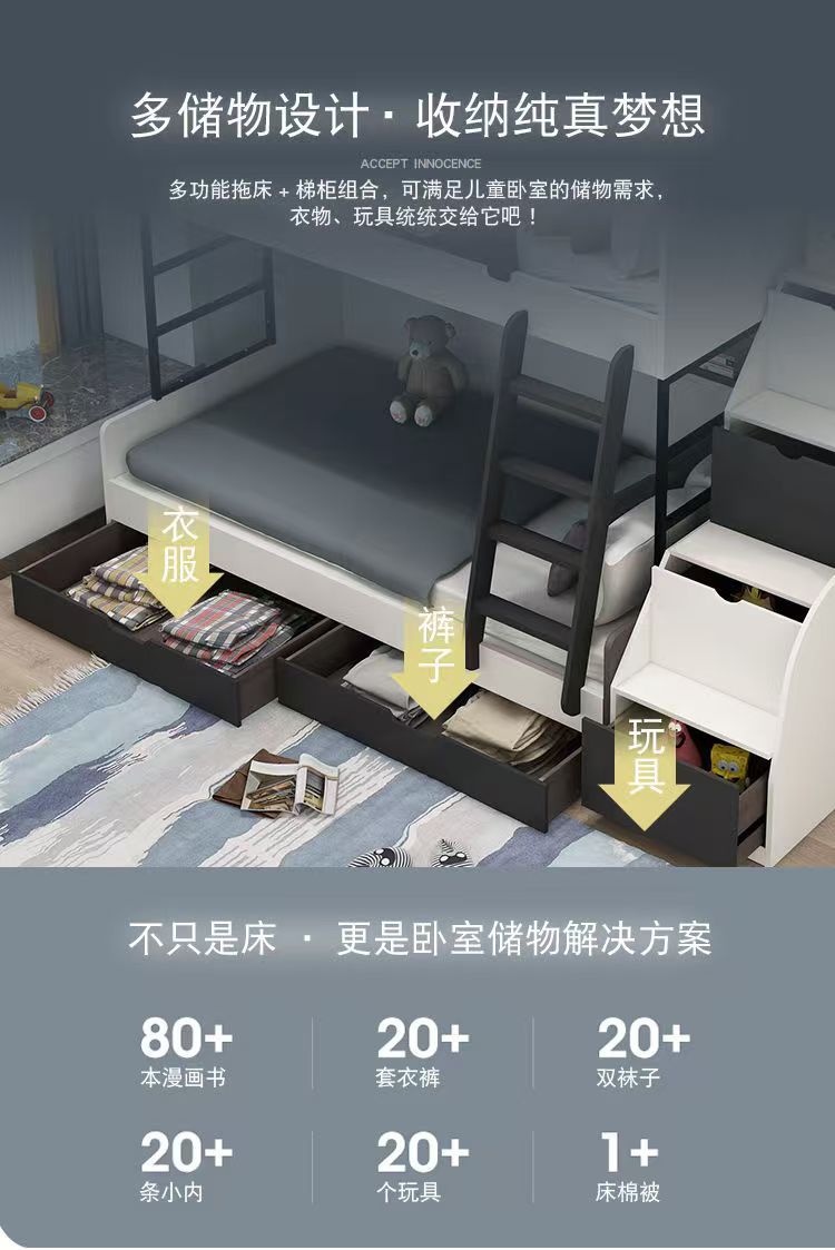 • 높고 낮은 침대 + 사다리 캐비닛 + 트레일러 침대 + 매트리스