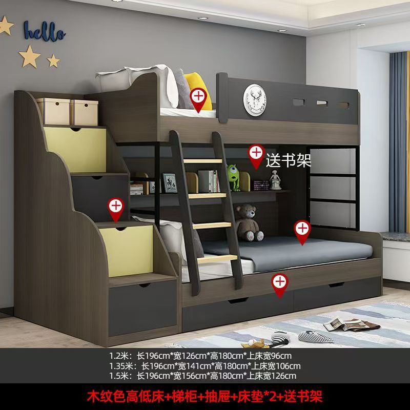 • 높고 낮은 침대 + 사다리 캐비닛 + 서랍 + 매트리스
