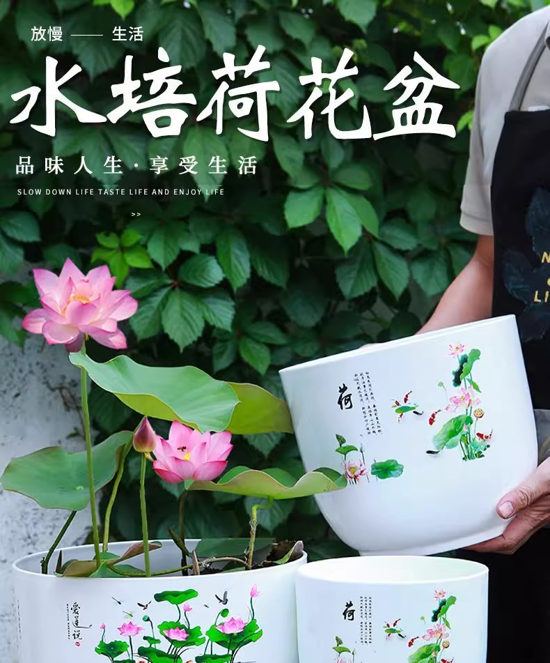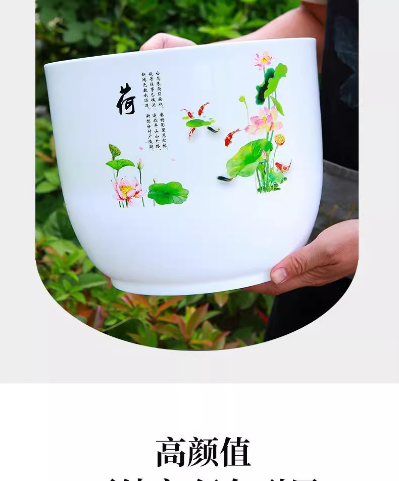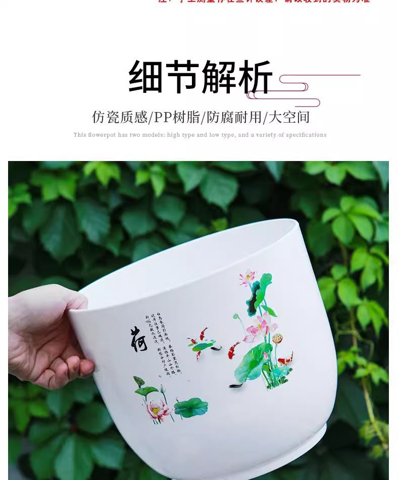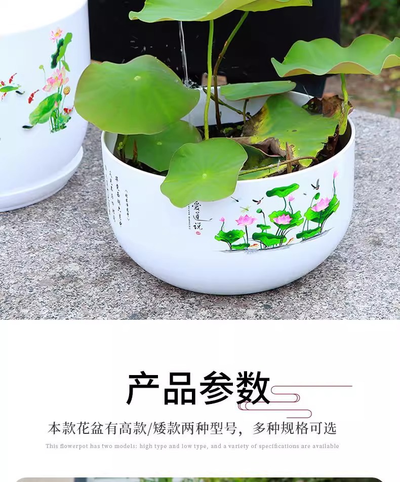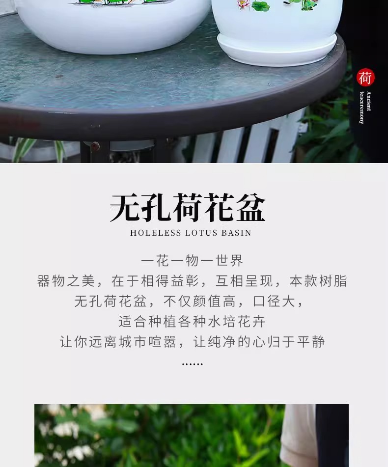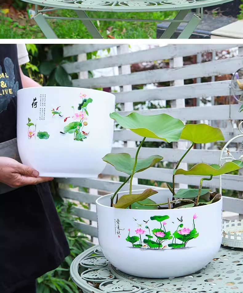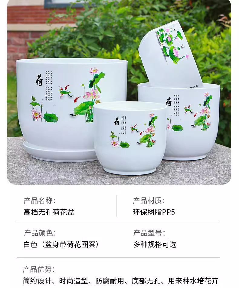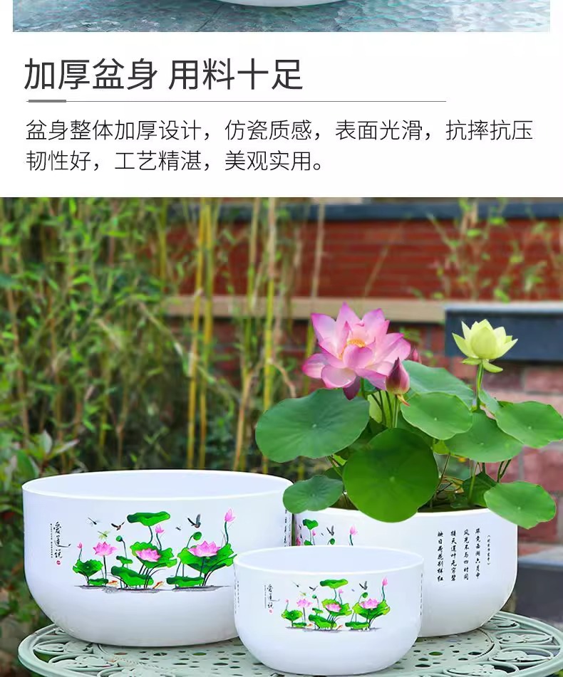화분, 연꽃, 수련 특수 화분, 모조 세라믹 수지 플라스틱 두꺼운 대구경 비다공성 수경 수련 화분스토어 가기