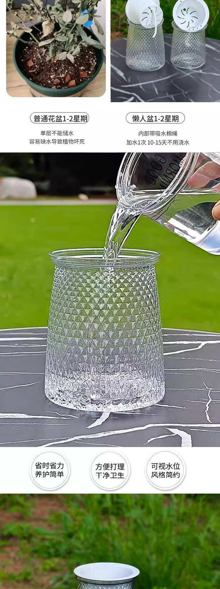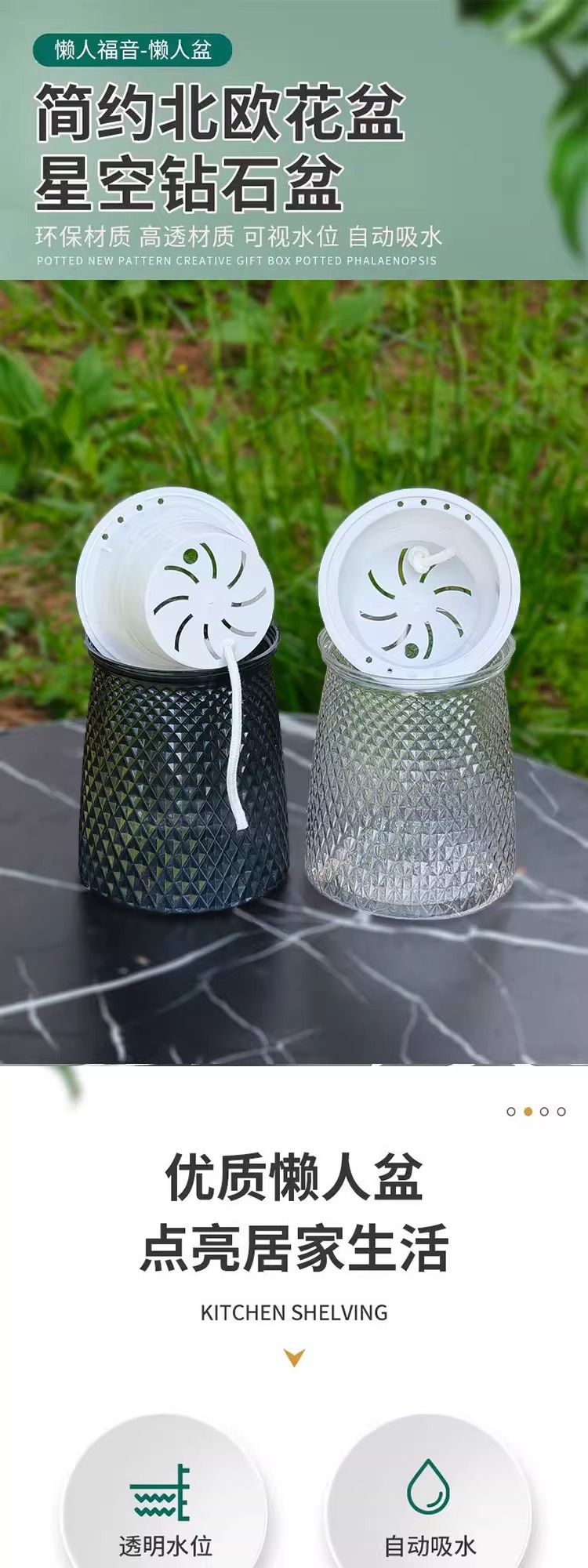 게으른 화분 수지 자동 흡수성 별 화분 도매 가정용 플라스틱 수경 닙시아 다육 식물 대형 녹색 바구니 화분