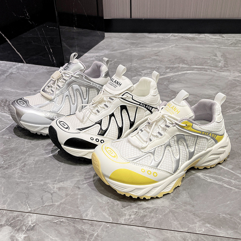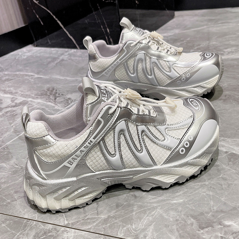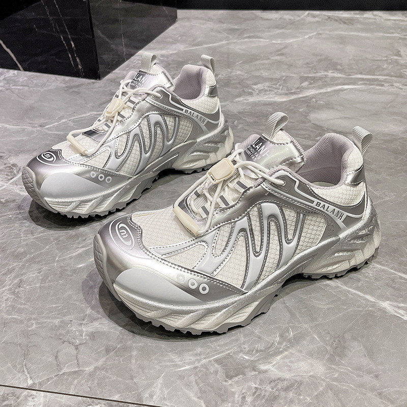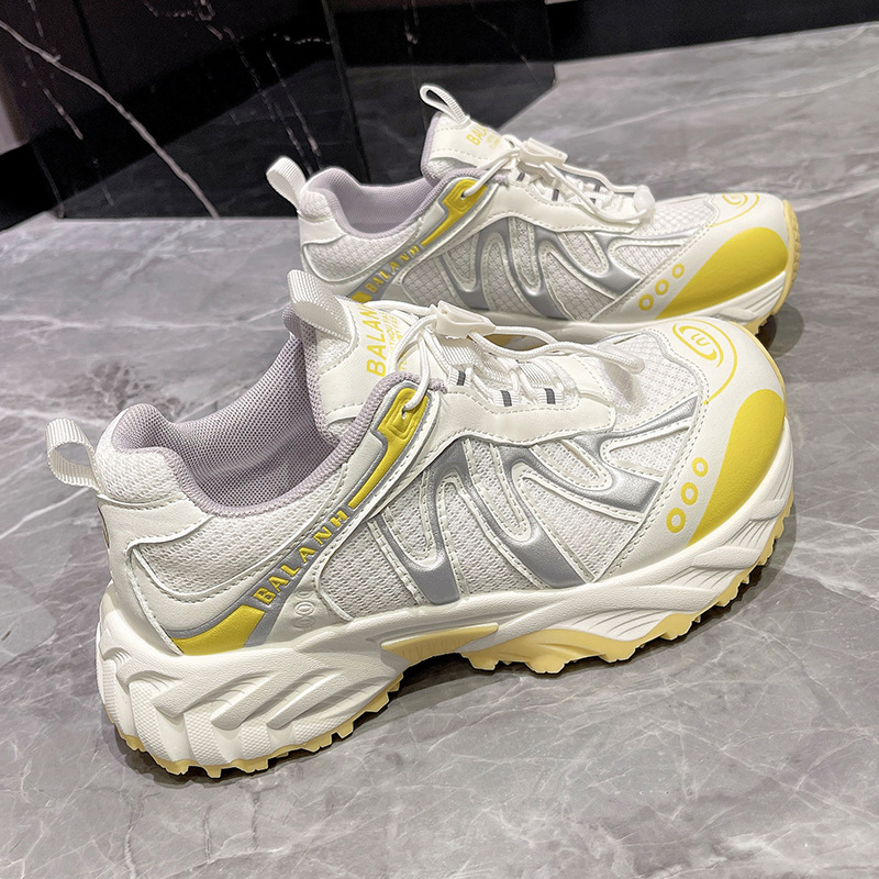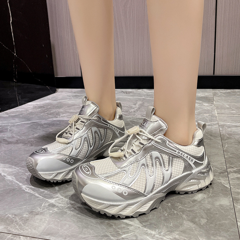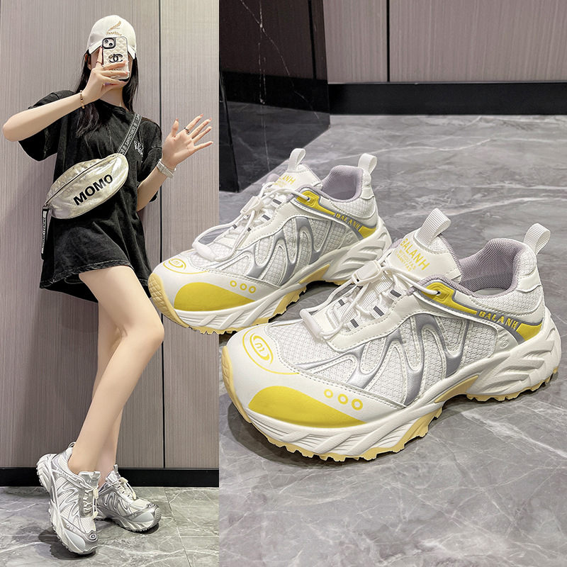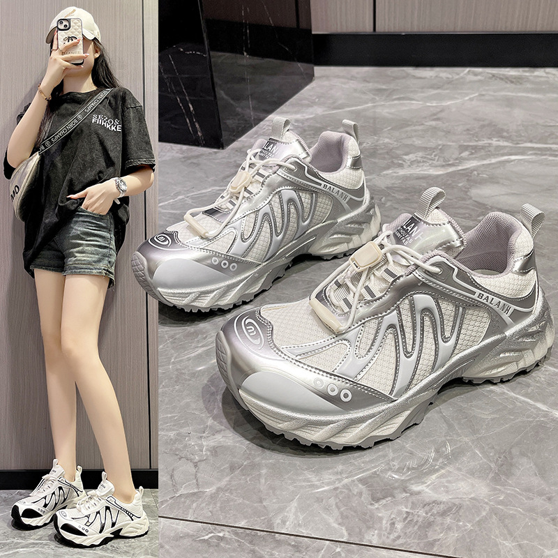 여성을위한 유럽 아빠 신발 2025 여름 통기성 얇은 메쉬 다목적 경량 야외 하이킹 대비 색상 캐주얼 스포츠 신발 유행