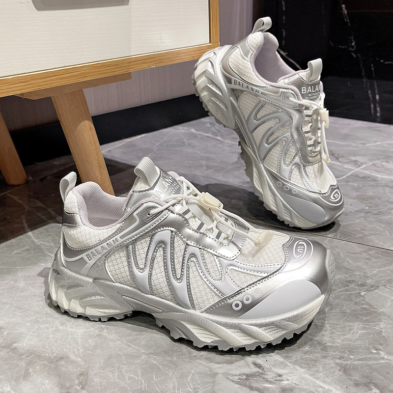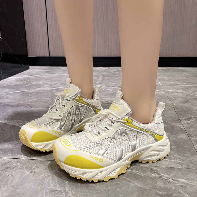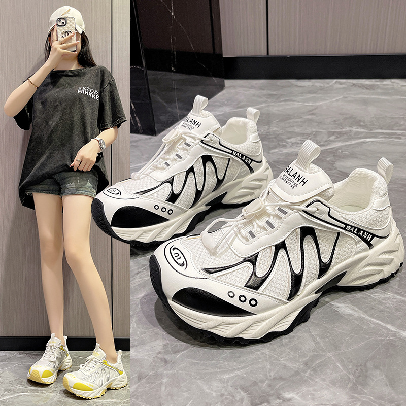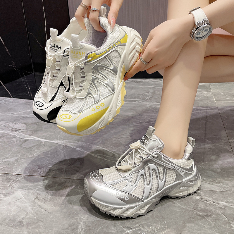 여성을위한 유럽 아빠 신발 2025 여름 통기성 얇은 메쉬 다목적 경량 야외 하이킹 대비 색상 캐주얼 스포츠 신발 유행스토어 가기