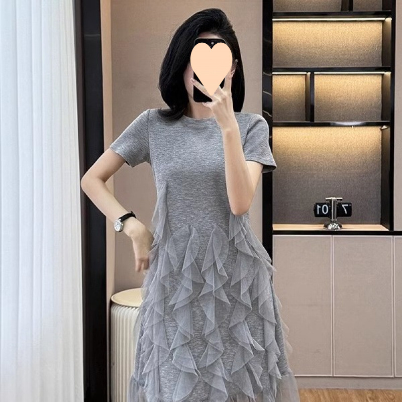 여성용 캐주얼 스타일 드레스 그레이 여름 새로운 솔리드 컬러 게으른 스타일 스플 라이스 기질 롱 스커트 슬리밍 스커트스토어 가기