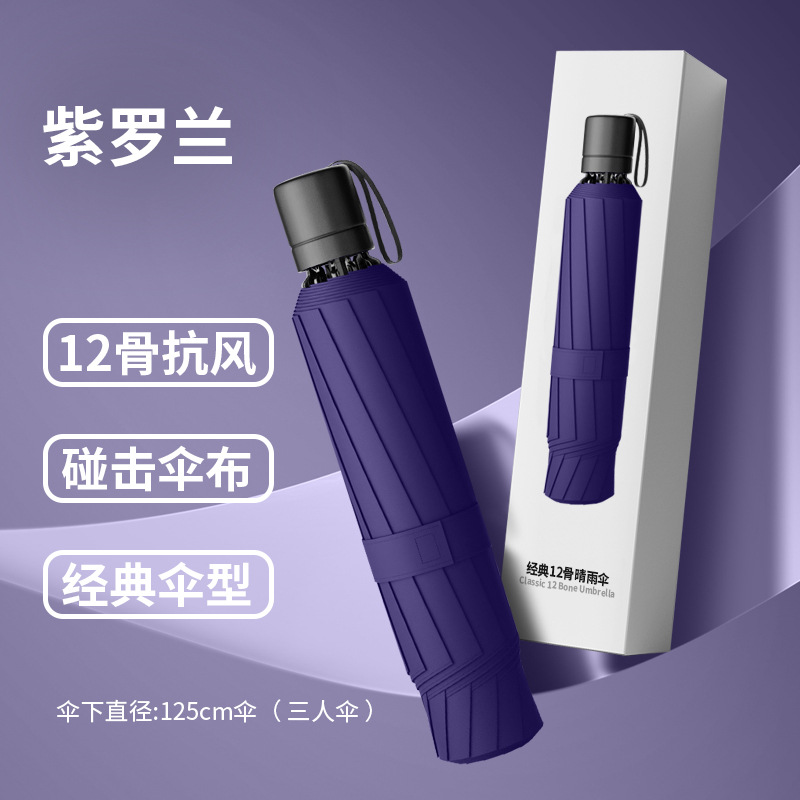 • 크리스탈 퍼플 블랙 글루 3인 우산 [12개 뼈 보강] 직경 125박스