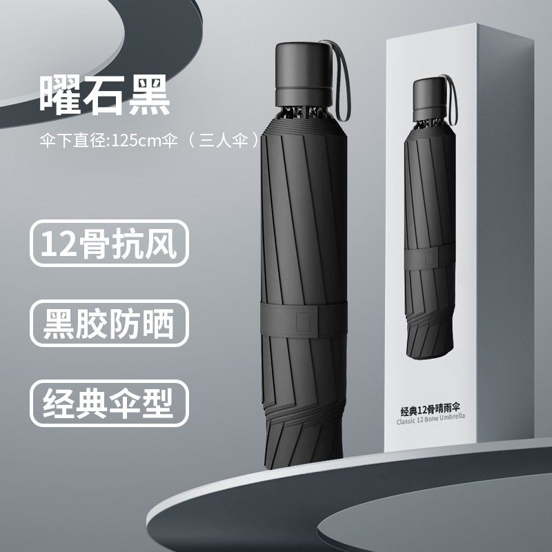• 검정색 3인용 우산 [12개 뼈대 강화] 지름 125cm (박스 포장)