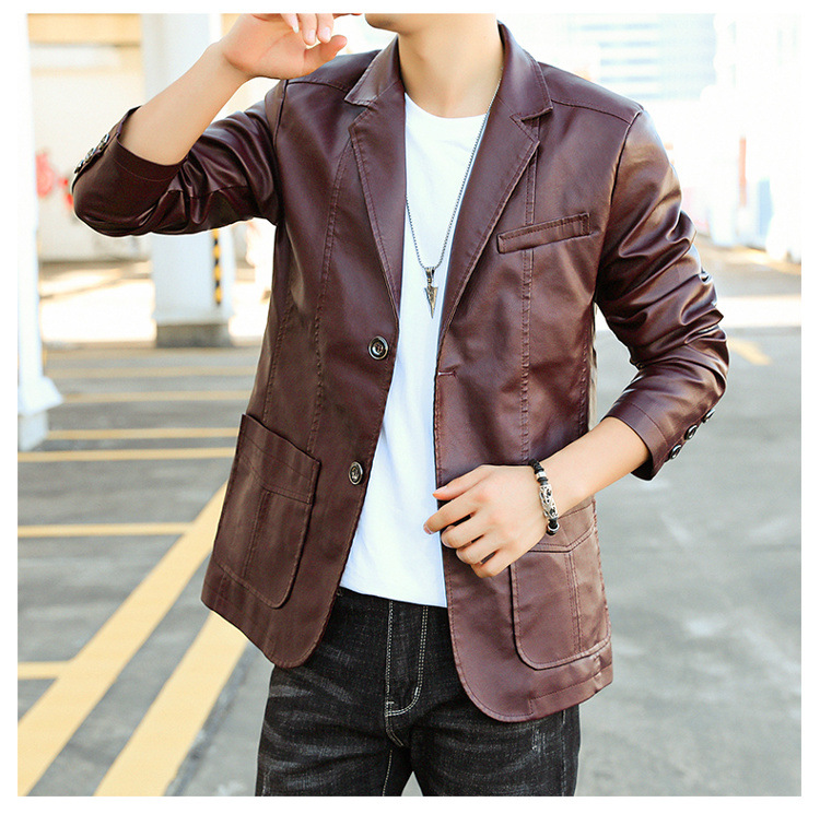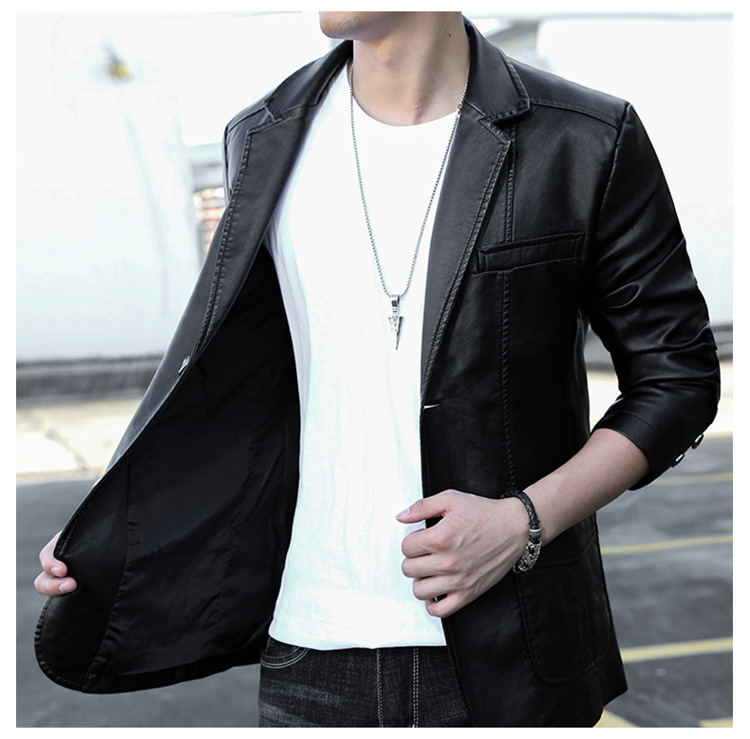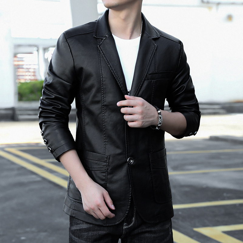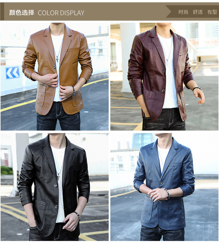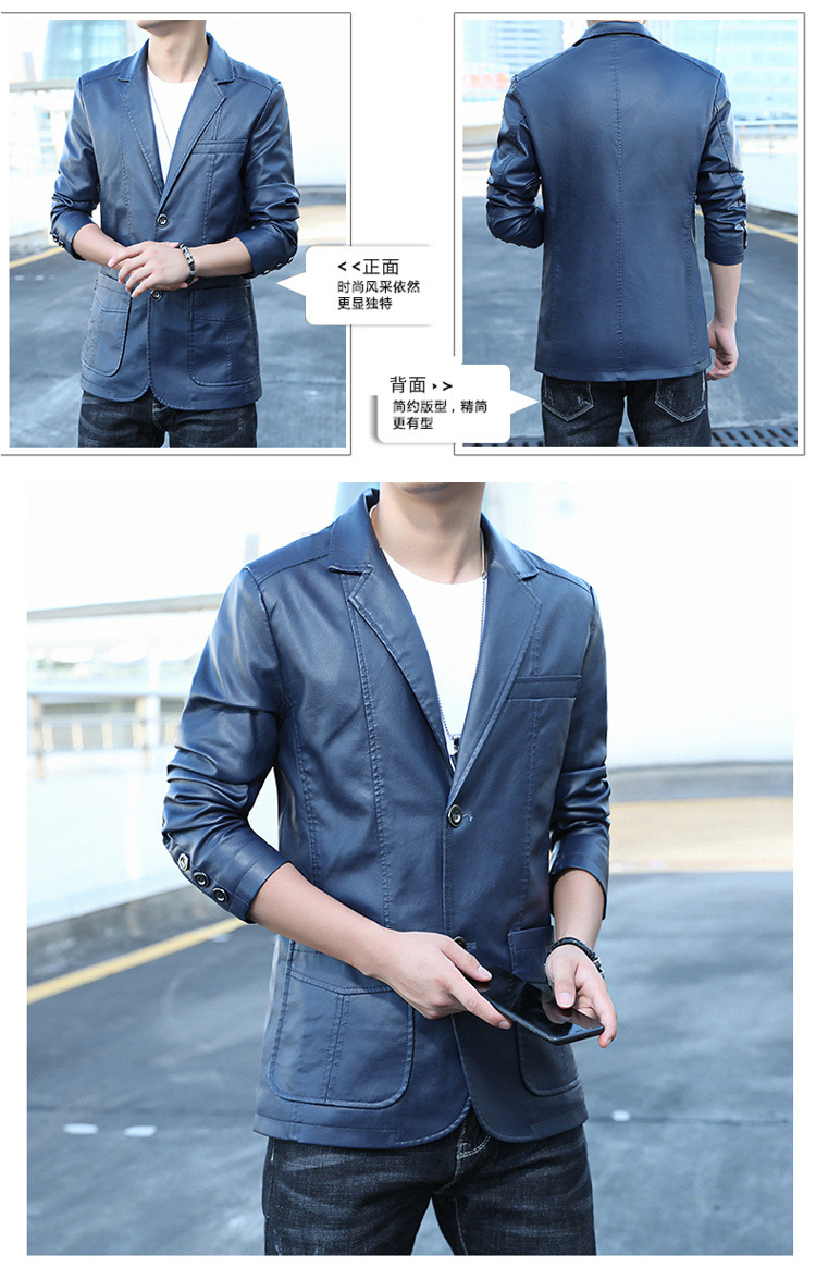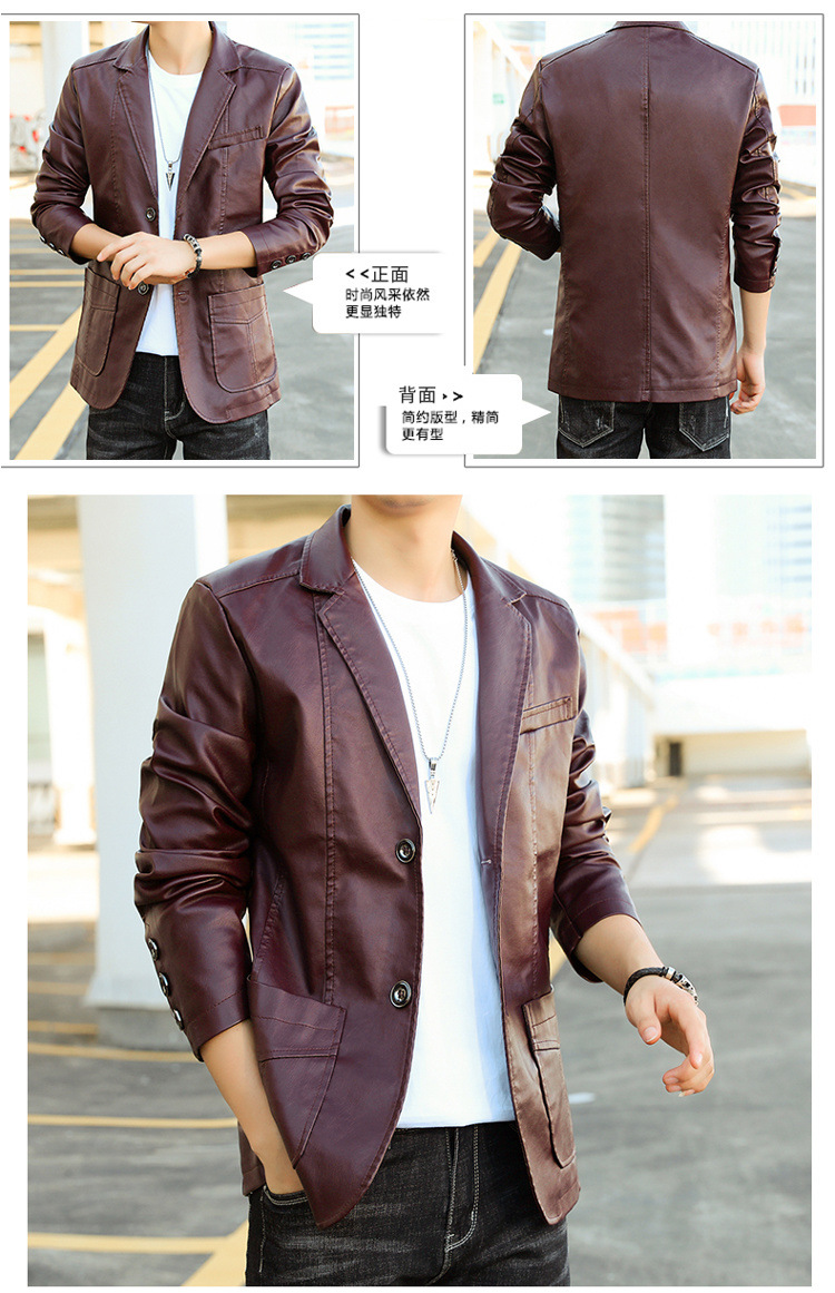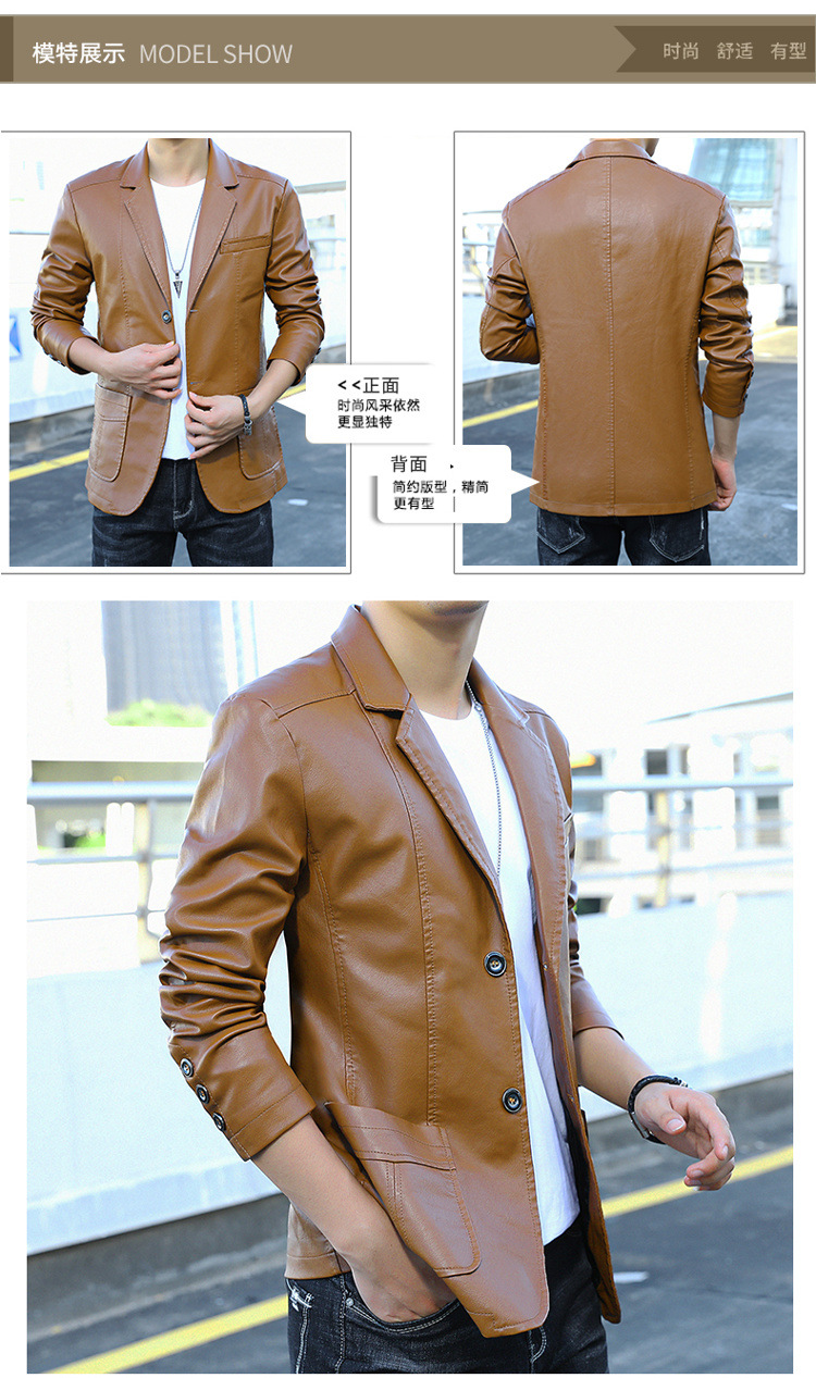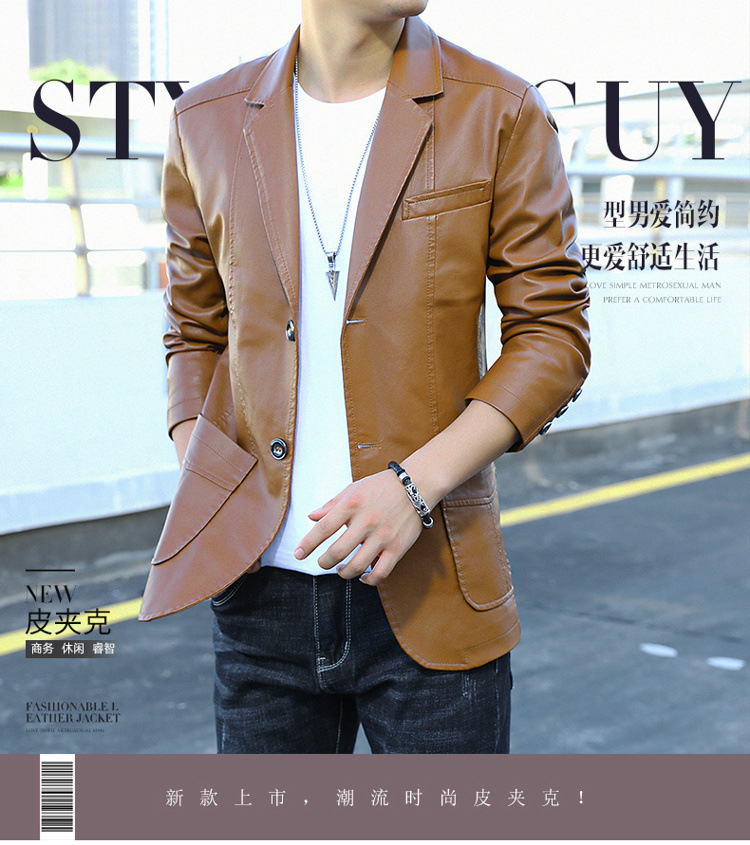 봄과 가을 902 정장 칼라 PU 가죽 자켓 남성 슬림 한국 스타일 잘 생긴 남성 가죽 자켓 오토바이 자켓 가죽 자켓스토어 가기