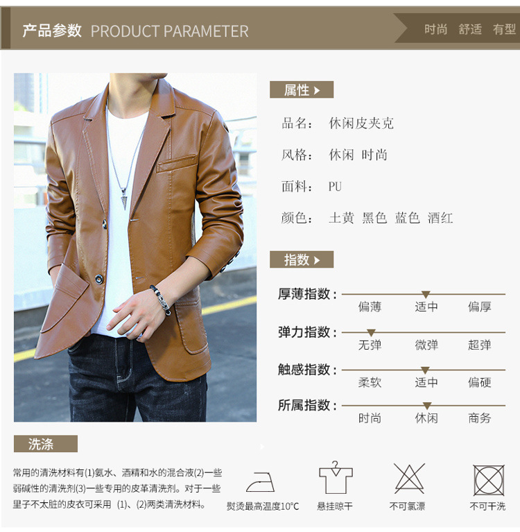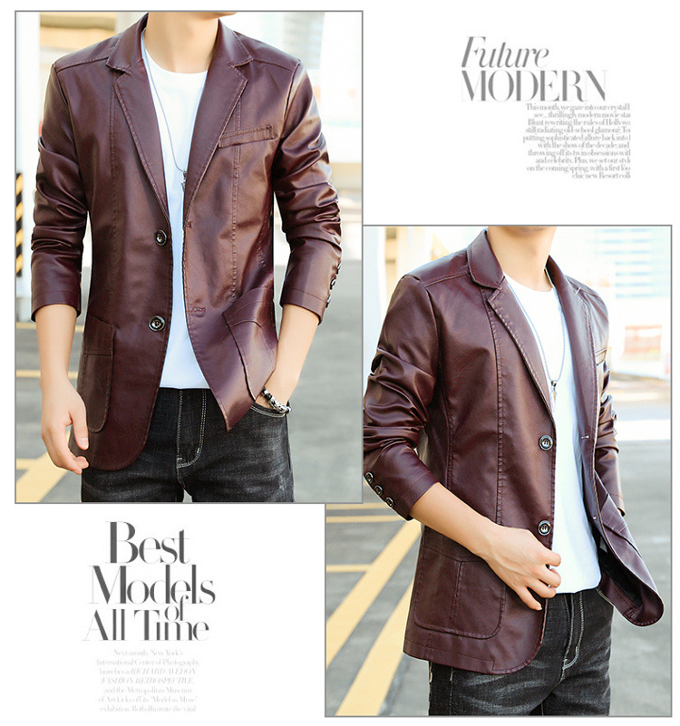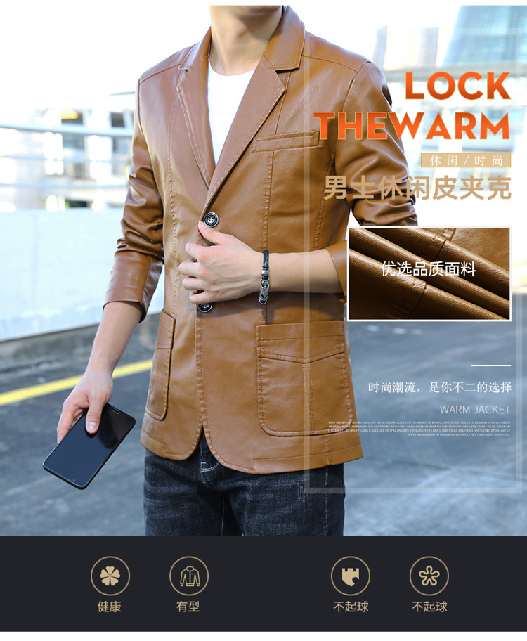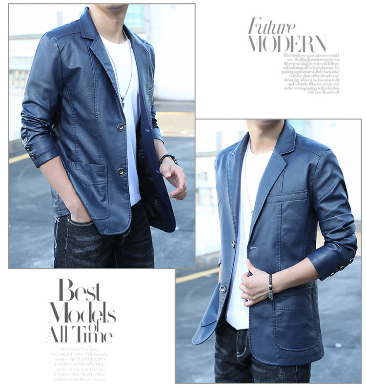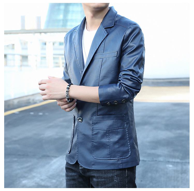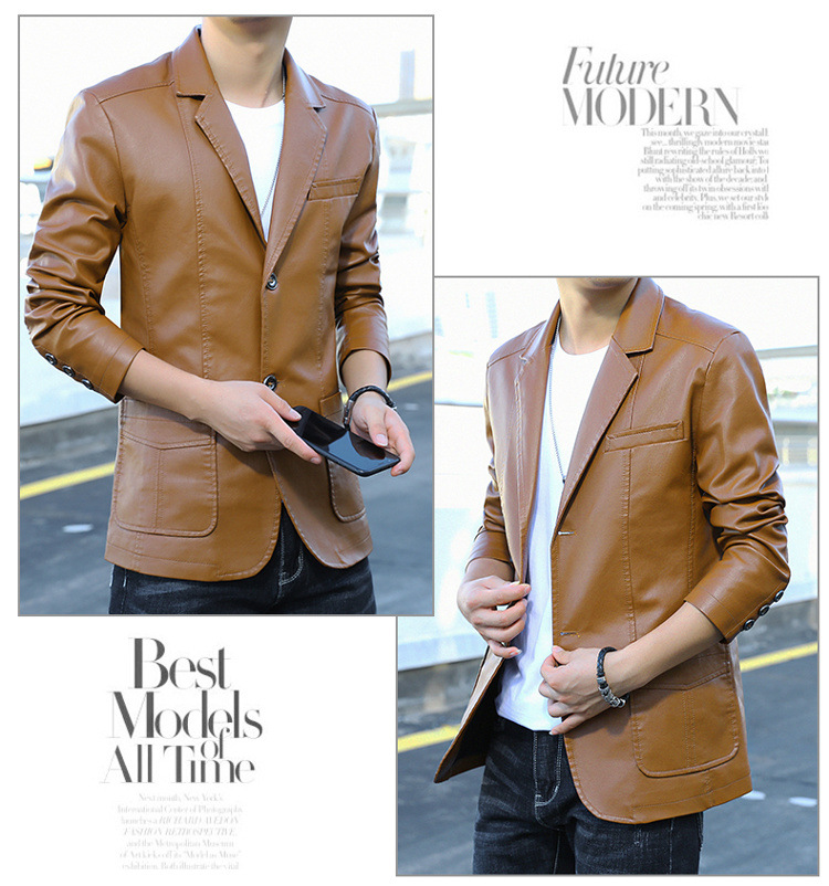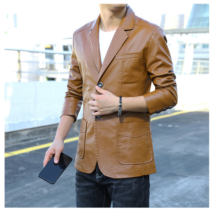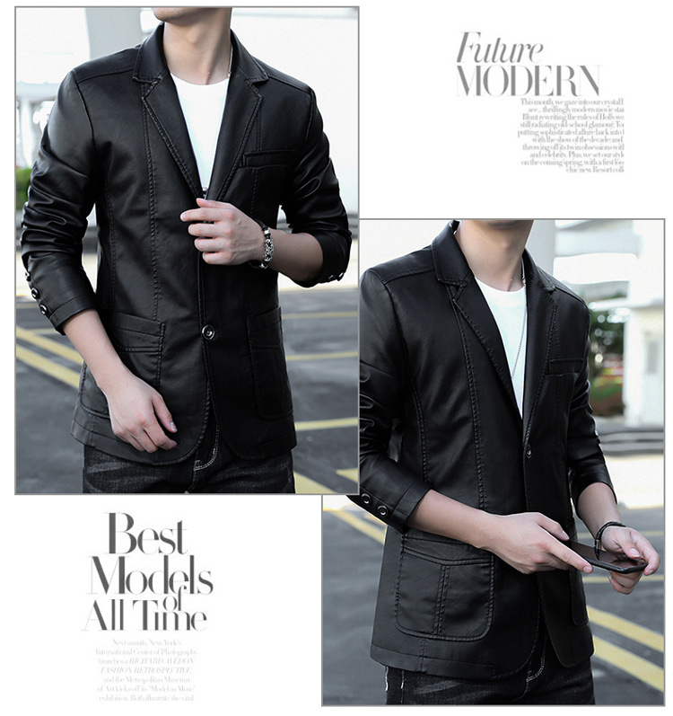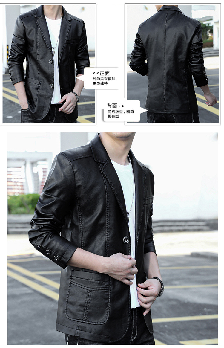 봄과 가을 902 정장 칼라 PU 가죽 자켓 남성 슬림 한국 스타일 잘 생긴 남성 가죽 자켓 오토바이 자켓 가죽 자켓스토어 가기